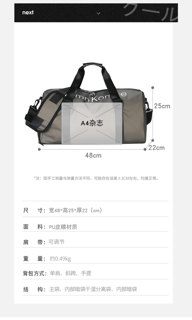 批发干湿分离旅行包大容量单肩斜跨包休闲运动健身包旅行袋印字lo