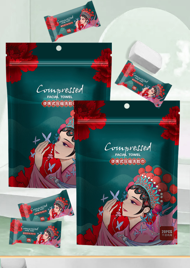 国潮风压缩毛巾加厚加大纯棉一次性洗脸巾旅行糖果便携式压缩浴巾