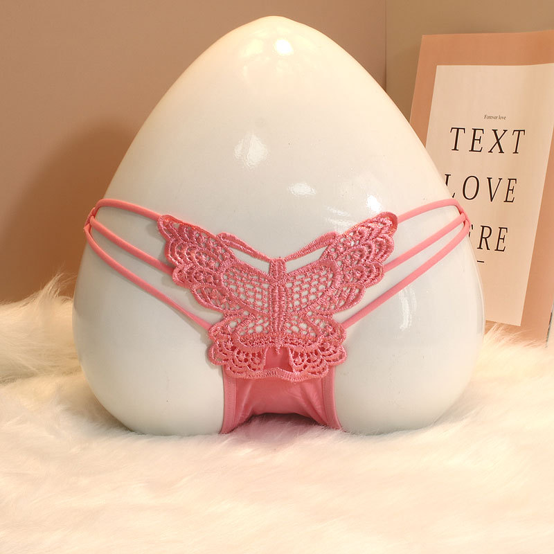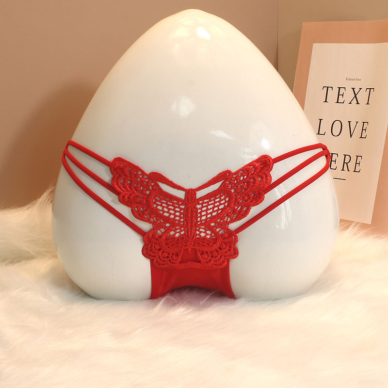 外贸红色本命年镂空大蝴蝶刺绣纯色火辣细带薄蕾丝柔软低腰三角裤