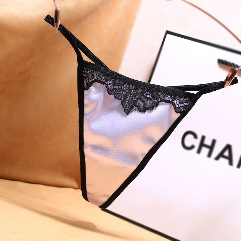 外贸大码缎面奢华女士丁字裤性感透气纯棉裆胖妹妹一根线t裤白色
