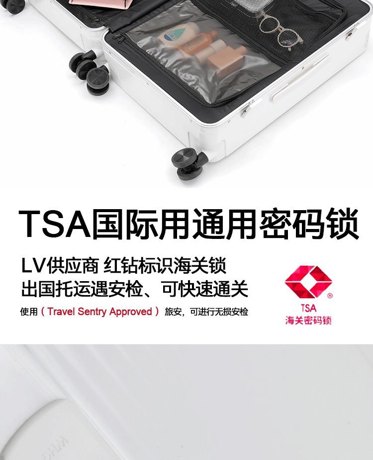 OKD高颜值行李箱铝框宽拉杆20寸登机箱万向轮TSA箱男女旅行箱登机