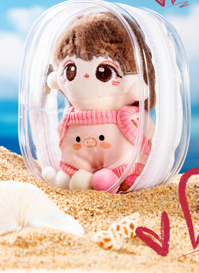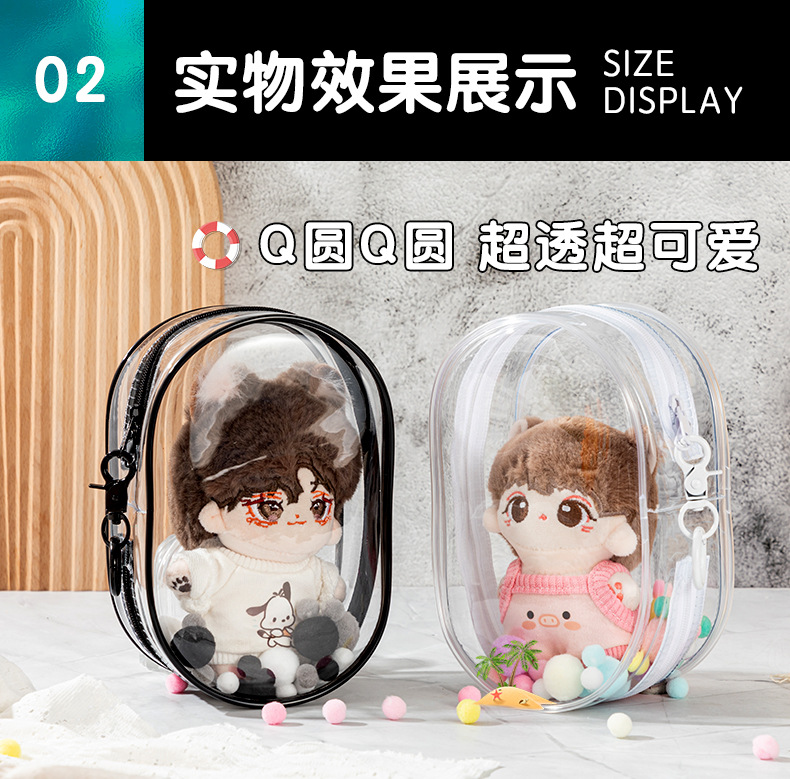 15cm棉花娃娃痛包高透明可爱Q圆拉布娃娃外出包labubu搪胶遛娃包