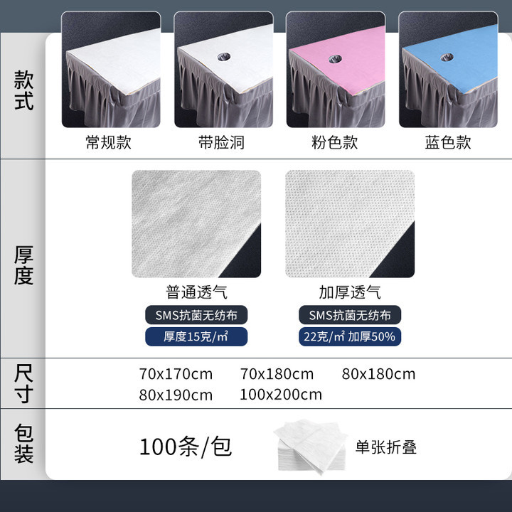 一次性床单美容院100张透气蓝色白色趴脸孔按摩床垫隔脏床套旅游