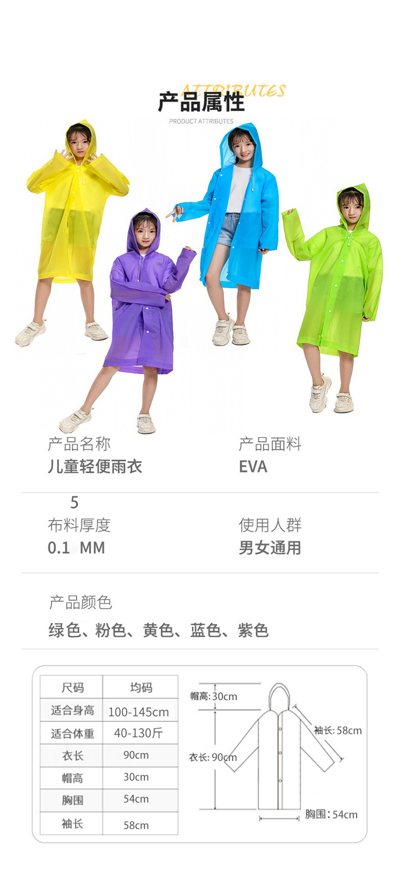 EVA非一次性雨衣加大加厚儿童雨衣加长款连体雨披多功能雨衣批发