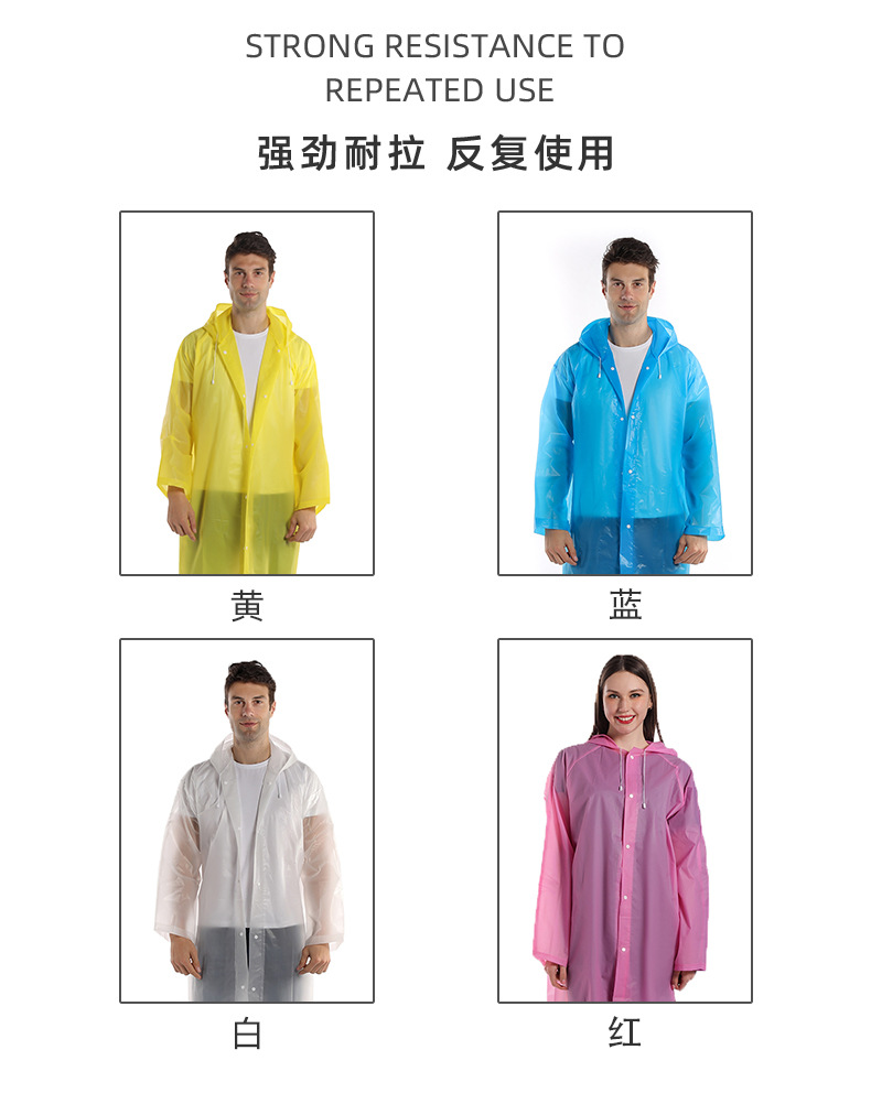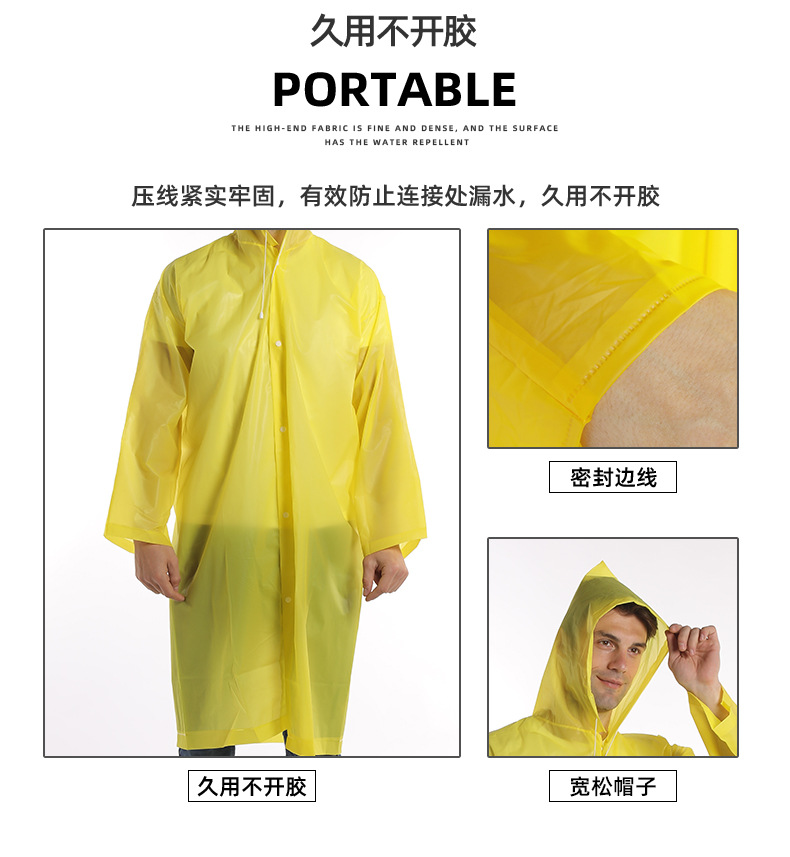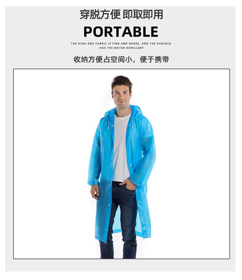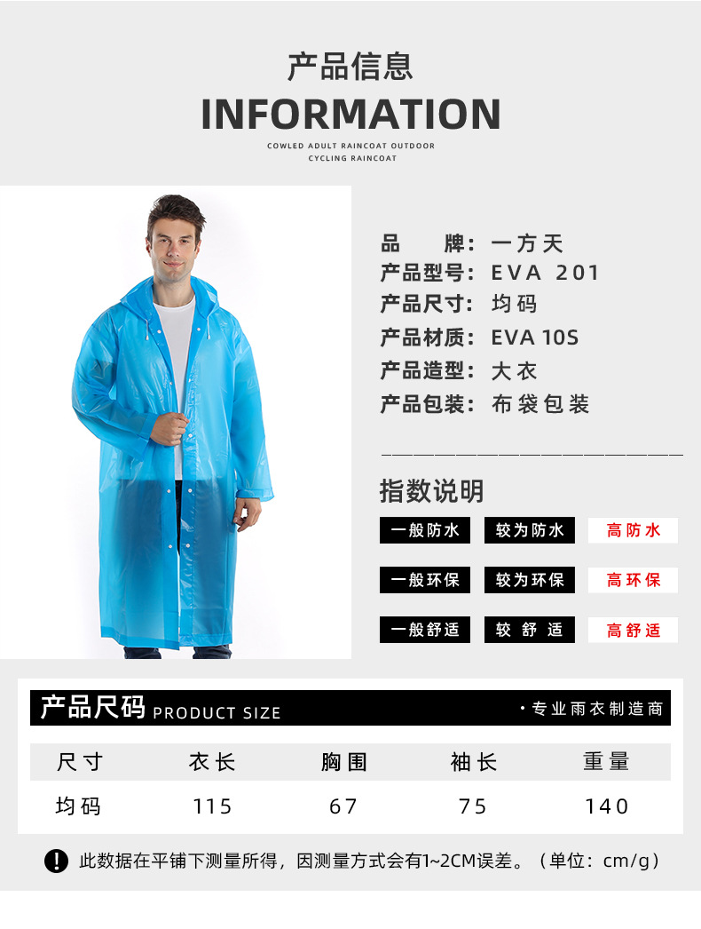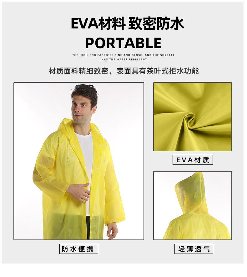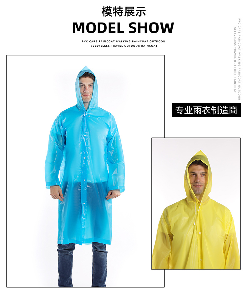 跨境款EVA非一次性雨衣半透明情侣款连体风衣旅游必备成人雨披