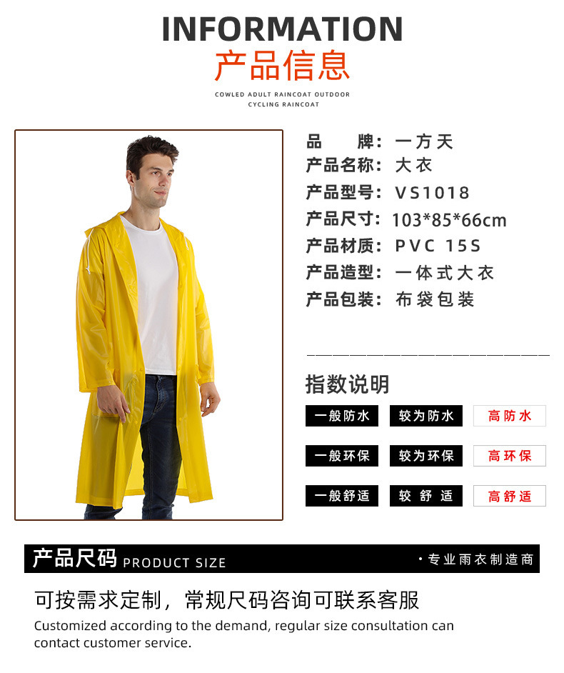 跨境PVC涂层情侣款透明雨衣户外防水连体雨衣男女款雨披雨衣批发