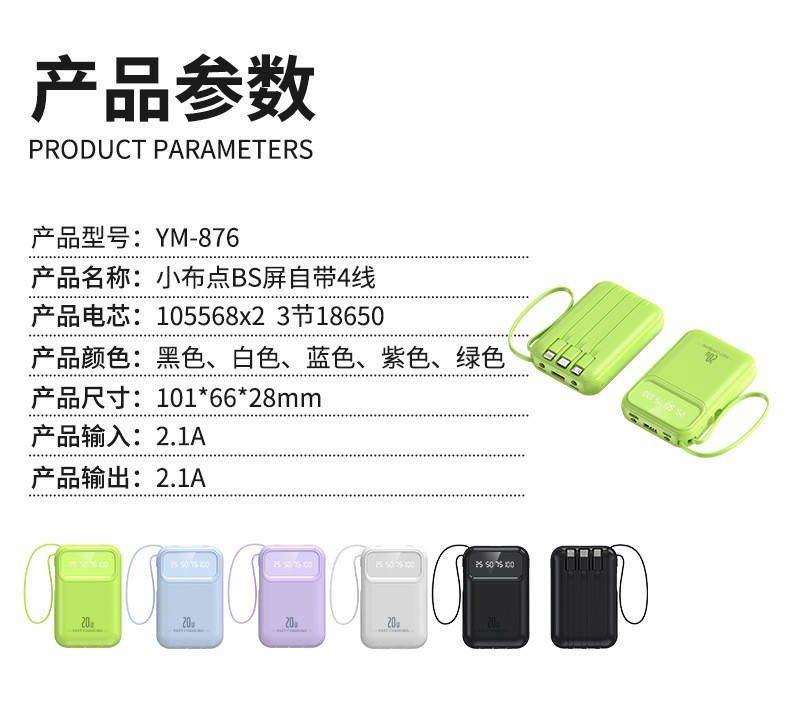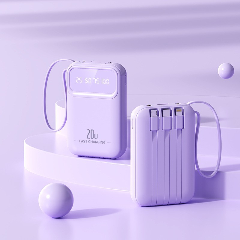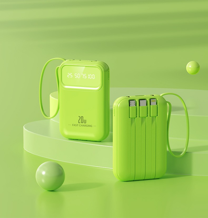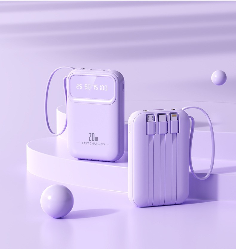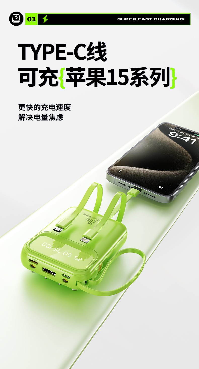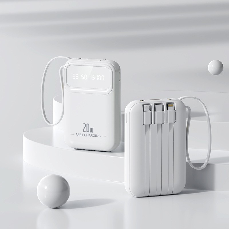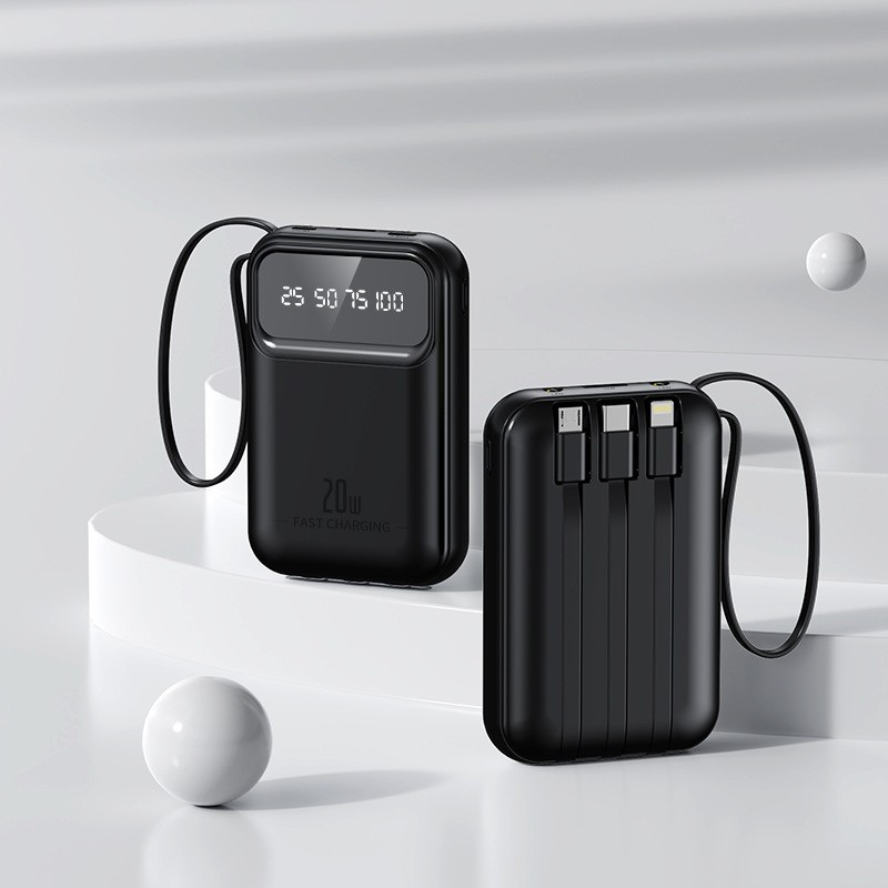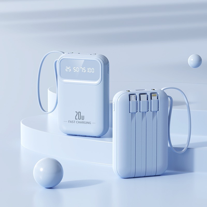 定制新品20000毫安大容量充电宝小巧便携自带线移动电源 LOGO礼品
