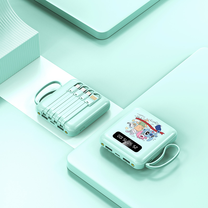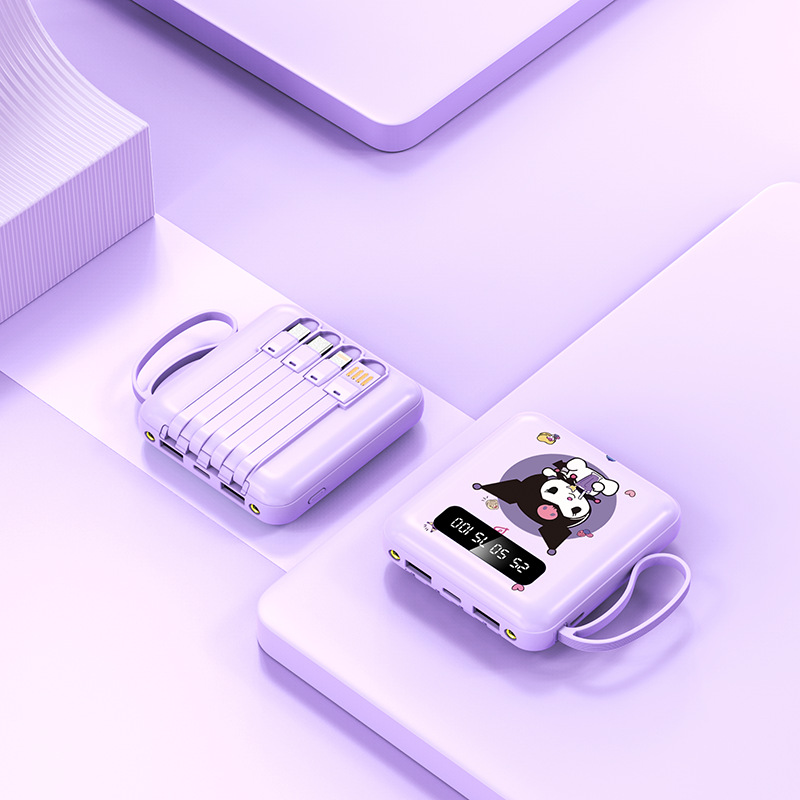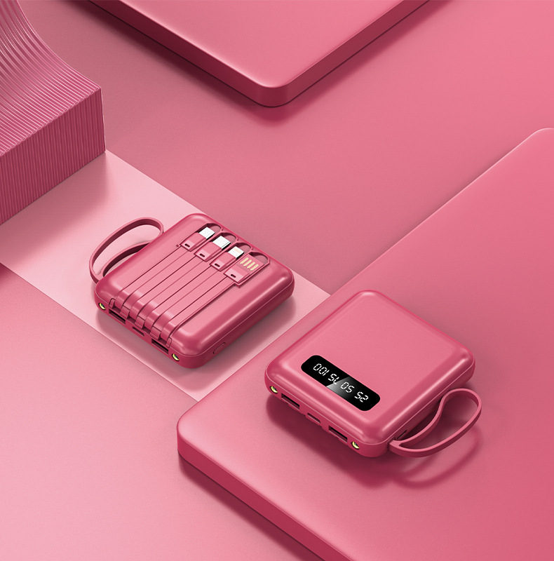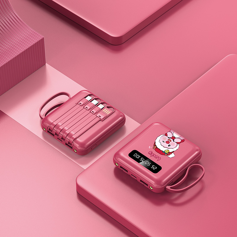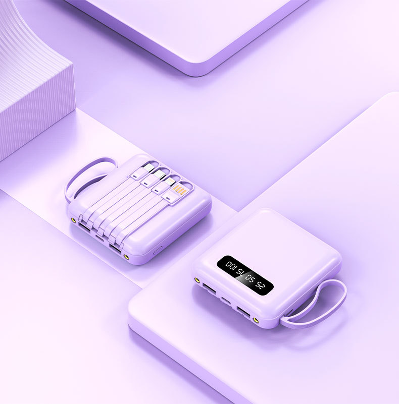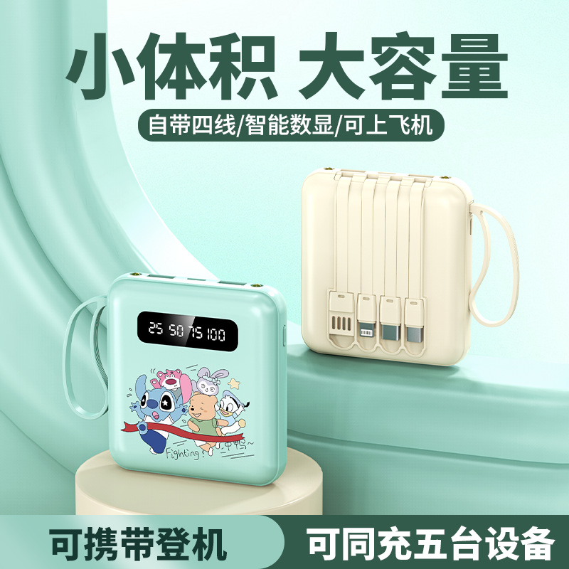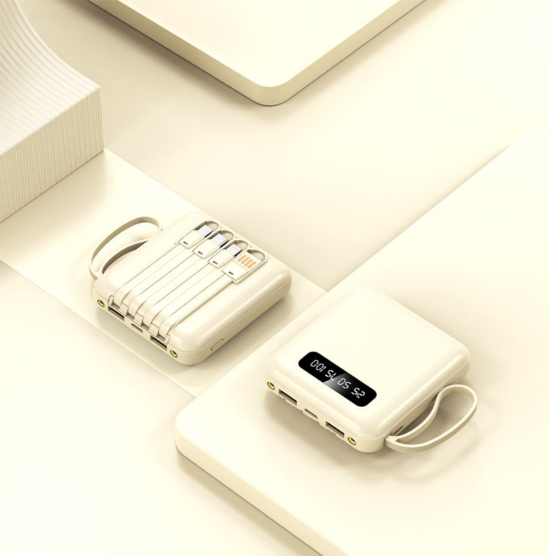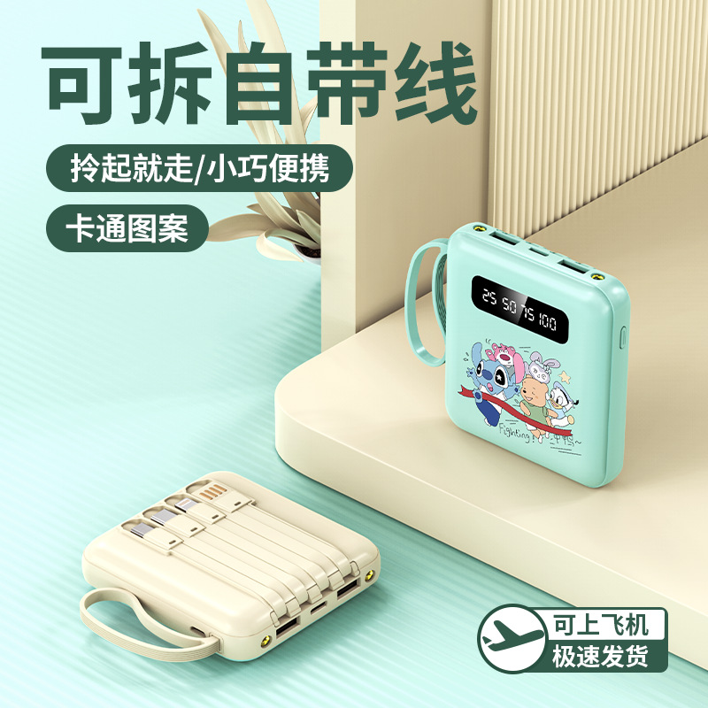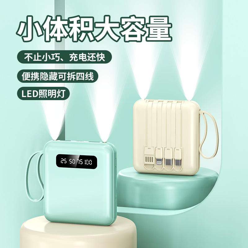 新款便携自带线充电宝 20000mAh数显镜面移动电源带挂绳LOGO印制