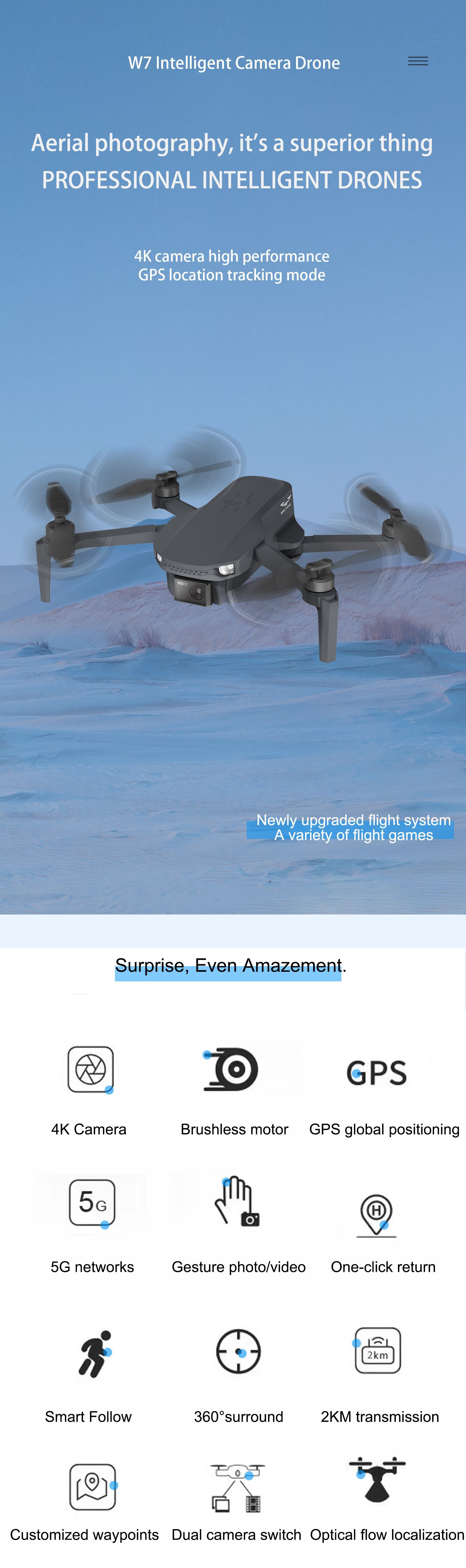 W7 5g图传高清HD gps无人机跨境 亚马逊 速卖通爆款