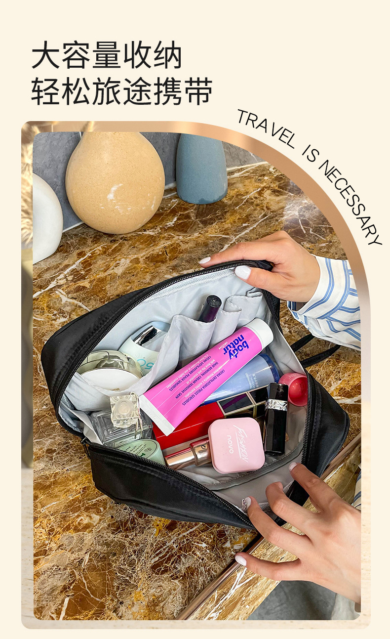 新款大容里纯色化妆包 旅行防水洗漱包 纯色便携式化妆品收纳包