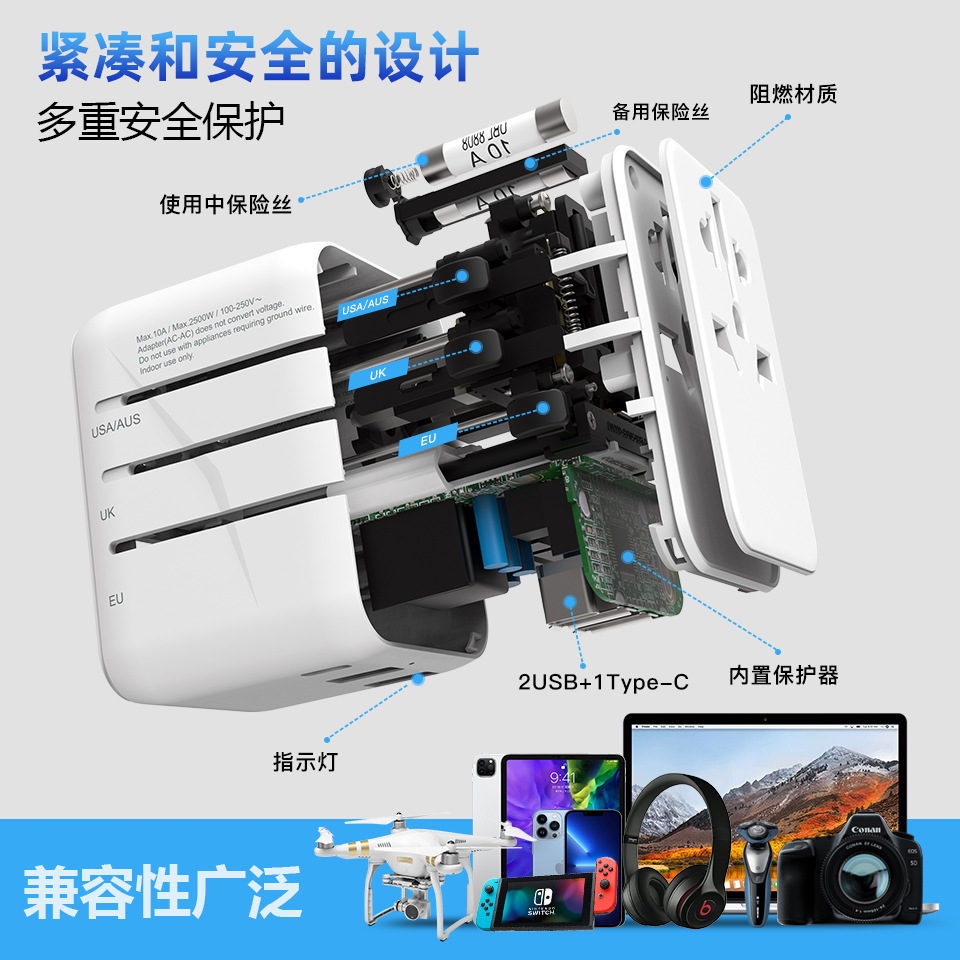 全球通用旅行转换插头美规英规欧规迷你插头转换器多功能转换插座