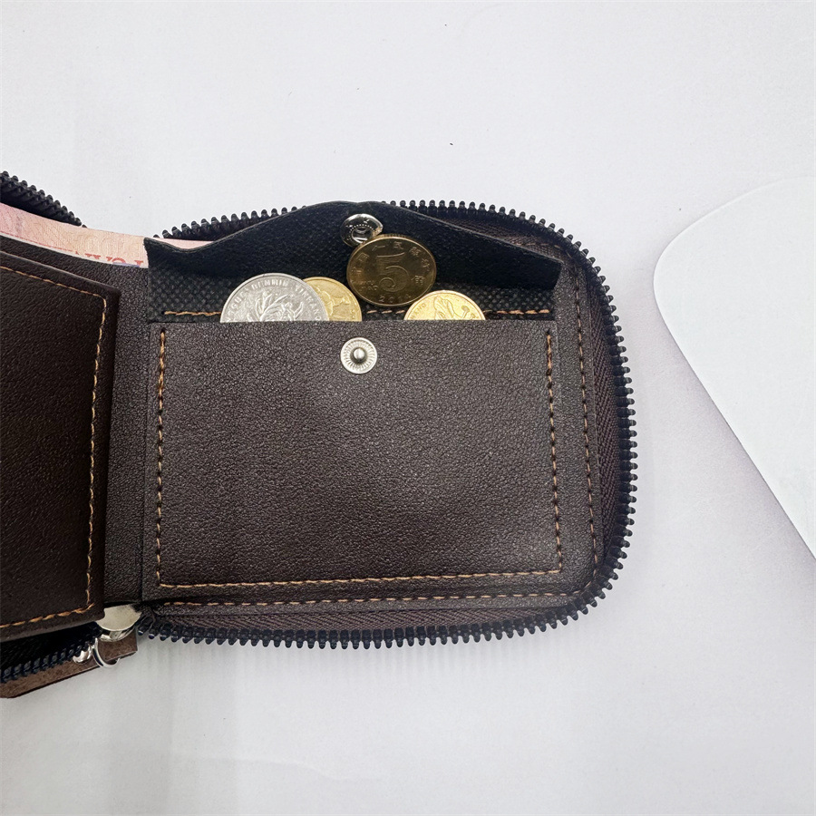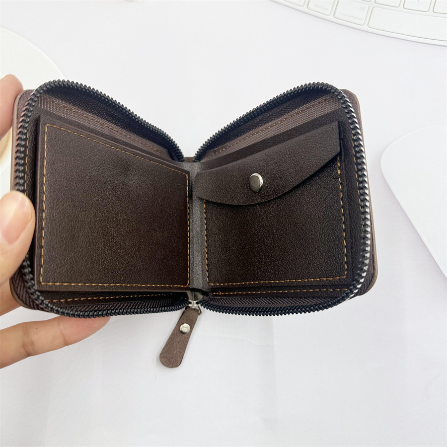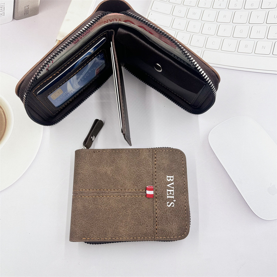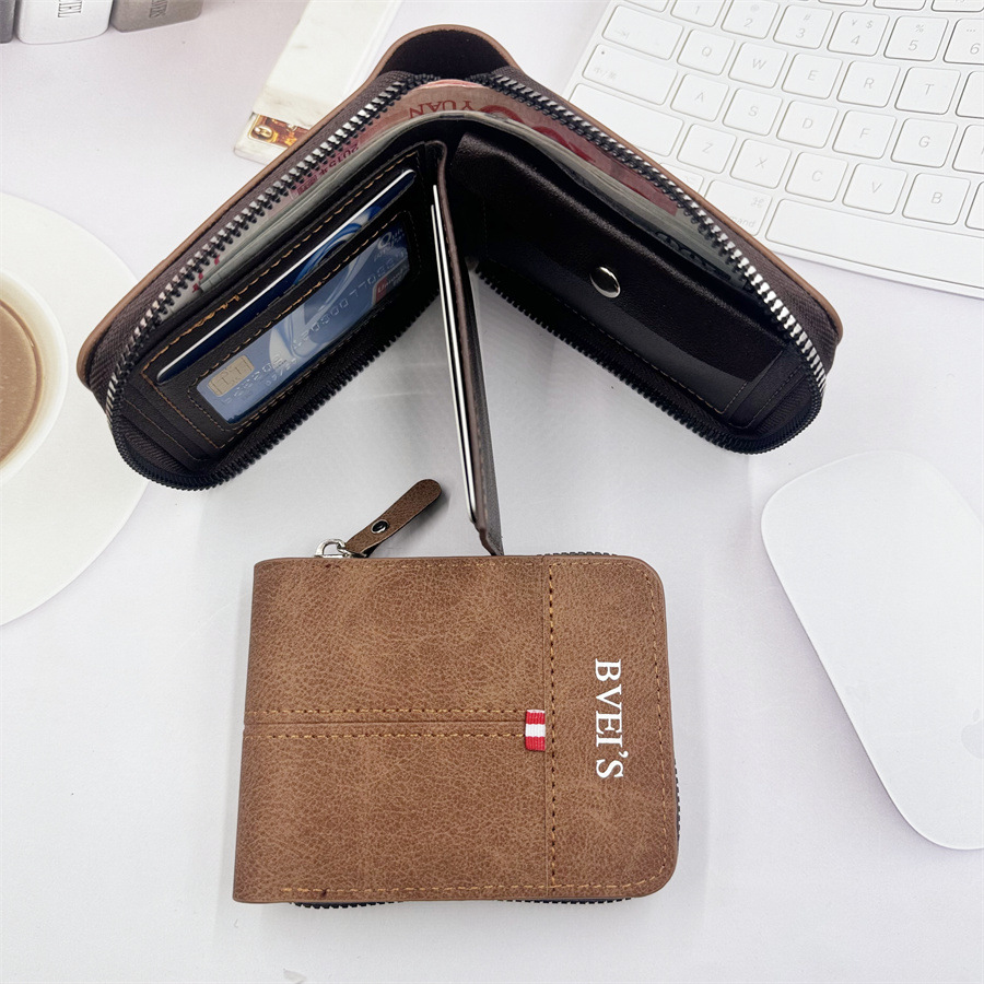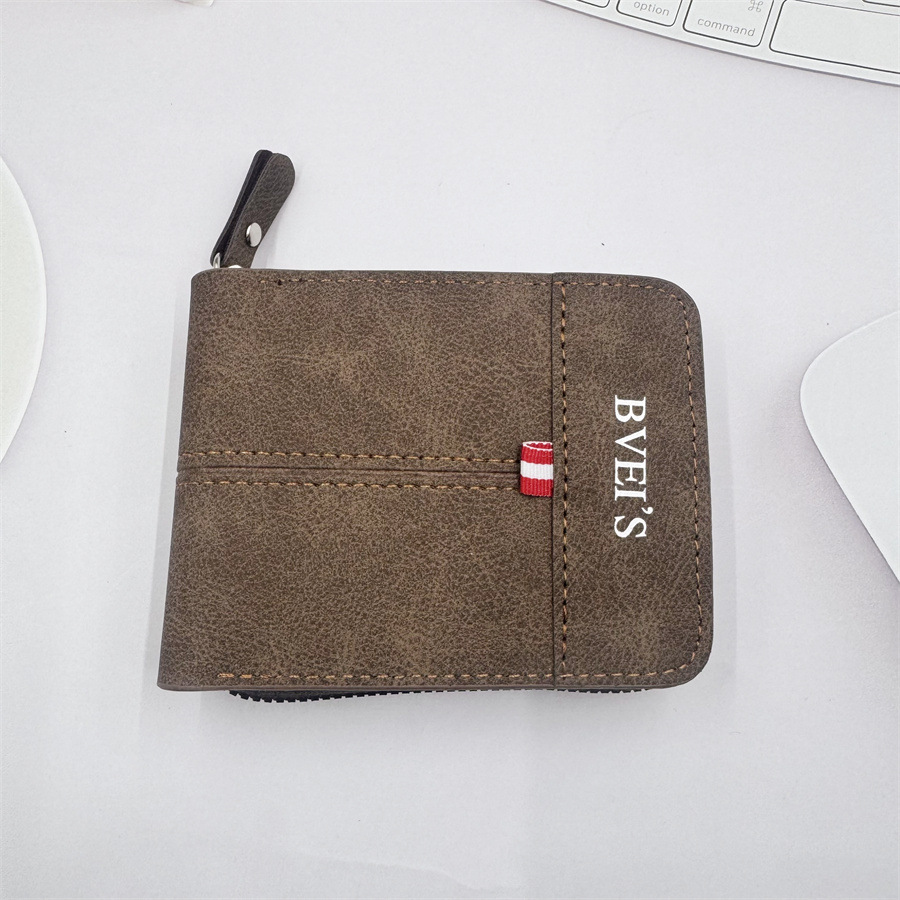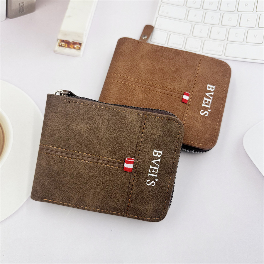 2024新款PU跨境男士钱包短款横款拉链二折零钱包复古休闲四方包