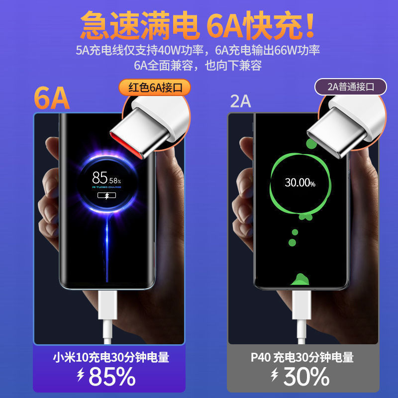 适用于红米小米数据线120W TYPE-C闪充线显金标小数点6A快充原厂