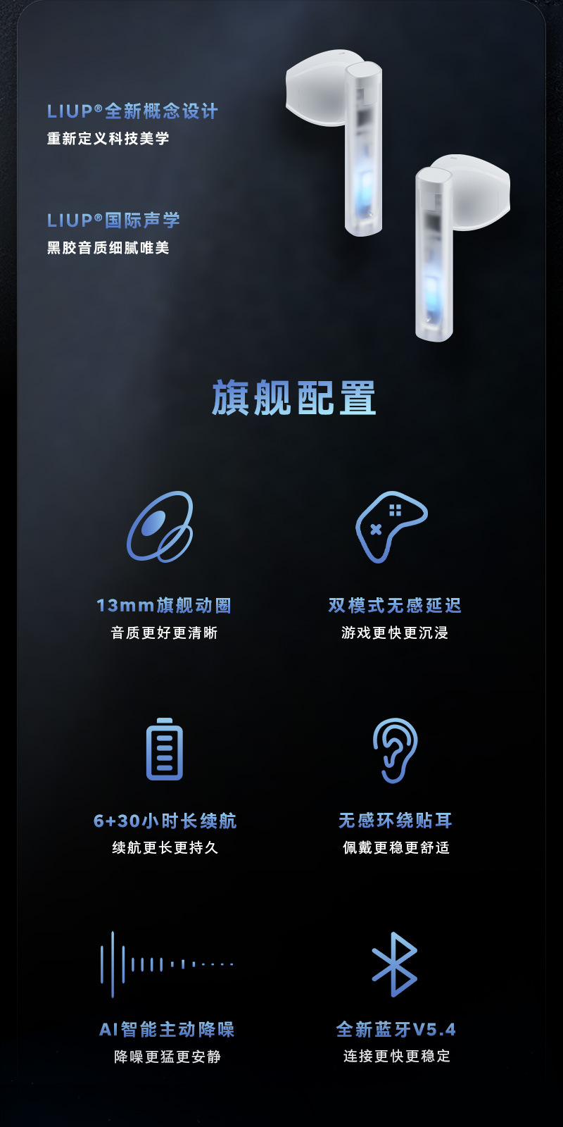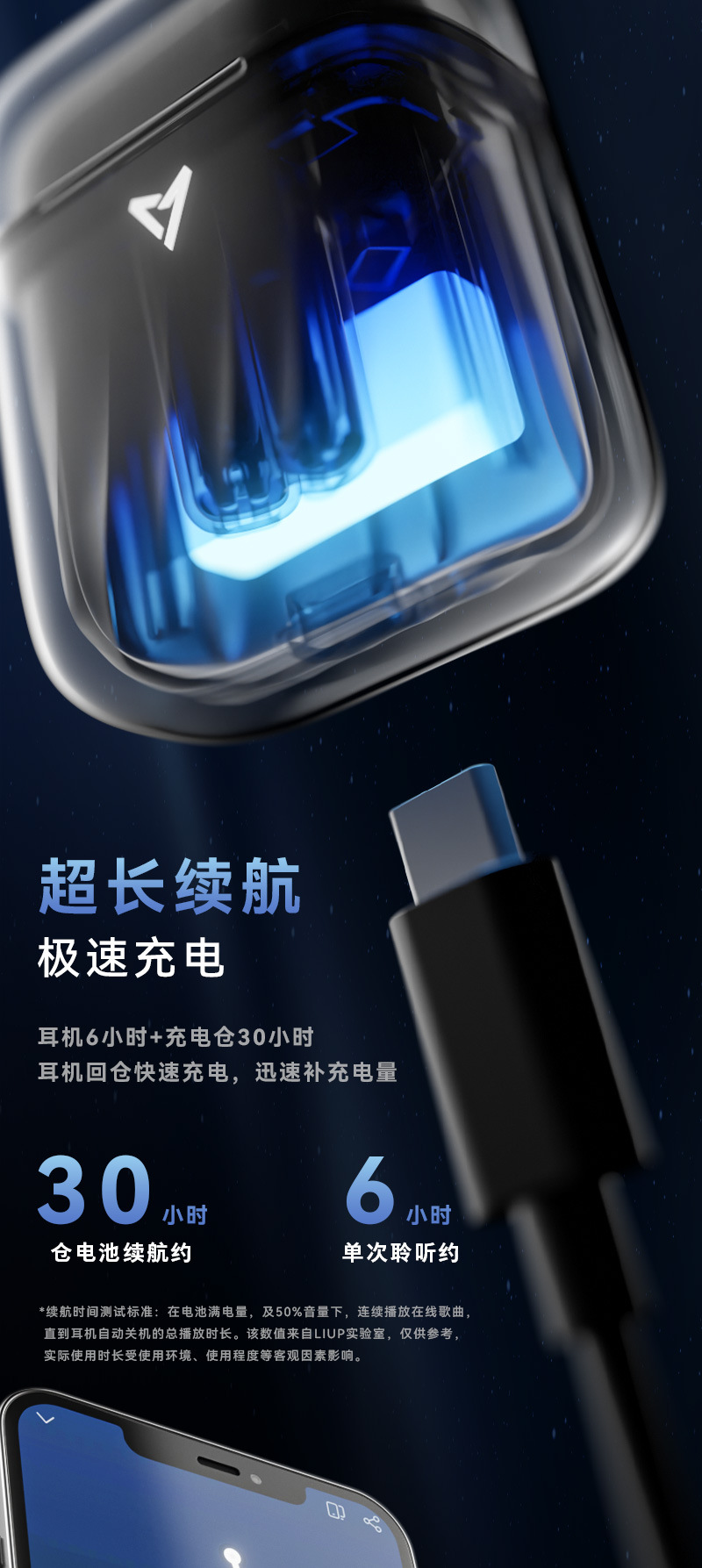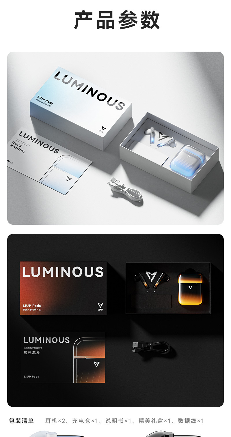新款电竞黑科技降噪入耳真无线耳机超长续航夜光流沙蓝牙耳机