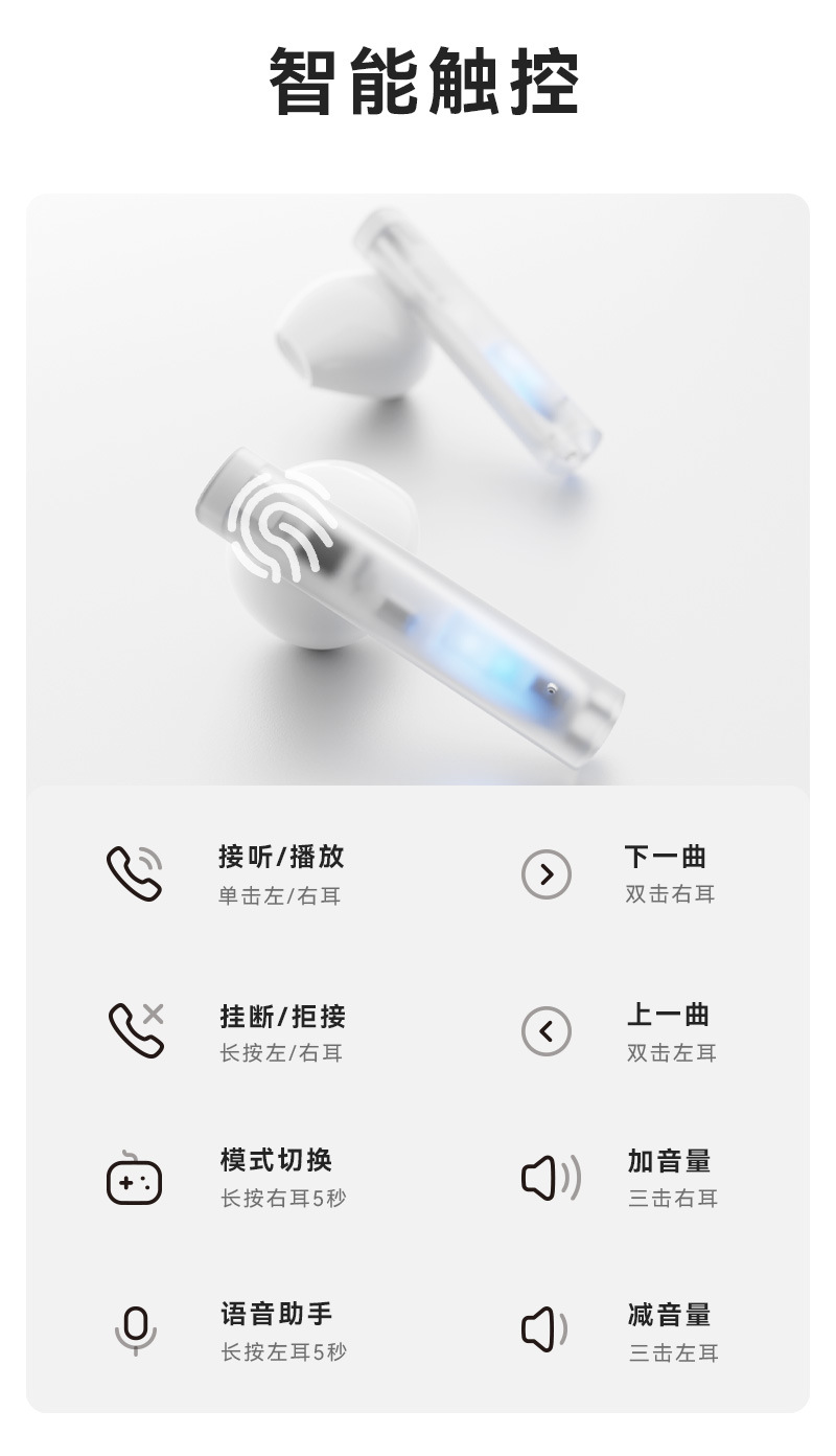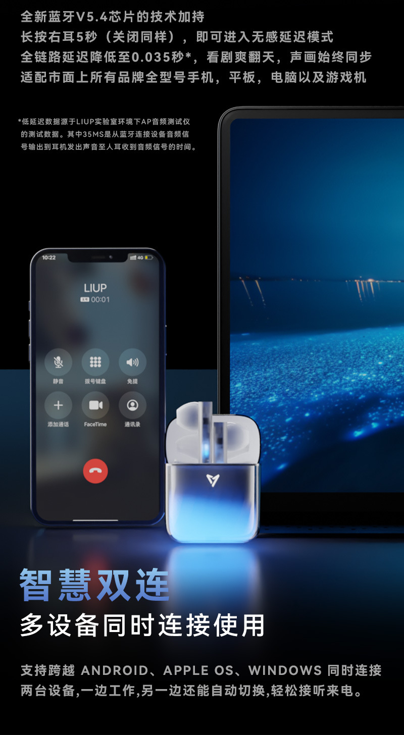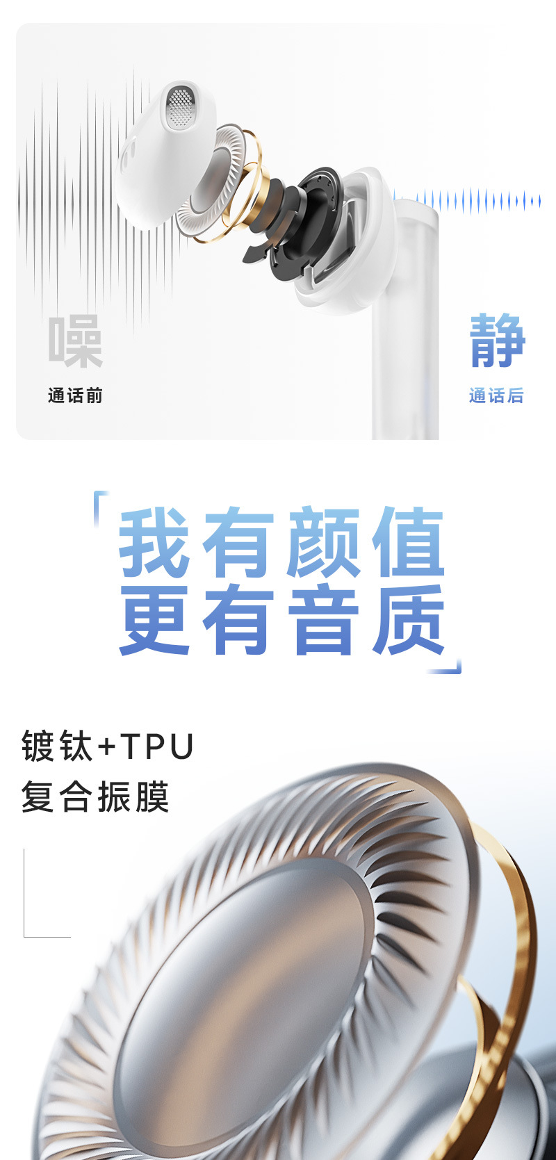 新款电竞黑科技降噪入耳真无线耳机超长续航夜光流沙蓝牙耳机