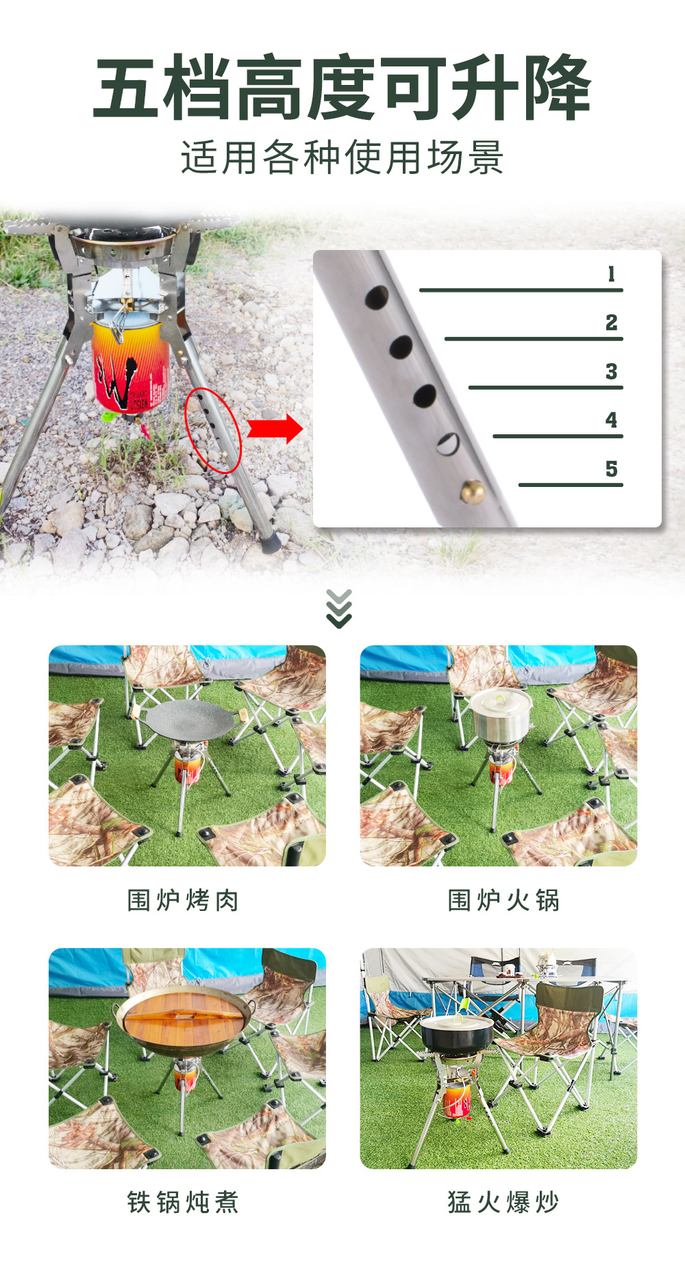BRS-69A 五星蓝焰,8400W,电子点火,带预热管,可升降高支架猛火炉,气罐可倒置,火力更猛,专为地面使用设计,可免带桌子。