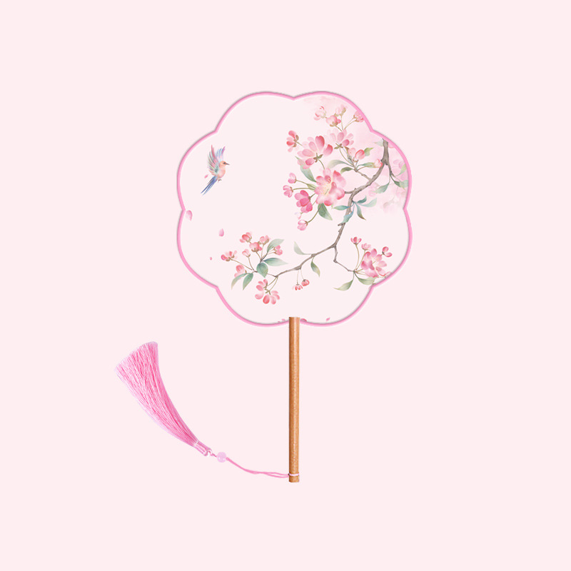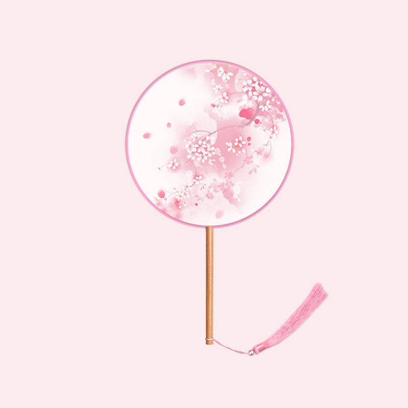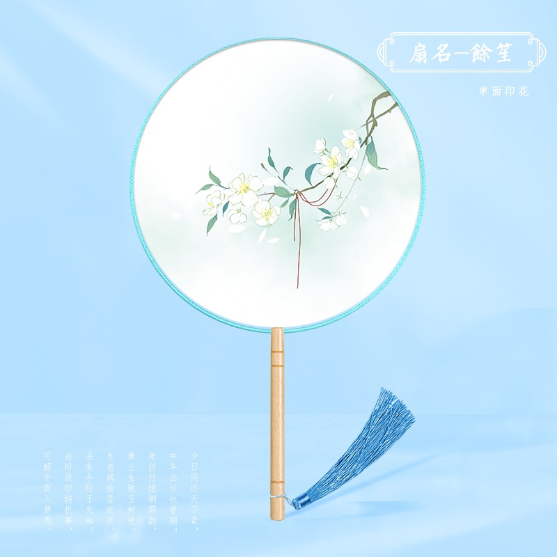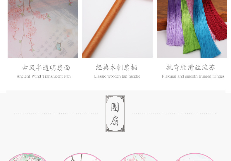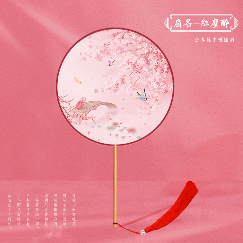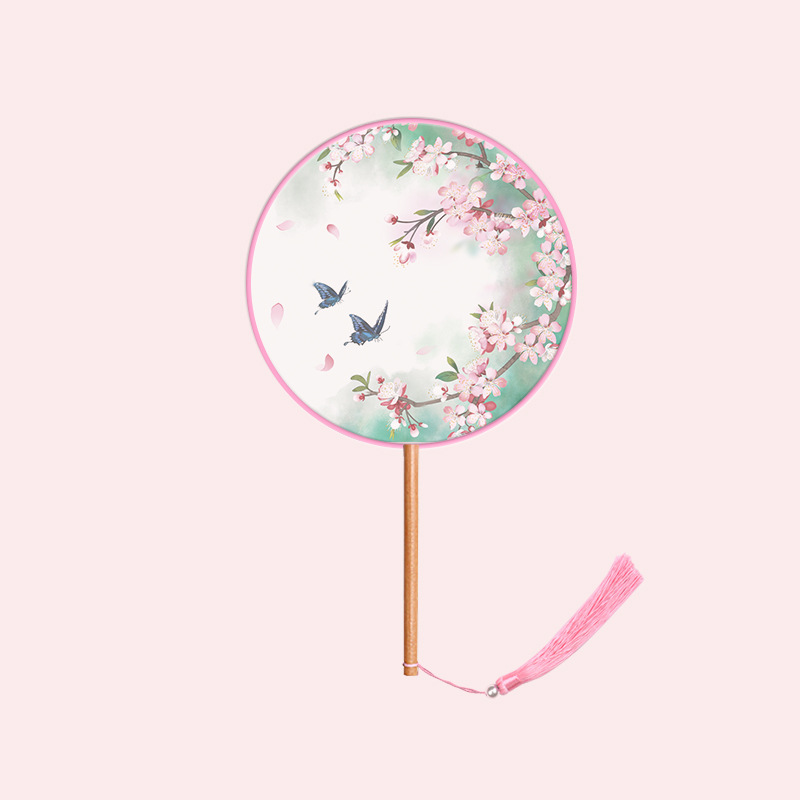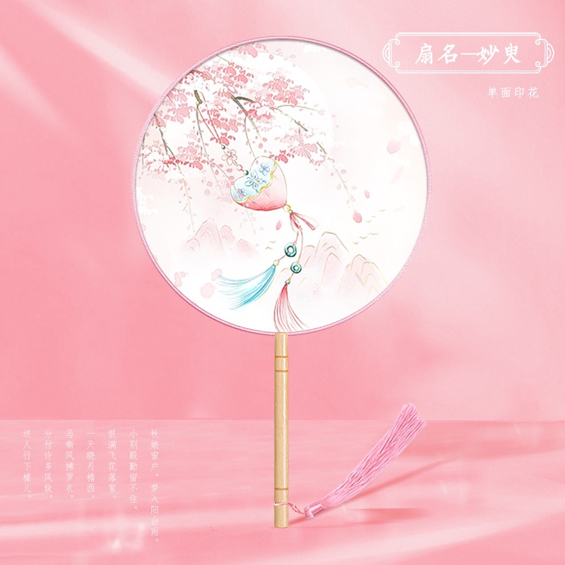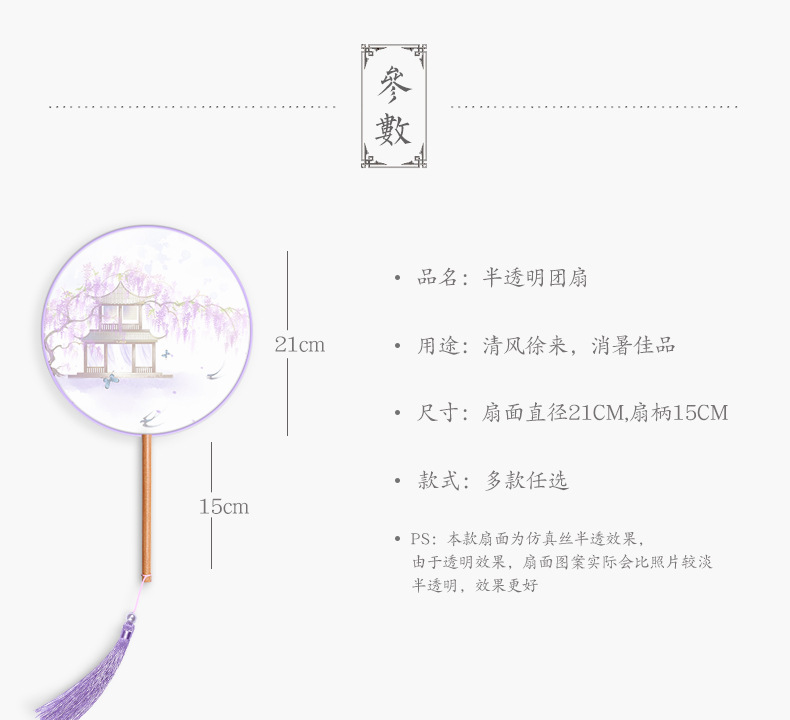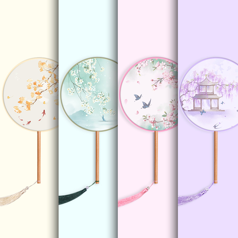 半透儿童长柄团扇古风刺绣扇子舞蹈扇夏天女童汉服旗袍古装小圆扇