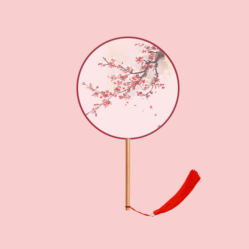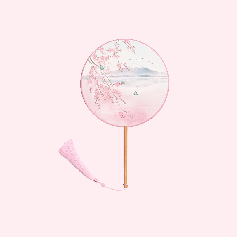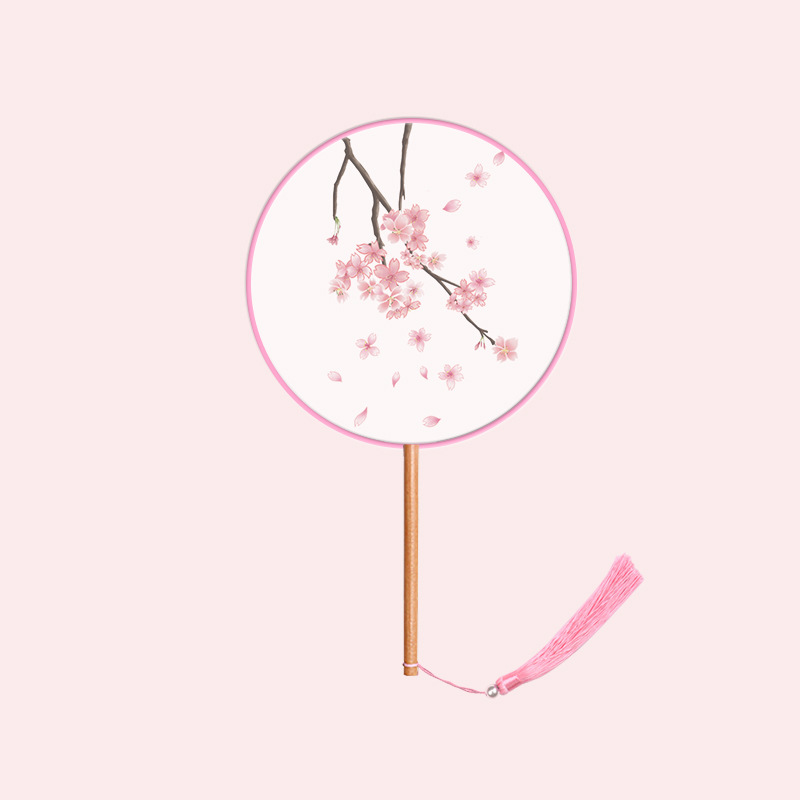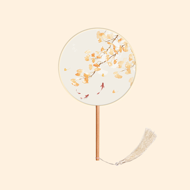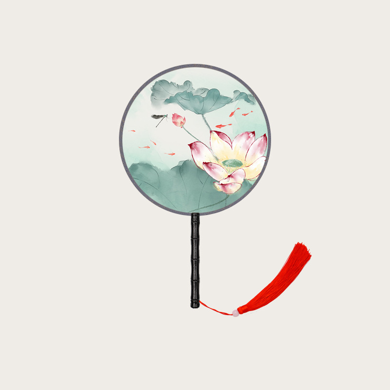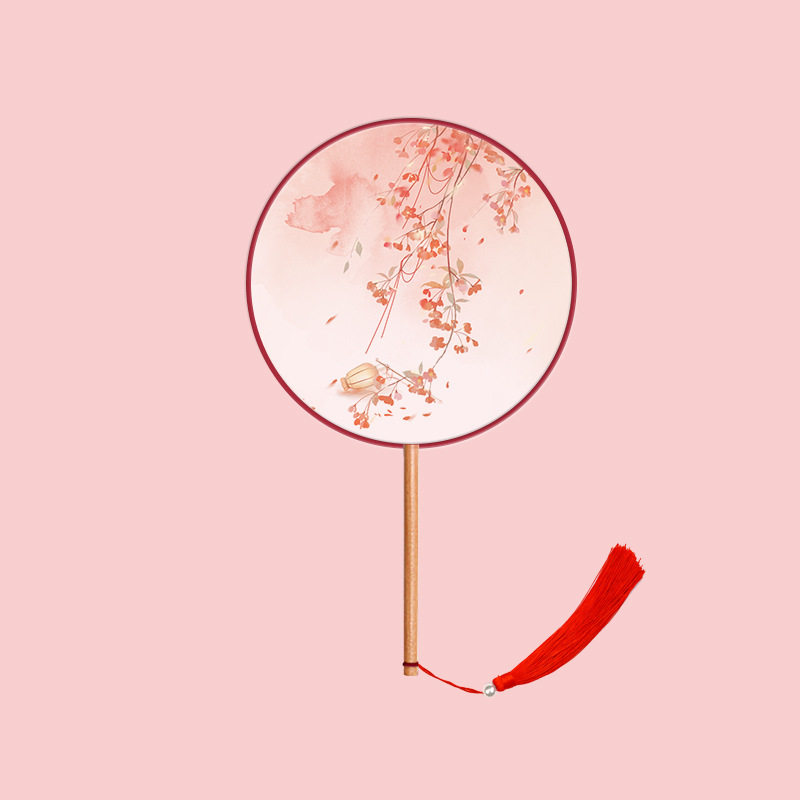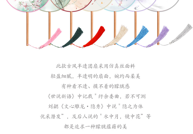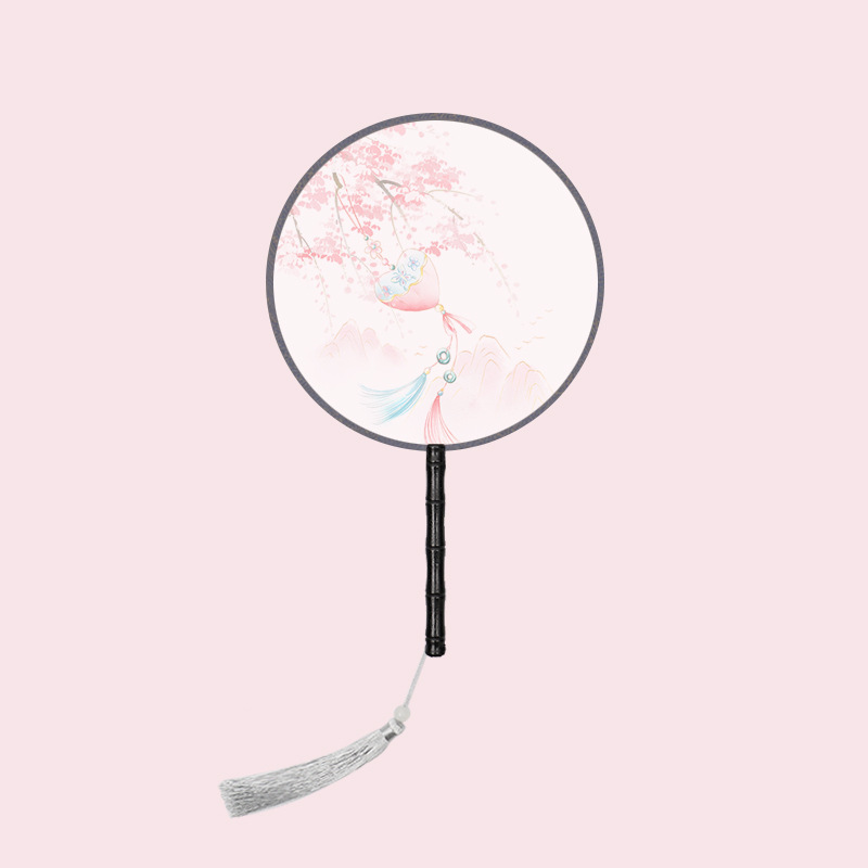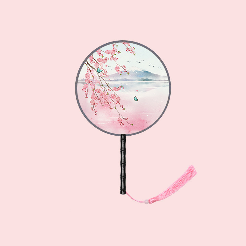 半透儿童长柄团扇古风刺绣扇子舞蹈扇夏天女童汉服旗袍古装小圆扇