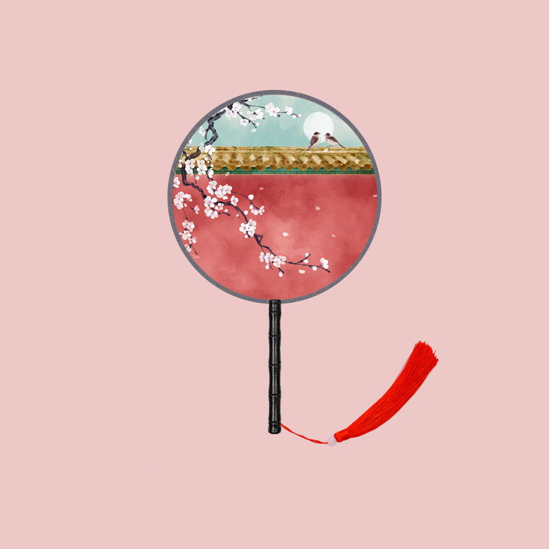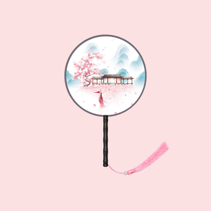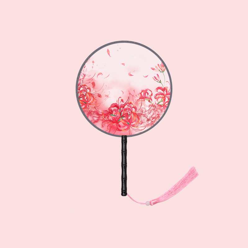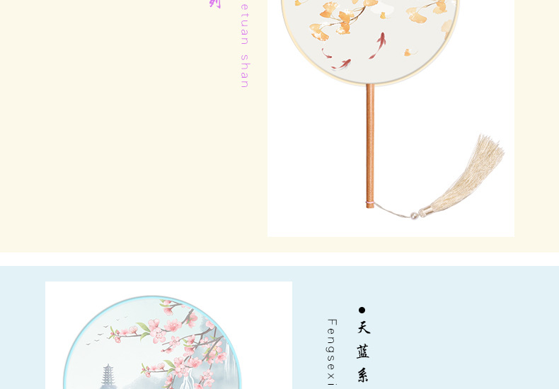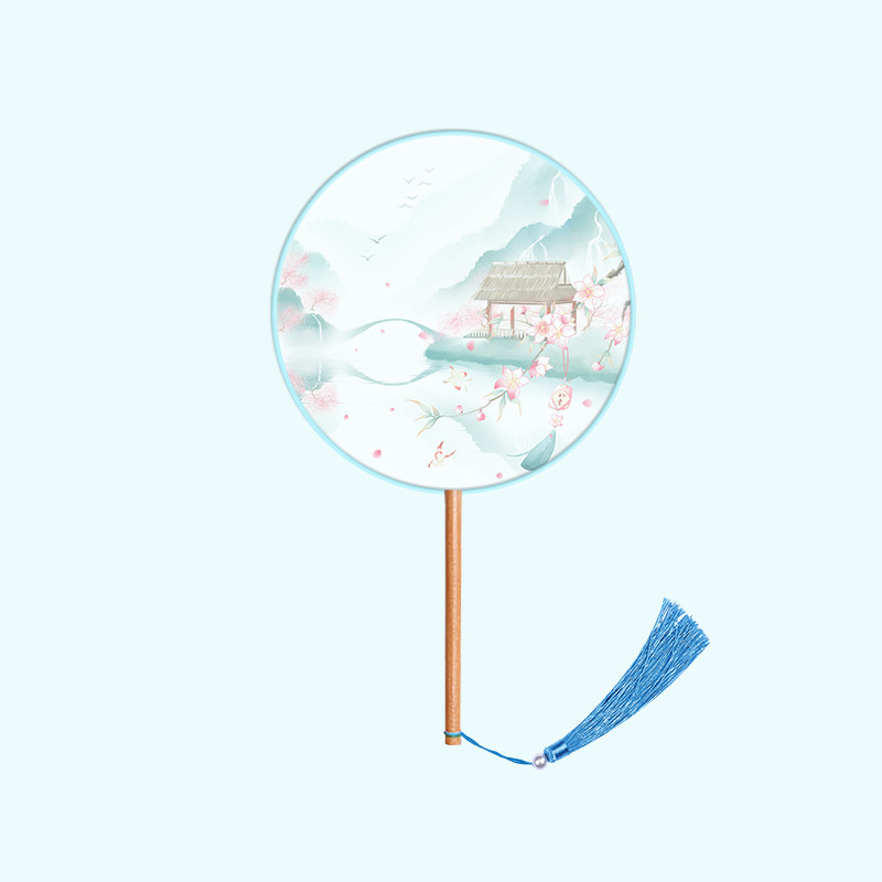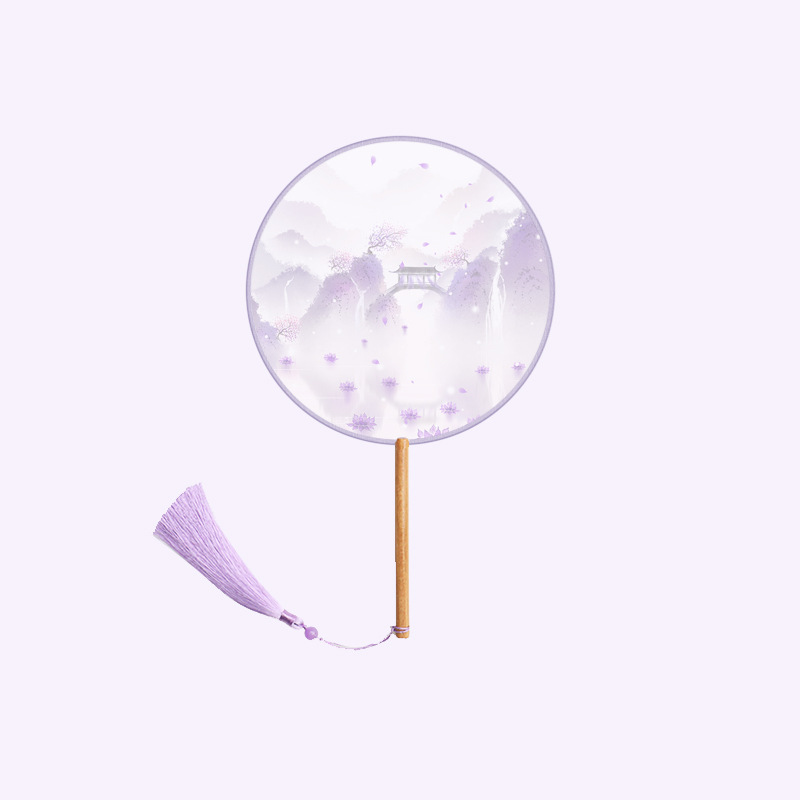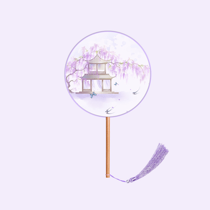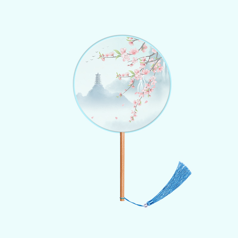 半透儿童长柄团扇古风刺绣扇子舞蹈扇夏天女童汉服旗袍古装小圆扇
