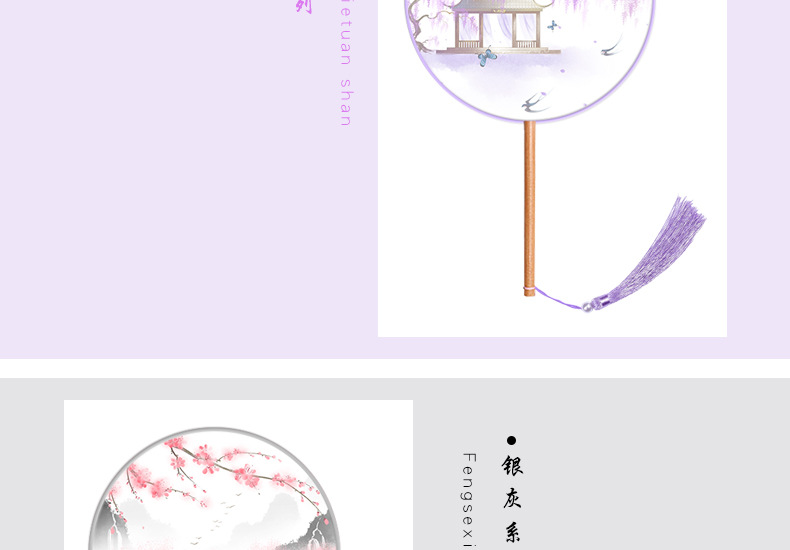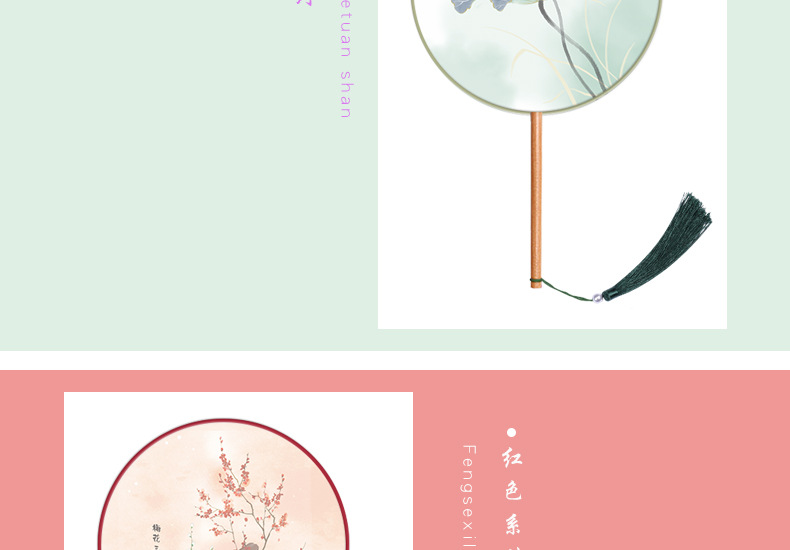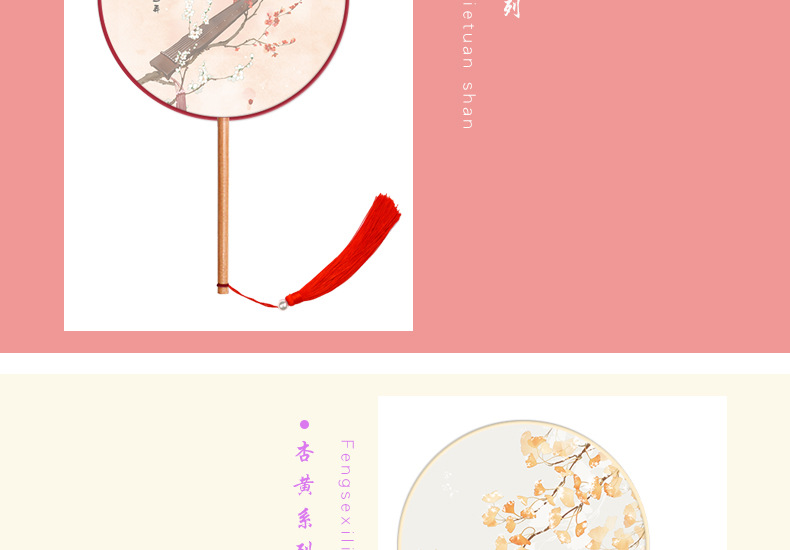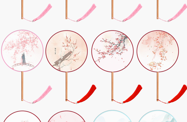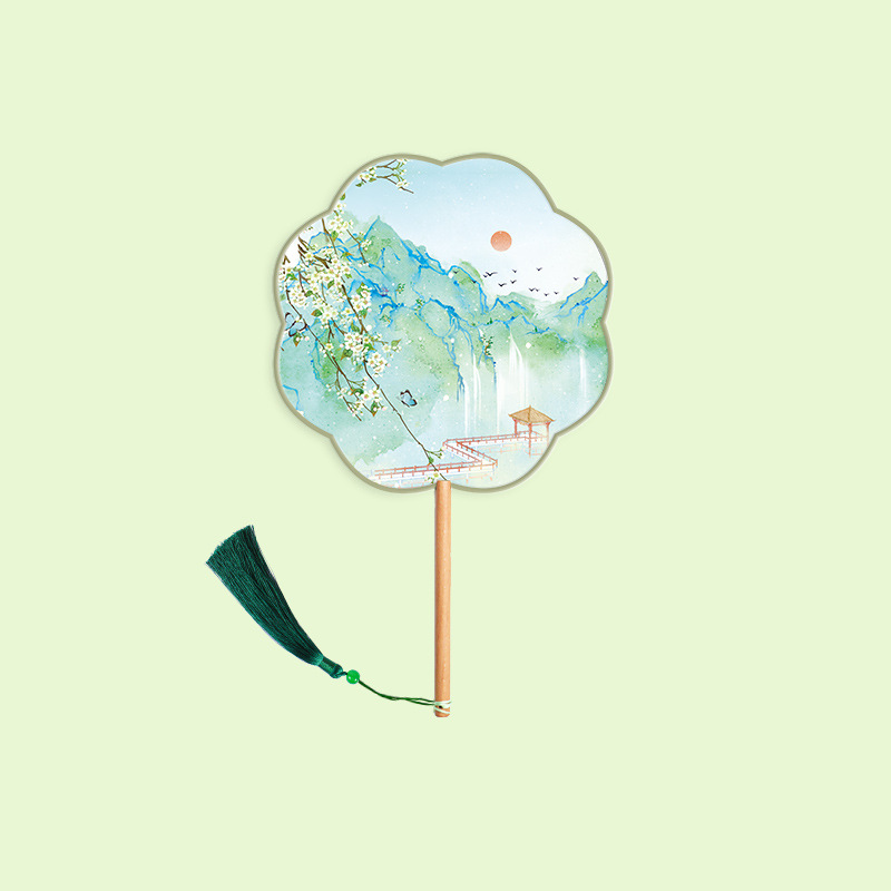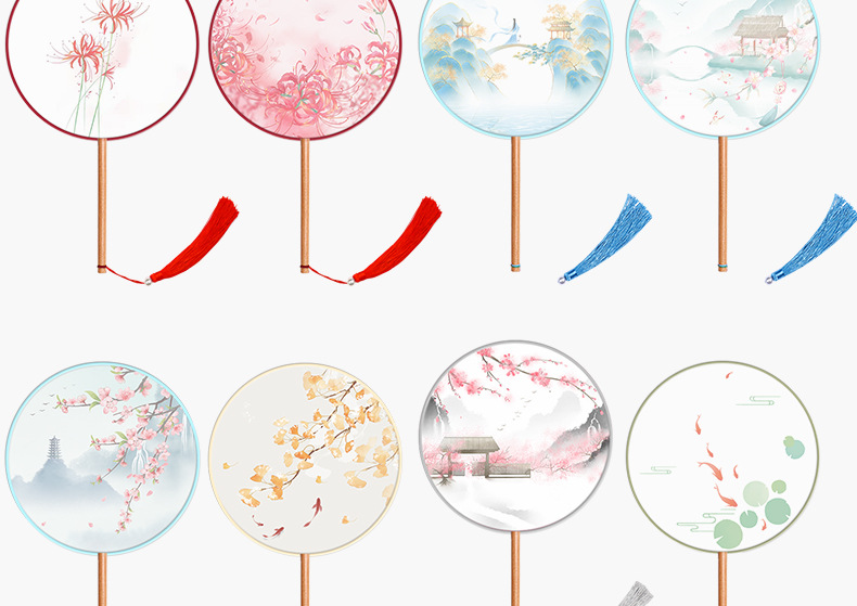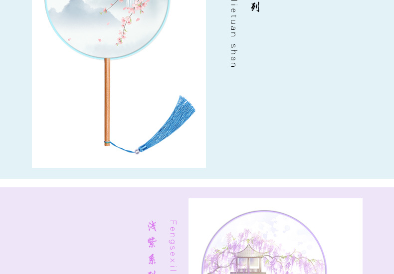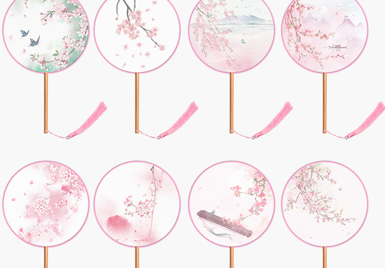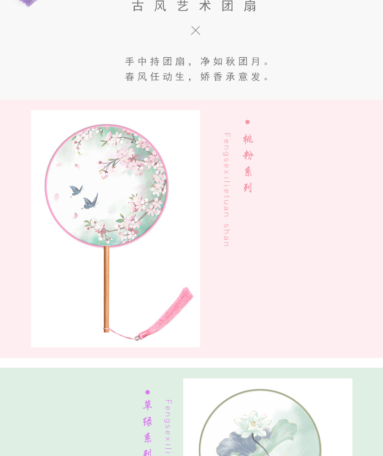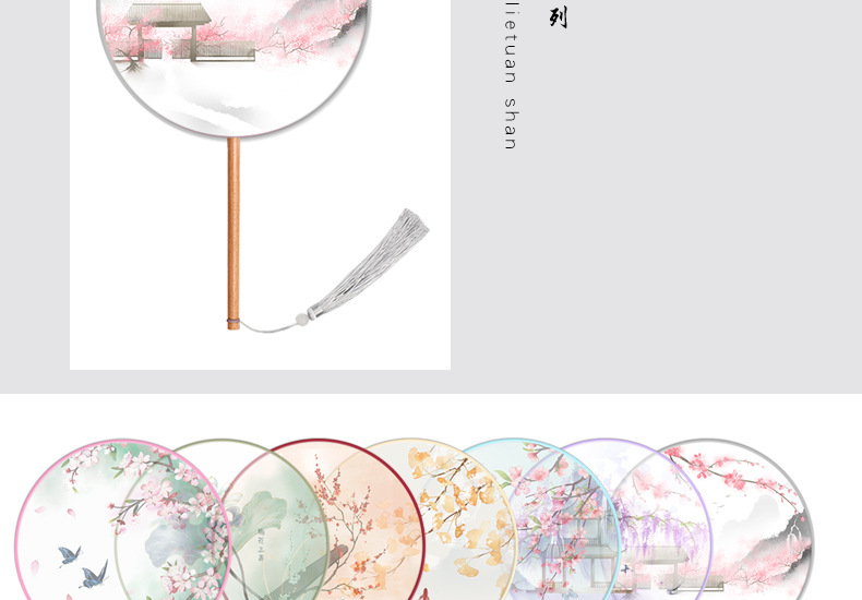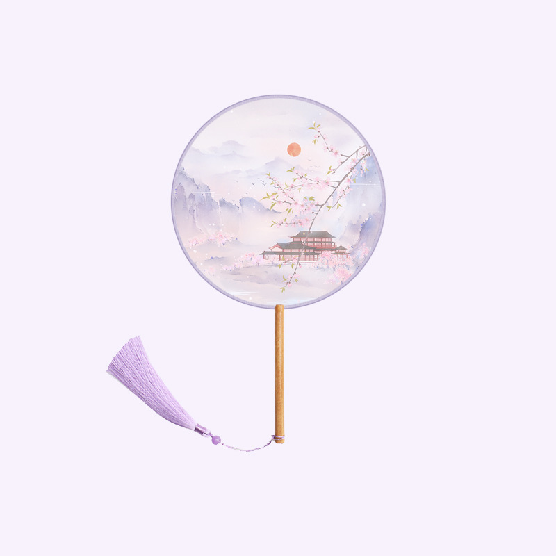半透儿童长柄团扇古风刺绣扇子舞蹈扇夏天女童汉服旗袍古装小圆扇