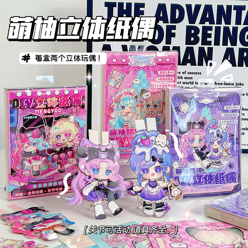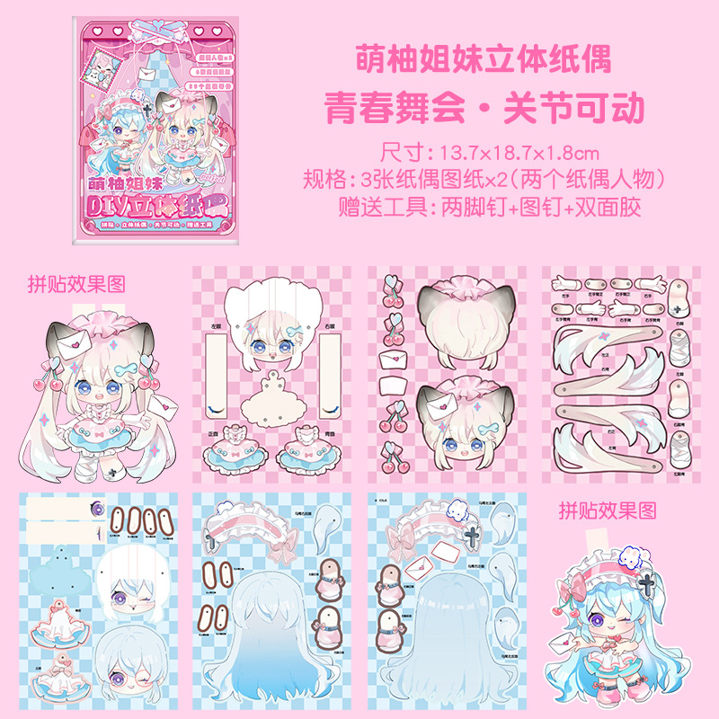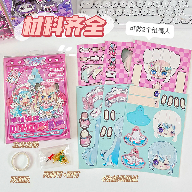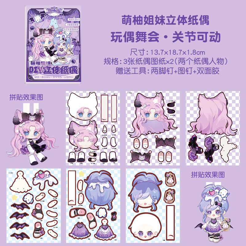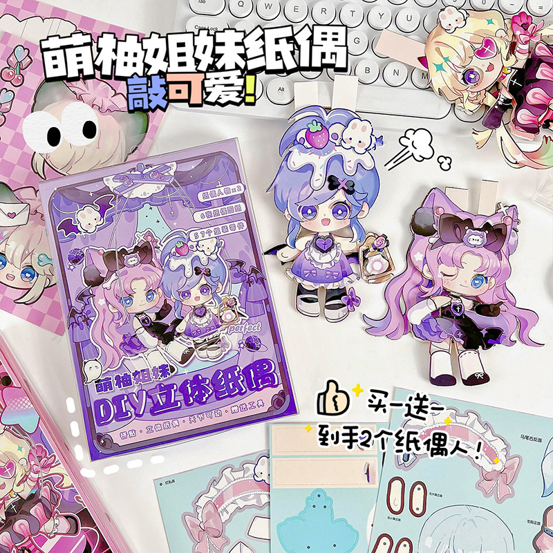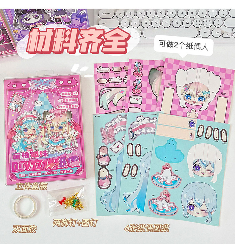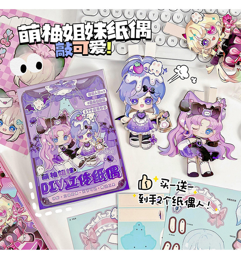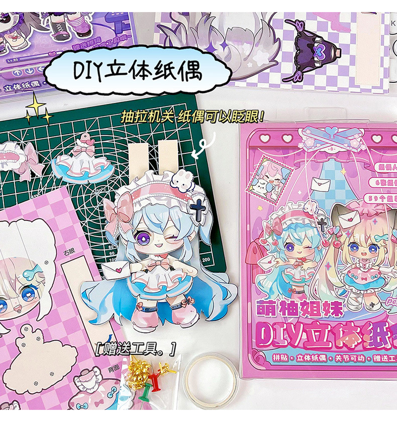 萌柚姐妹纸偶安静书儿童手工可动纸片人套装DIY免裁剪立体纸偶人