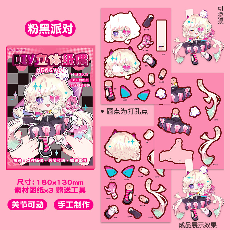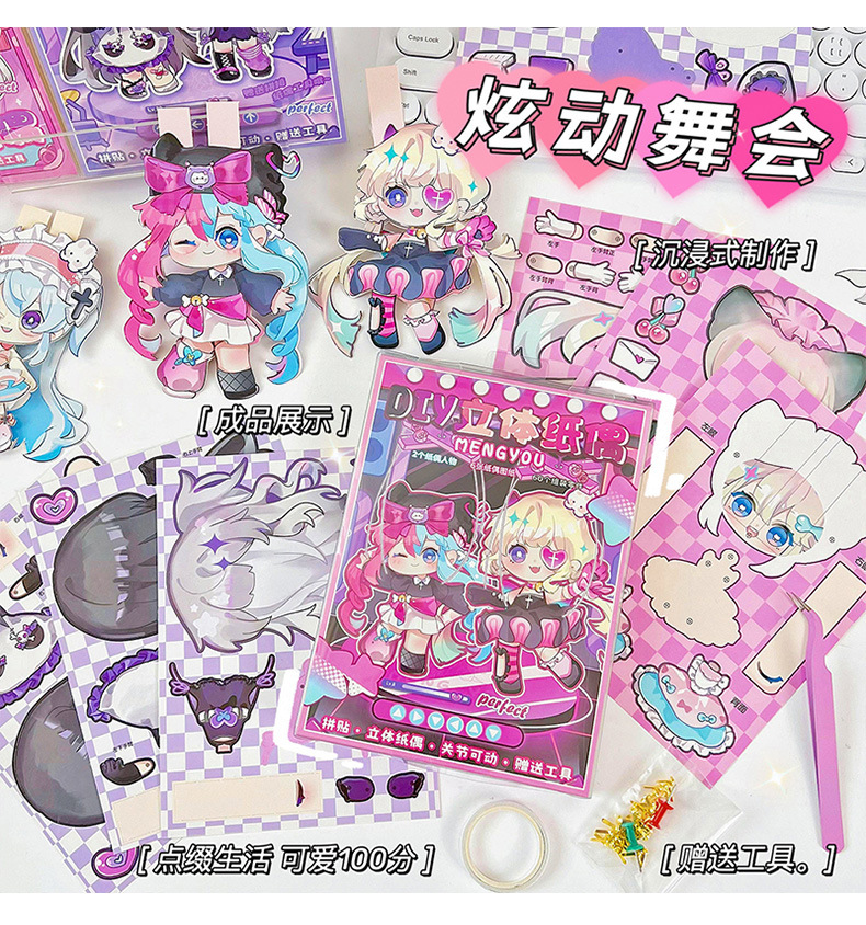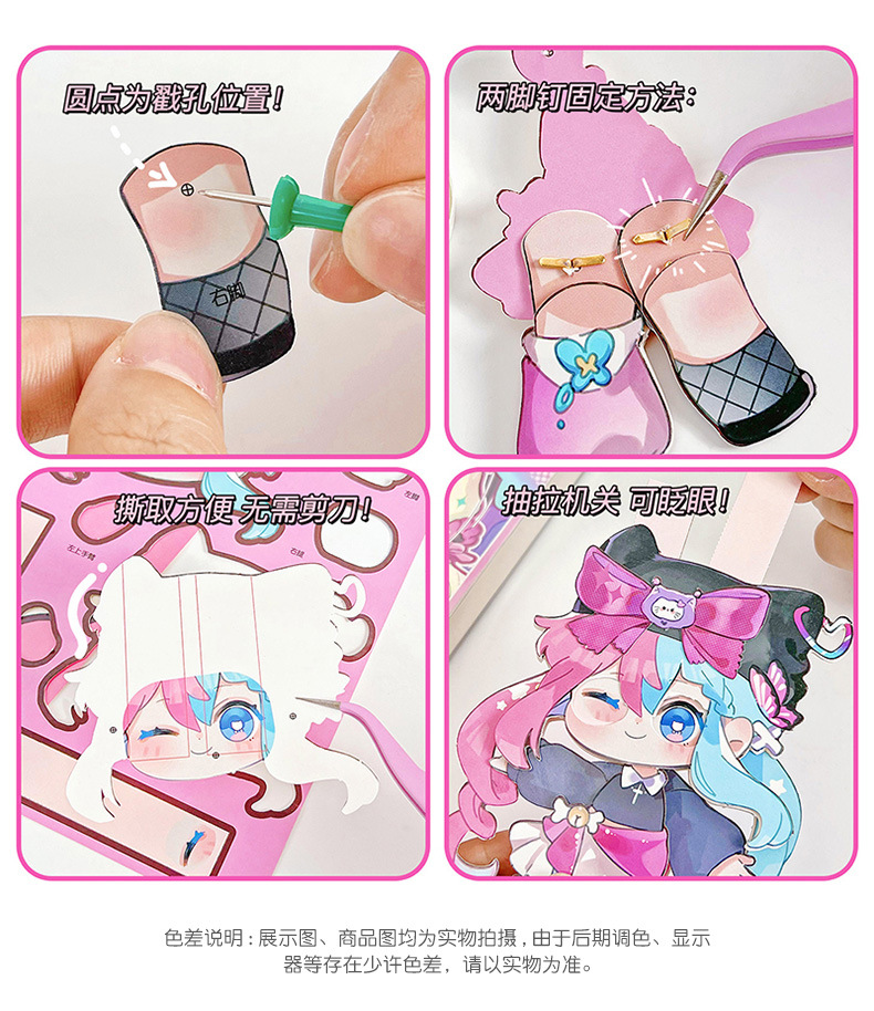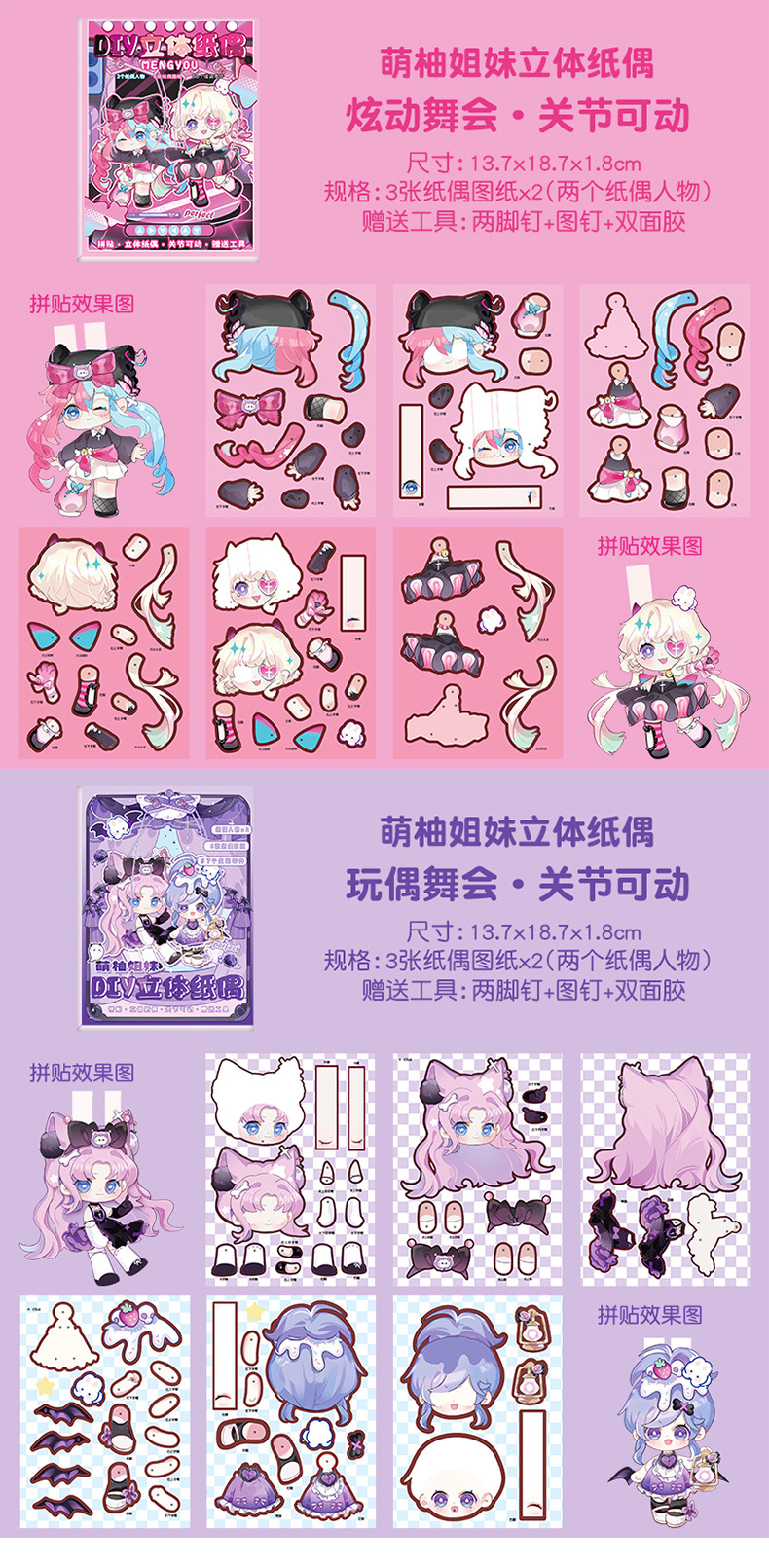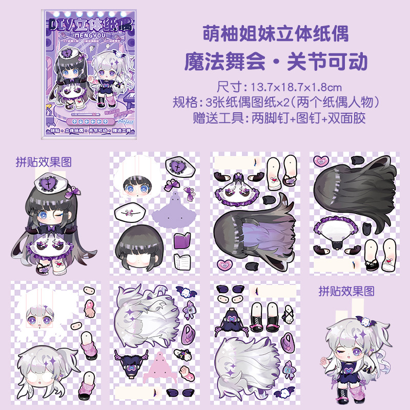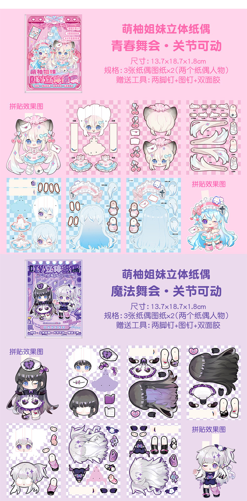 萌柚姐妹纸偶安静书儿童手工可动纸片人套装DIY免裁剪立体纸偶人