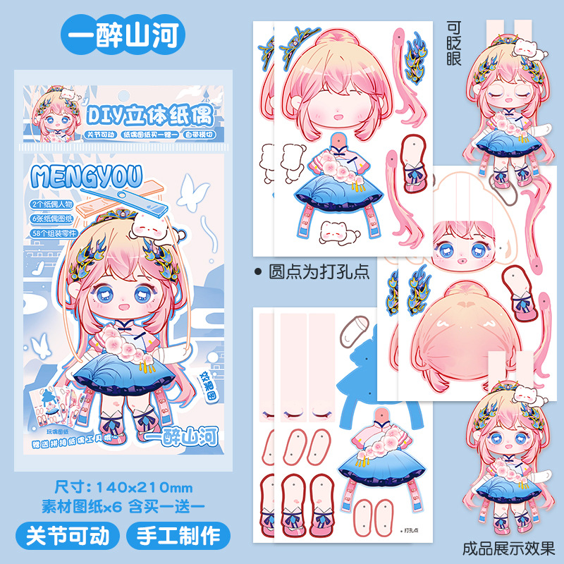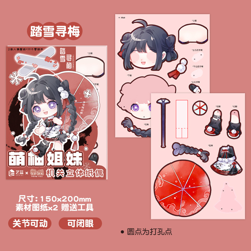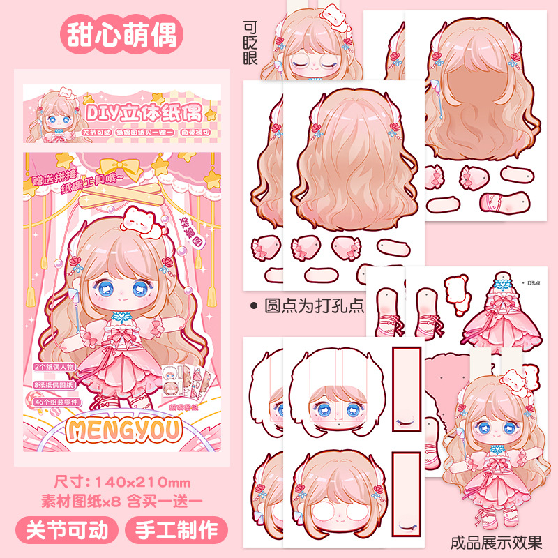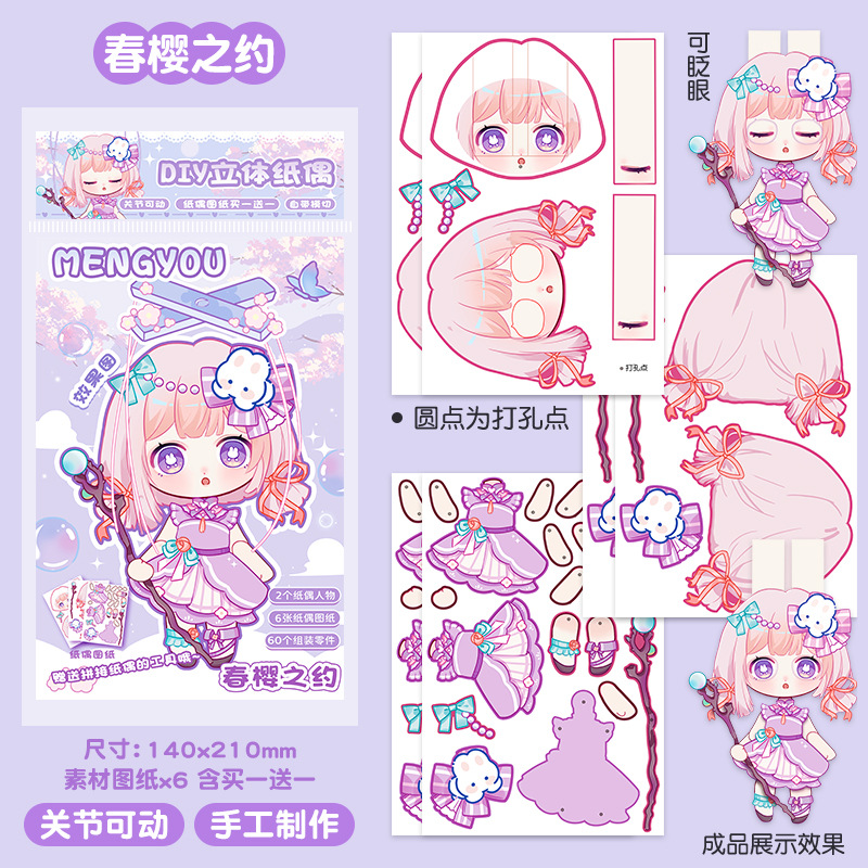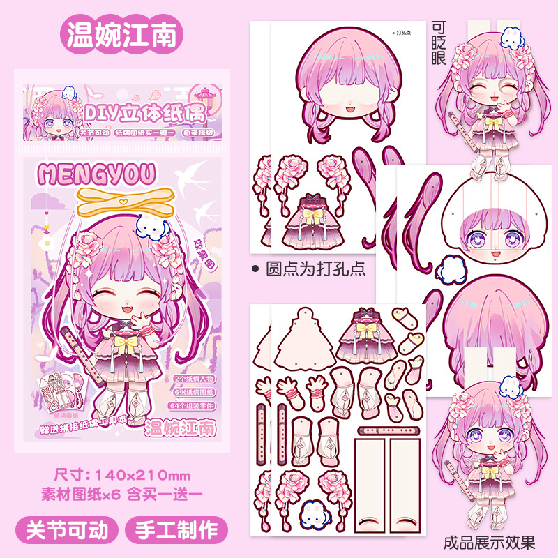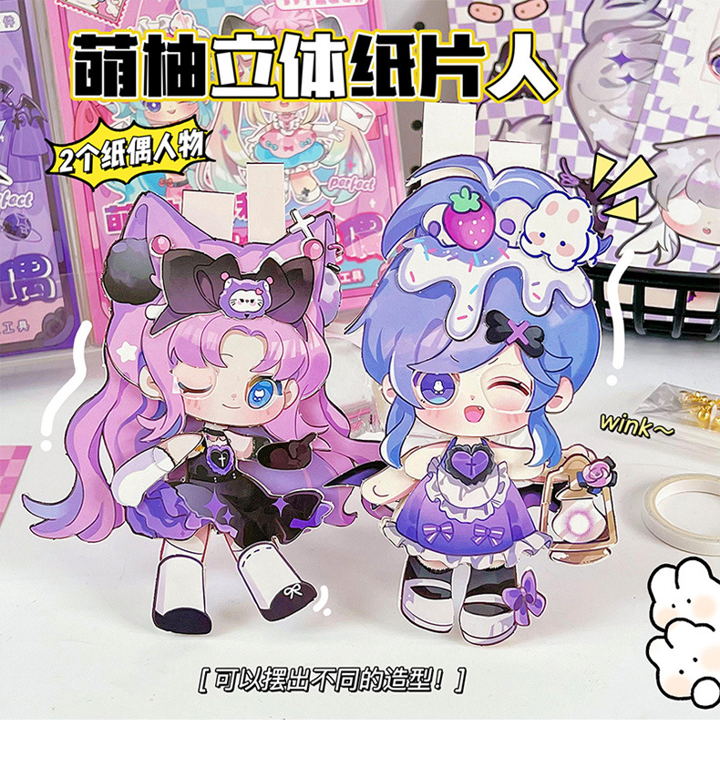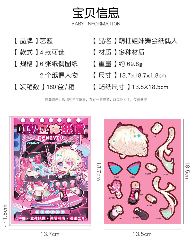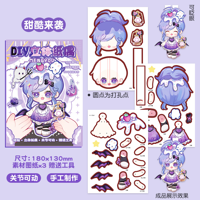 萌柚姐妹纸偶安静书儿童手工可动纸片人套装DIY免裁剪立体纸偶人