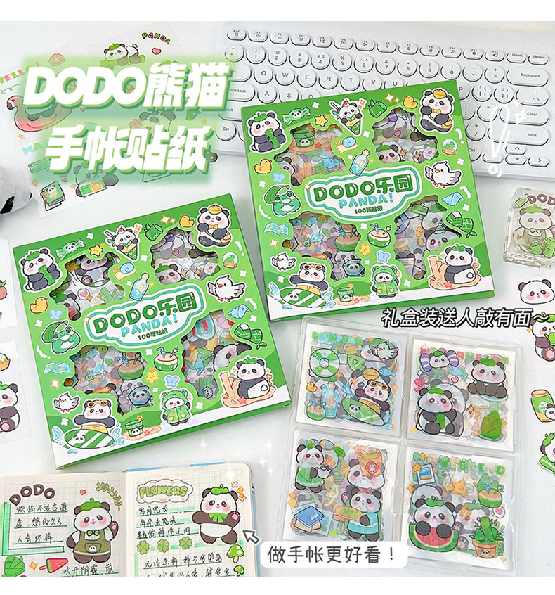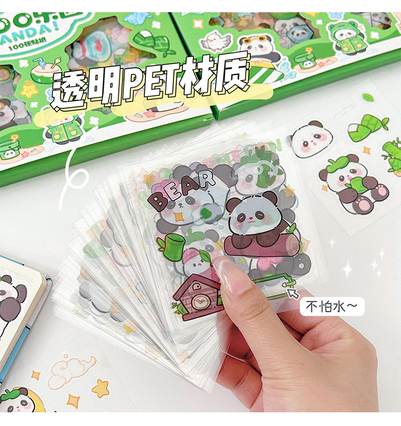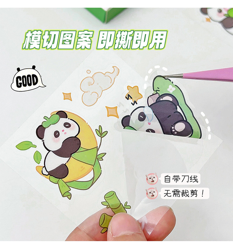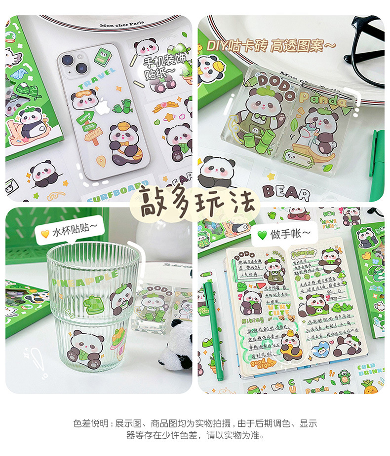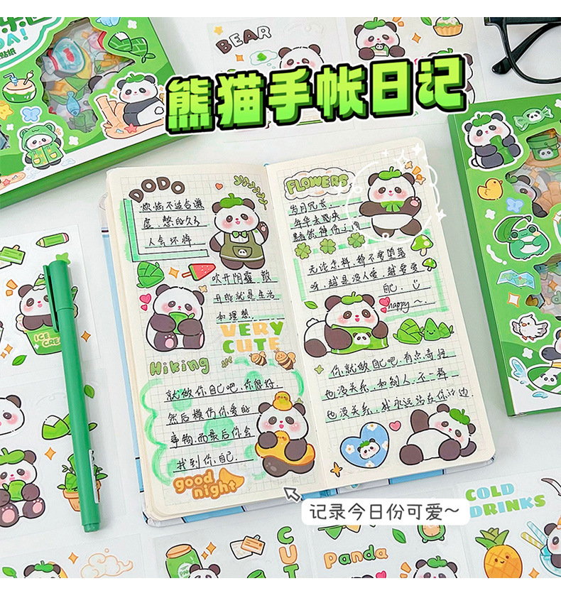 卡通熊猫手帐贴纸可爱国宝大熊猫防水贴纸儿童DIY贴画透明水杯贴