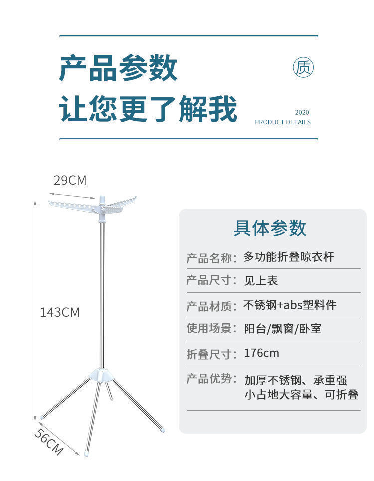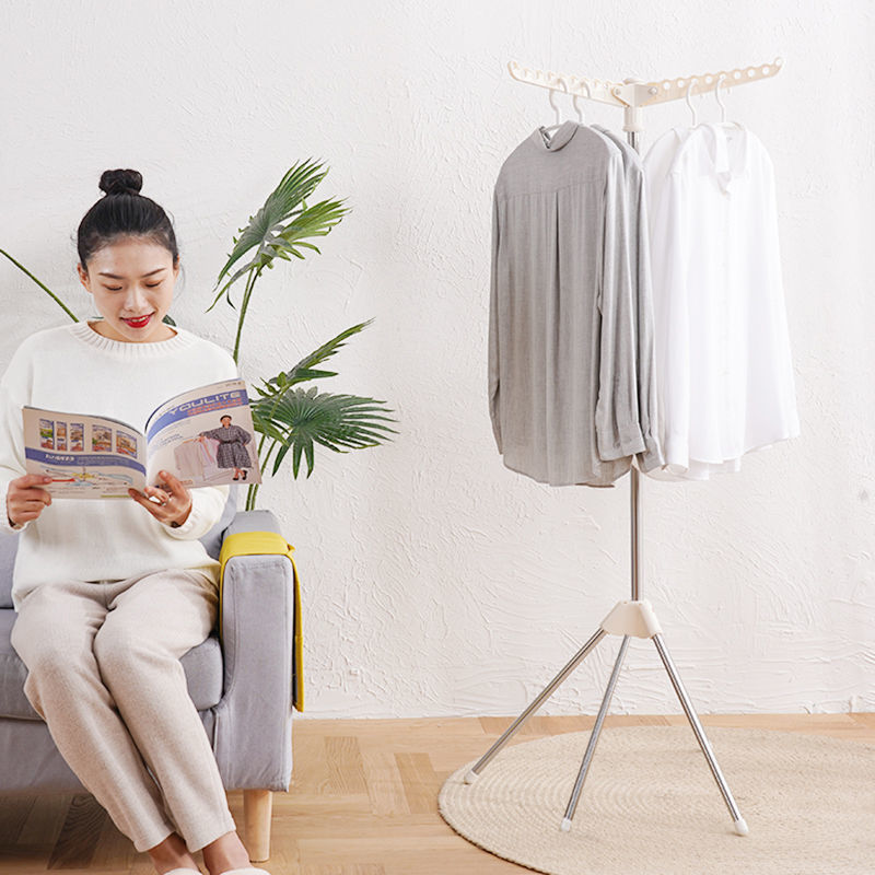 不锈钢简易晾衣架落地折叠阳台室内小型移动晒衣架家用旅行挂衣架