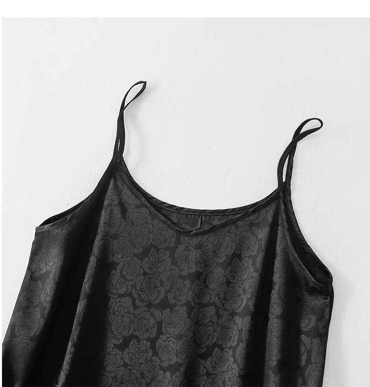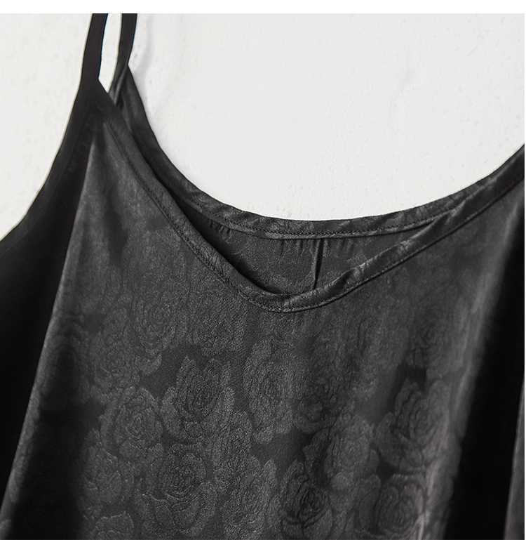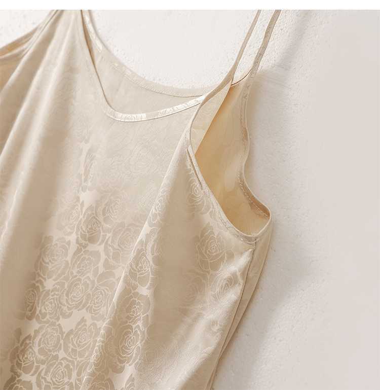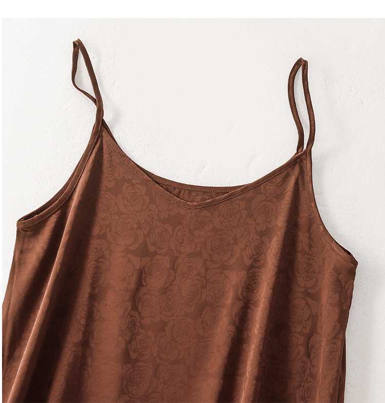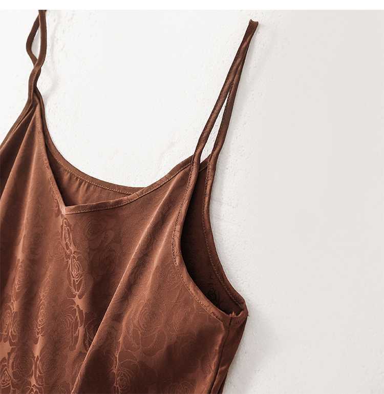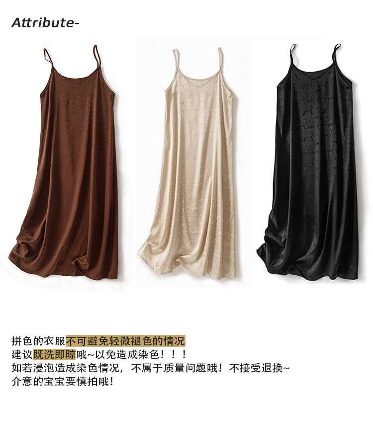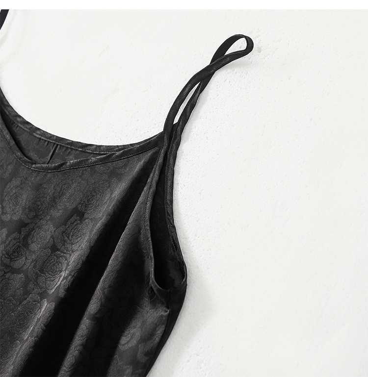 实拍 新款真丝醋酸缎面圆领玫瑰连衣裙内搭吊带裙女长裙子