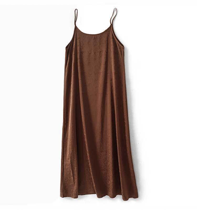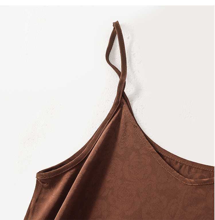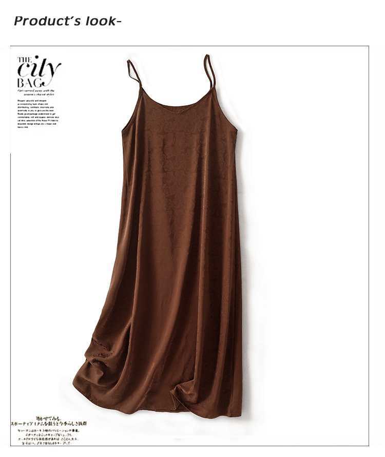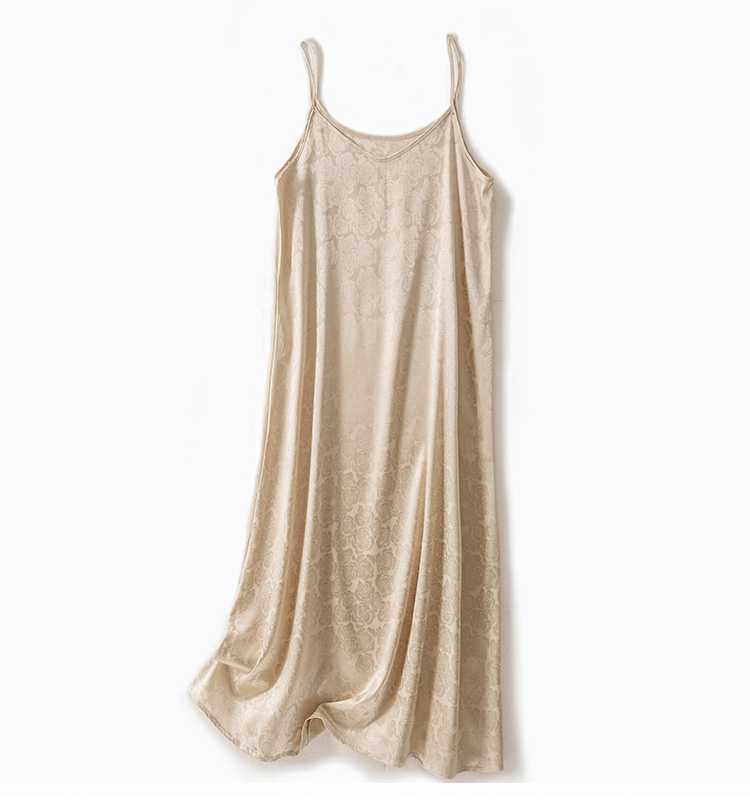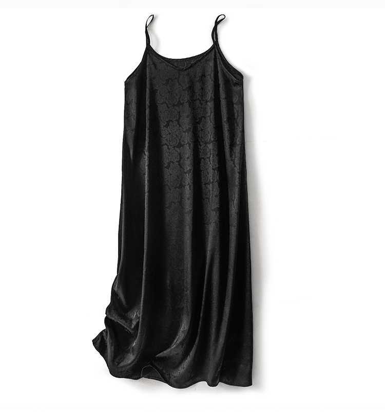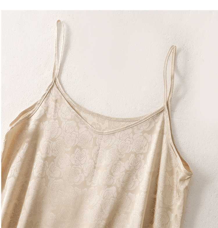 实拍 新款真丝醋酸缎面圆领玫瑰连衣裙内搭吊带裙女长裙子