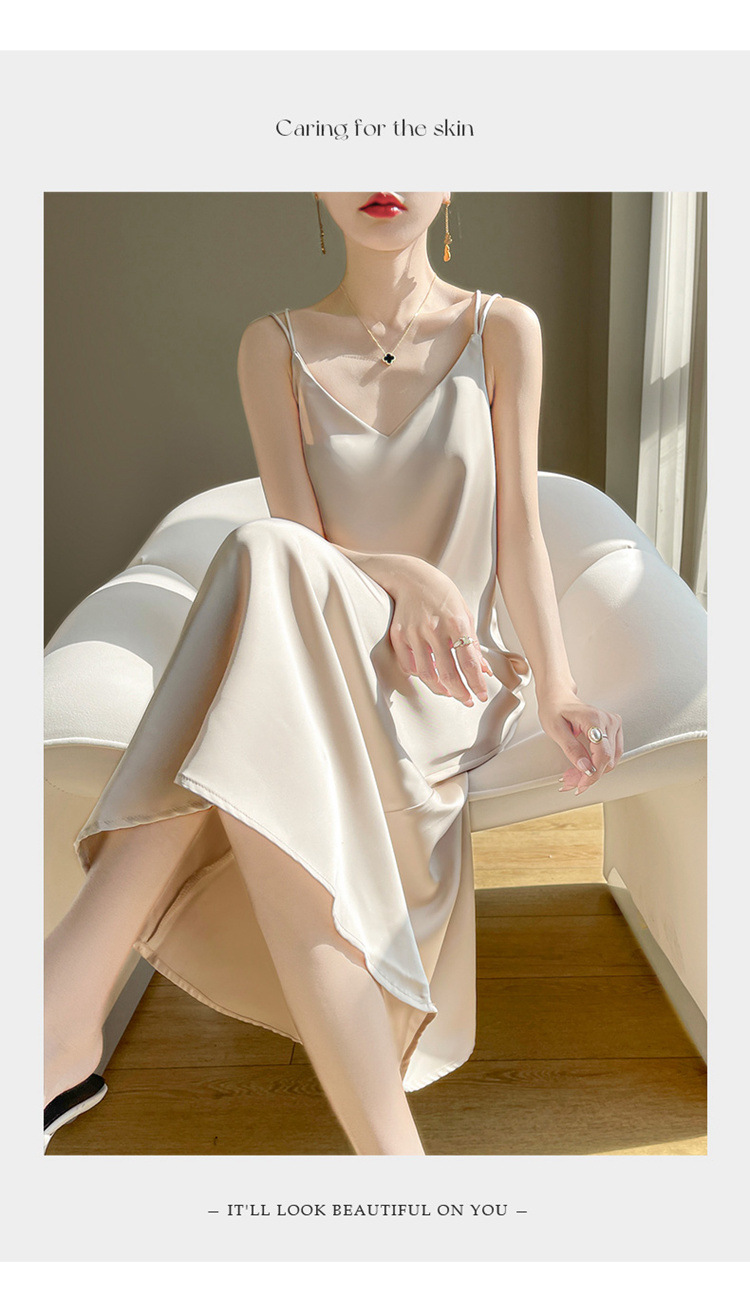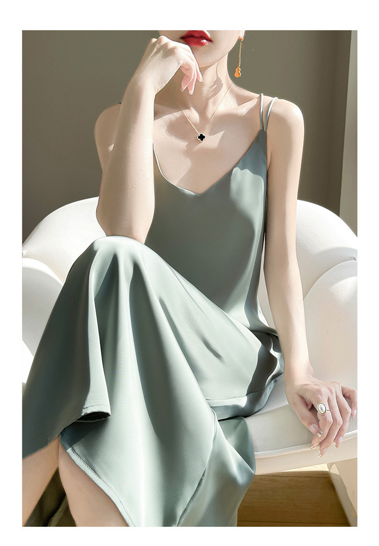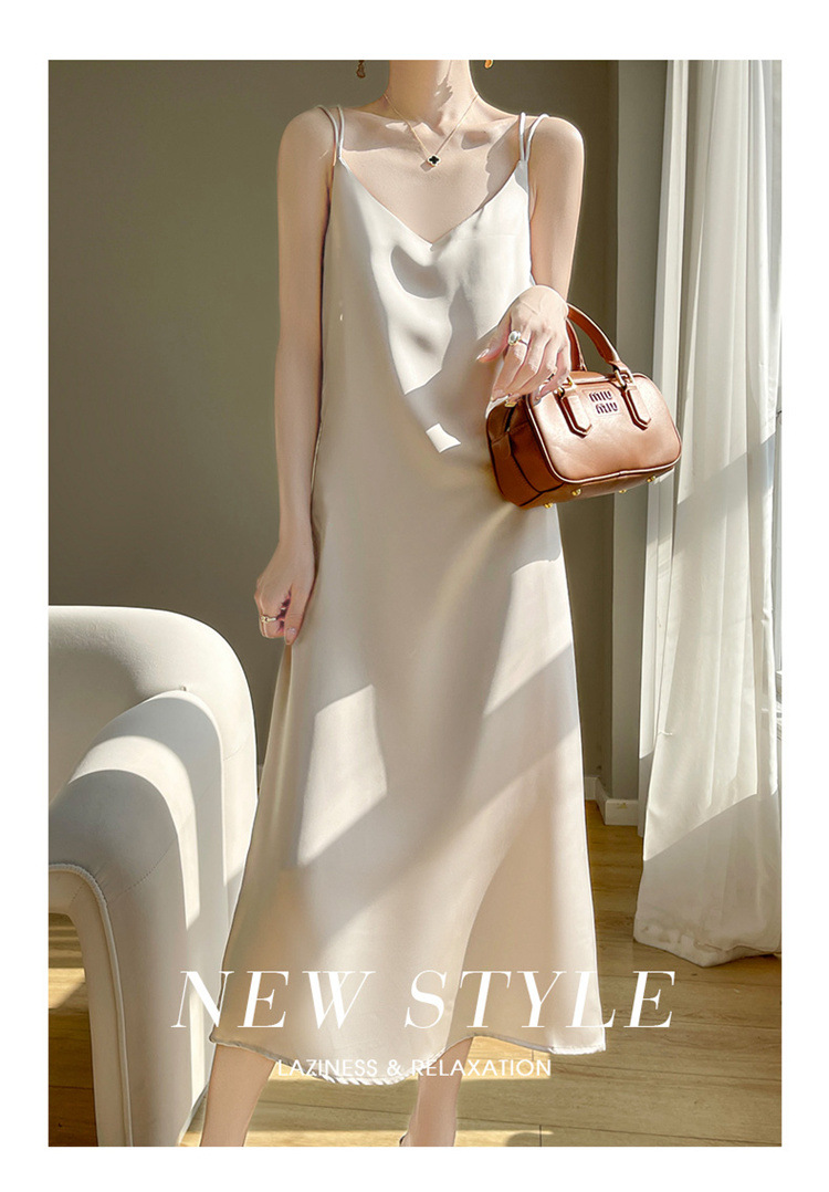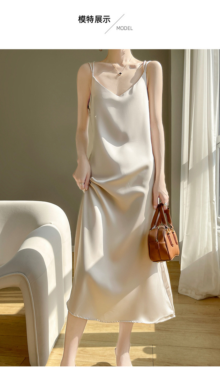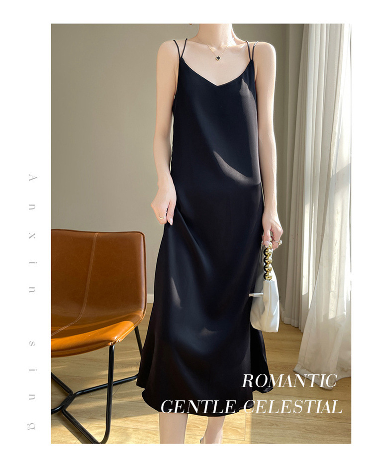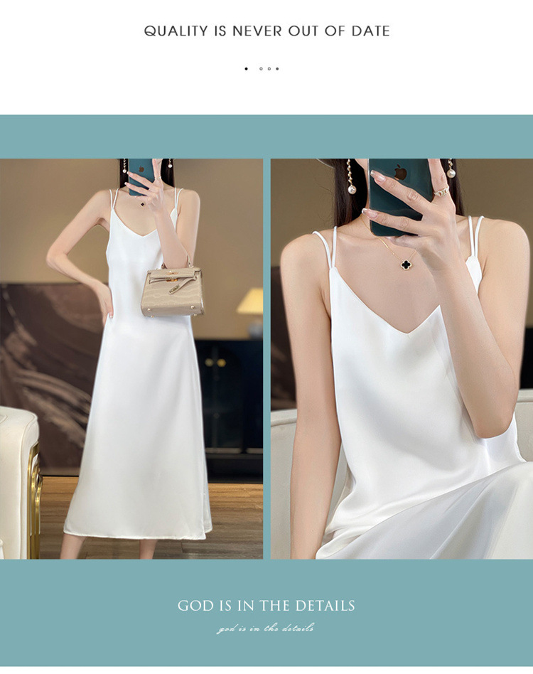 真丝桑蚕丝吊带连衣裙女夏季新款a字裙宽松大码长款内搭吊带长裙