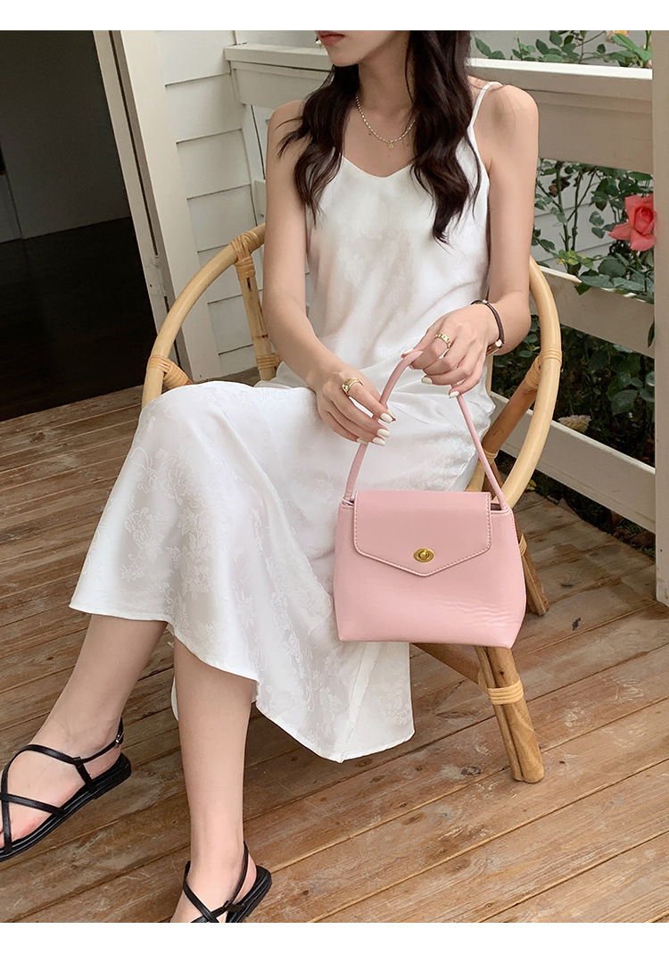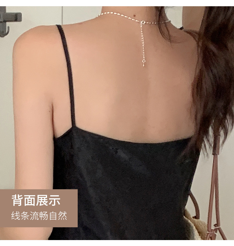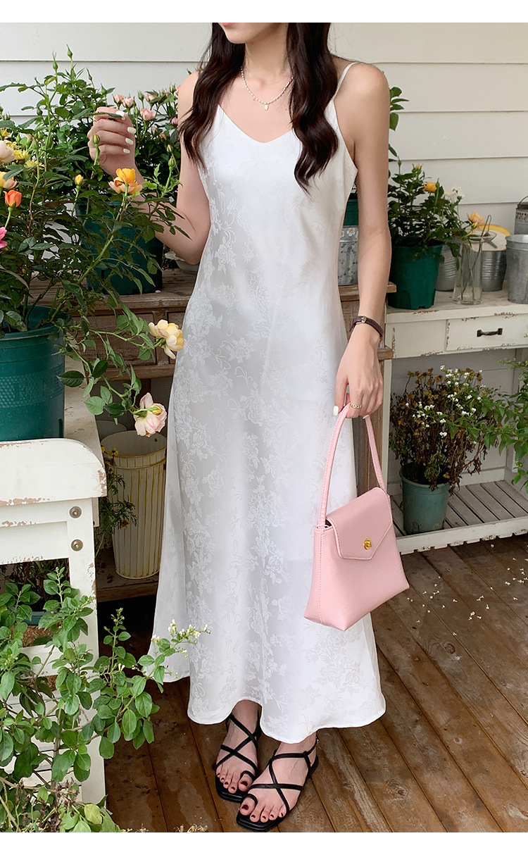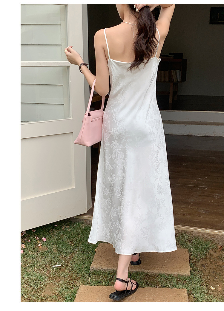 夏季长款吊带连衣裙女V领过膝内搭打底裙子提花气质收腰显瘦长裙