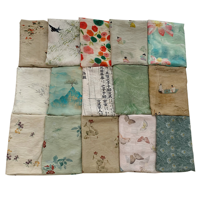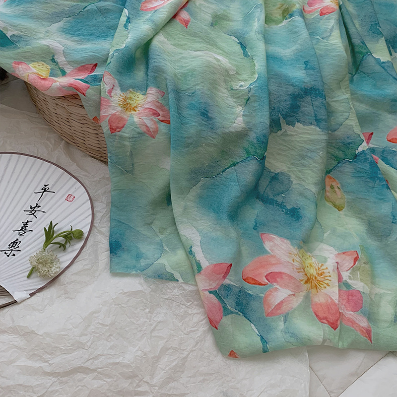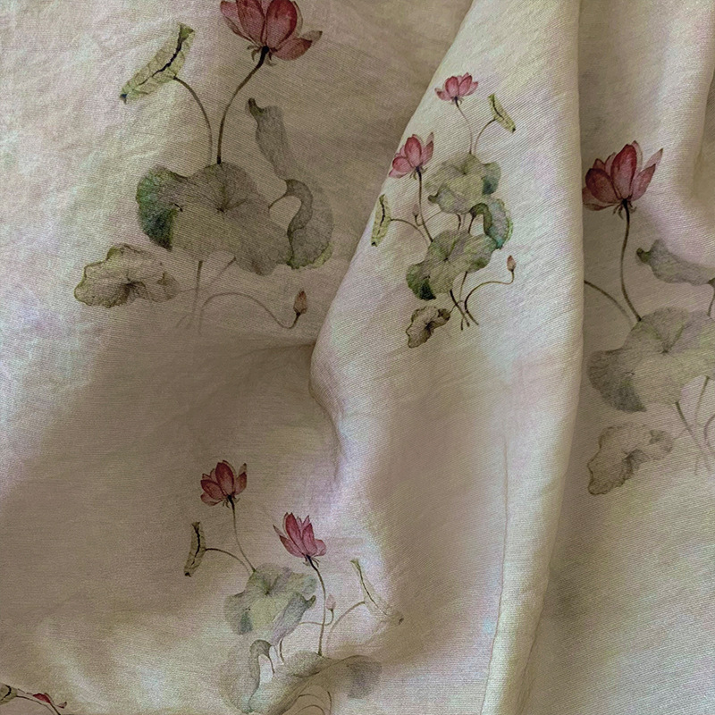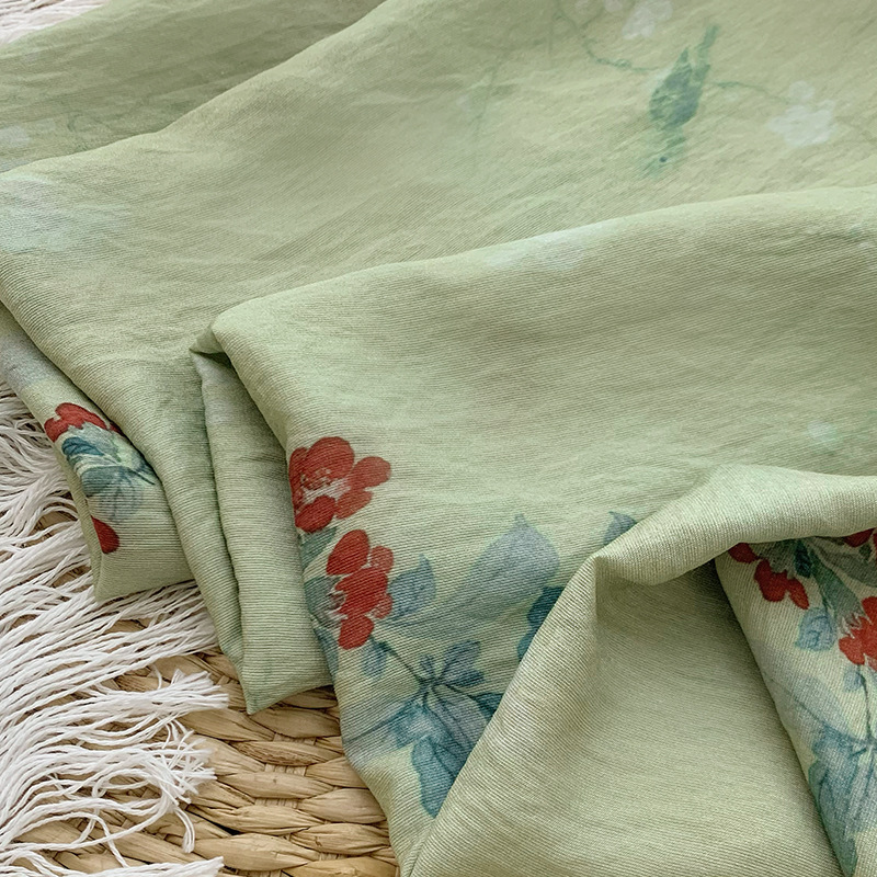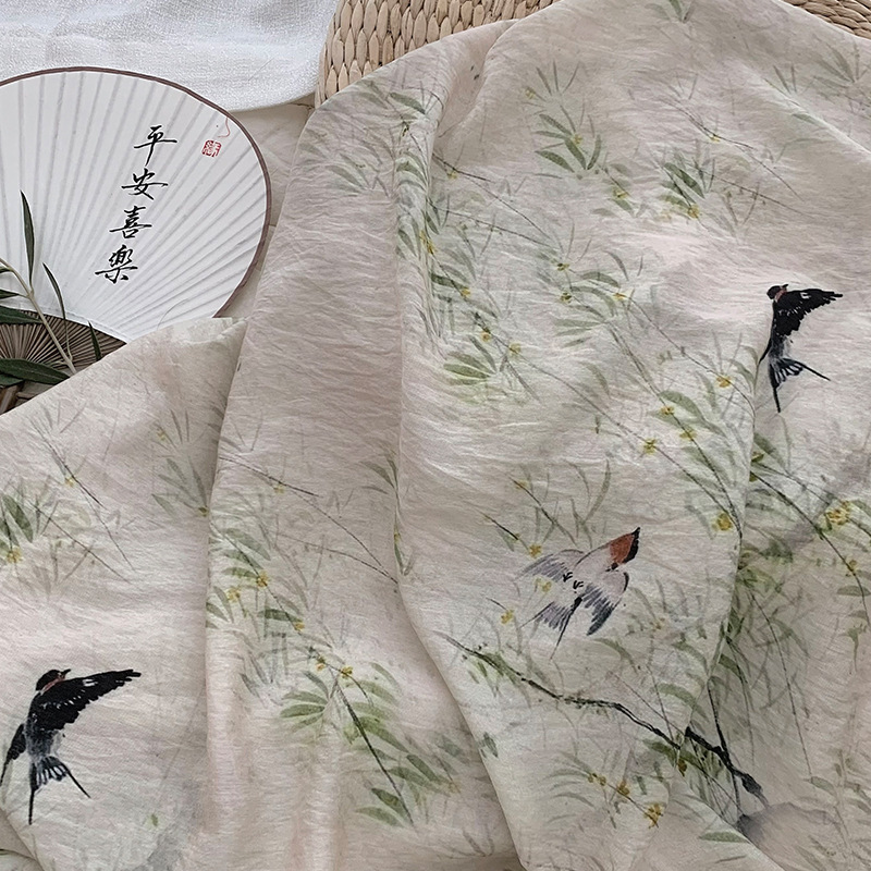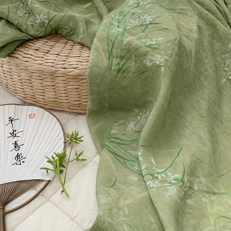 新中式印花布料苎麻面料植物染旗袍连衣裙衬衫服装面料汉服布料