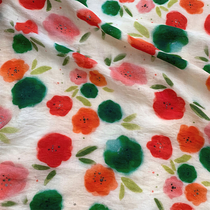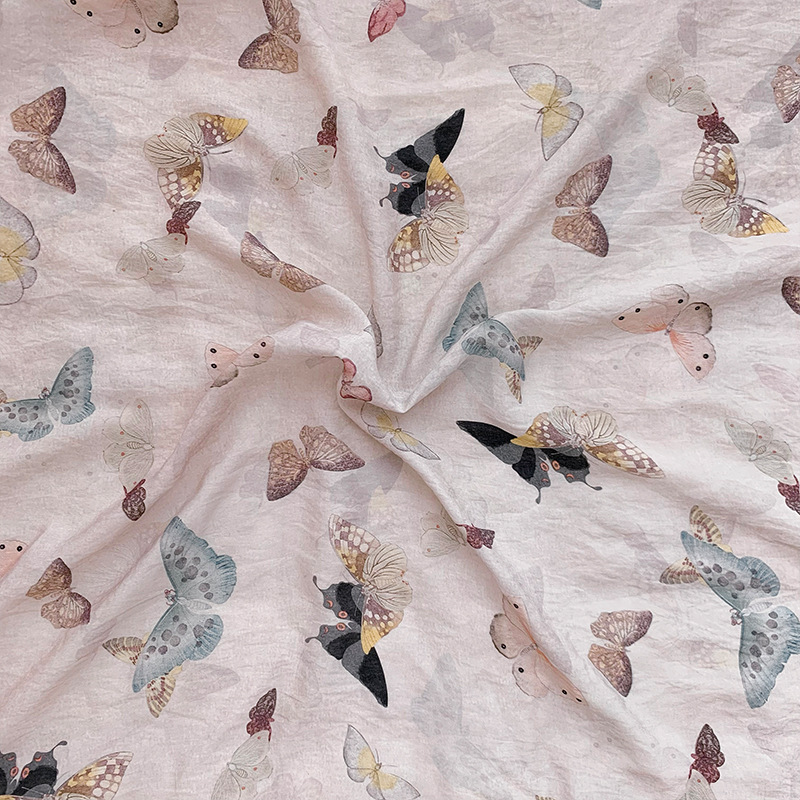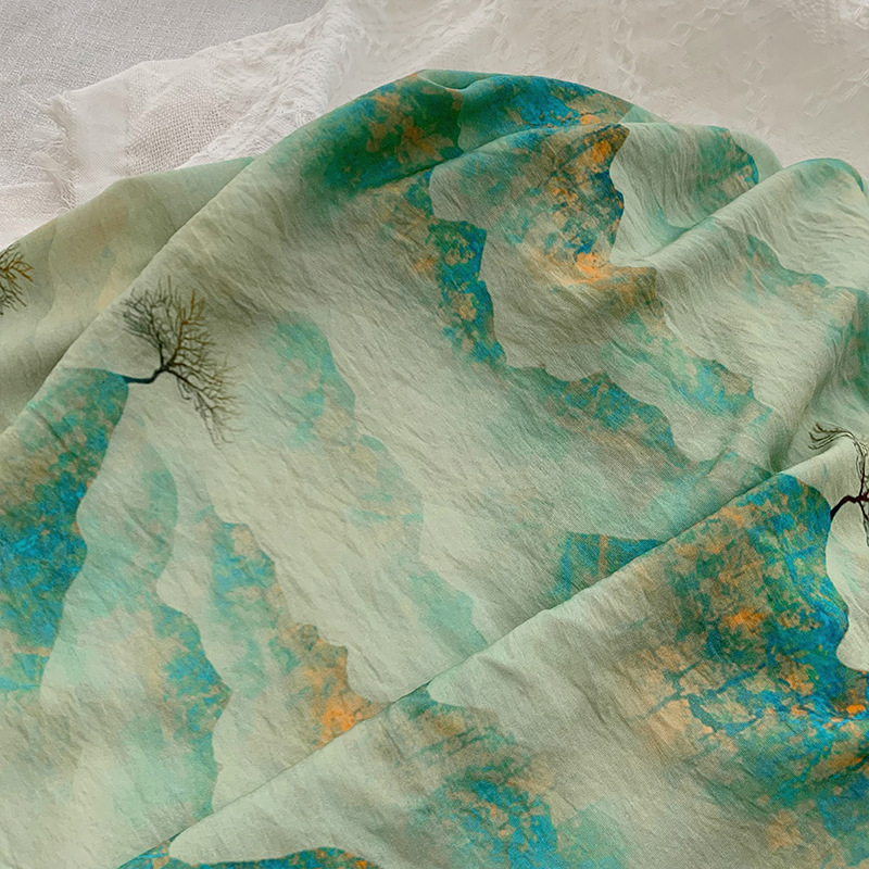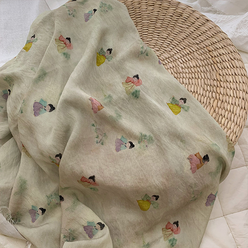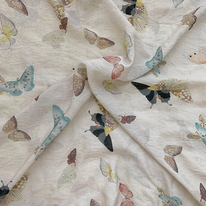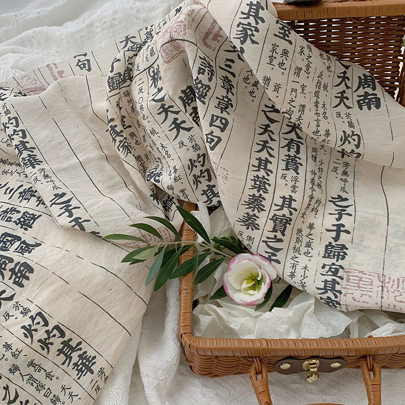 新中式印花布料苎麻面料植物染旗袍连衣裙衬衫服装面料汉服布料
