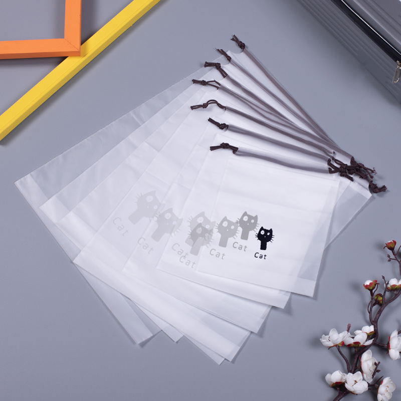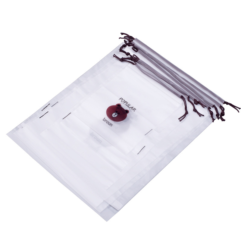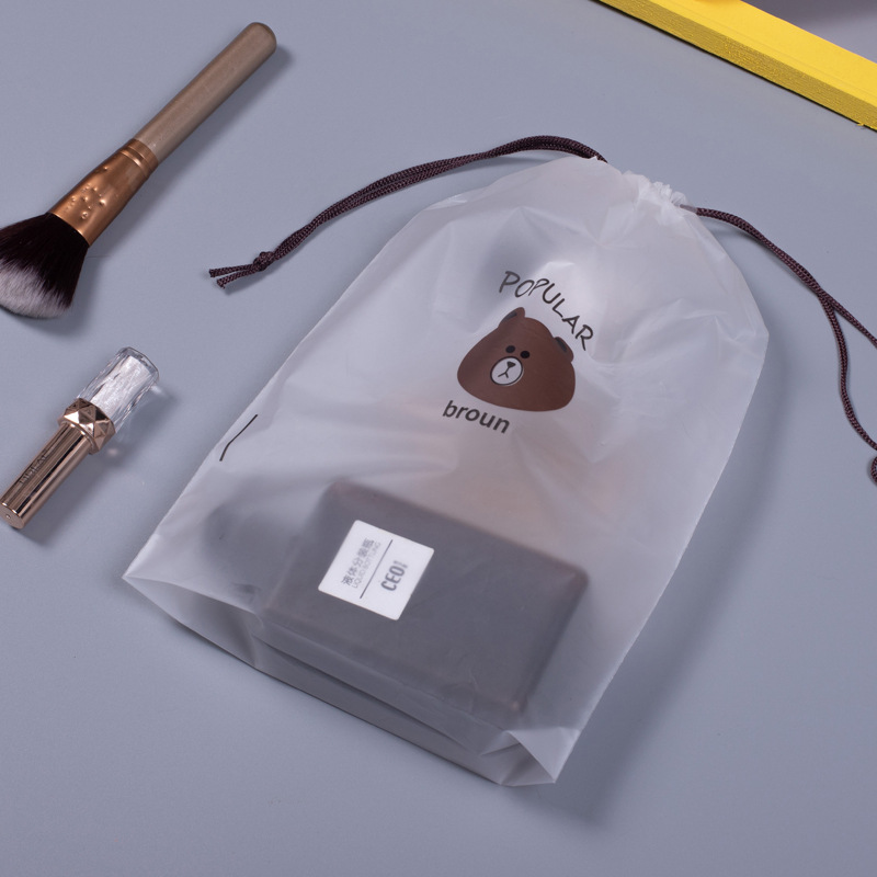现货小熊抽绳束口袋磨砂半透明旅行袜子化妆品洗脸巾收纳袋抽绳袋