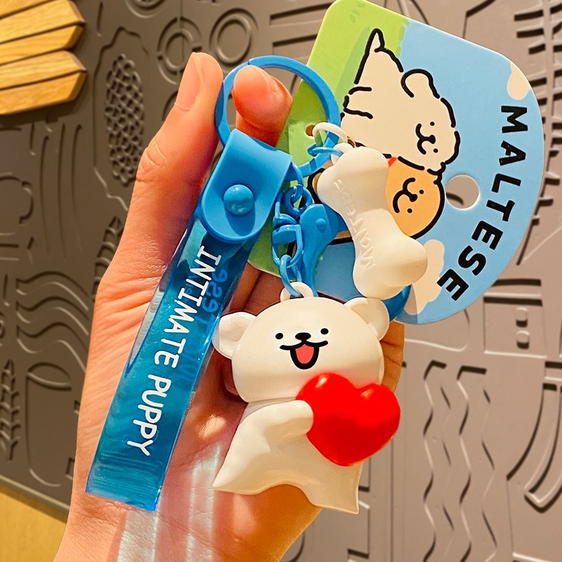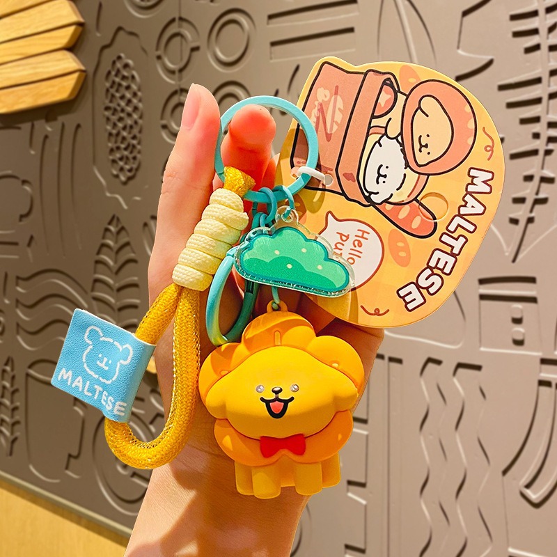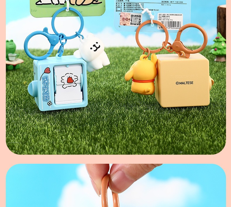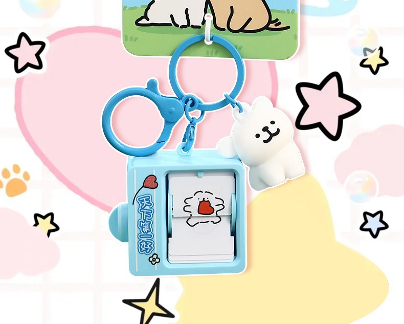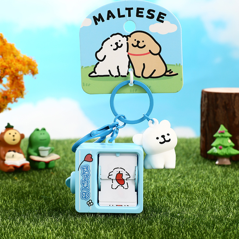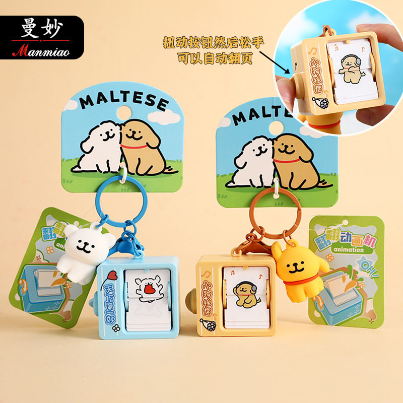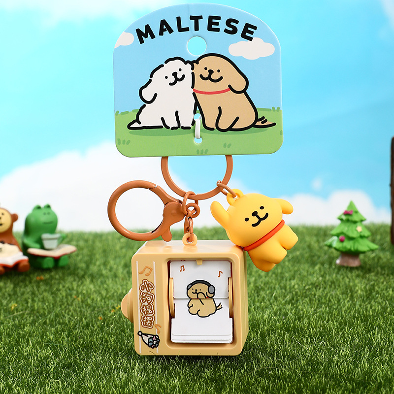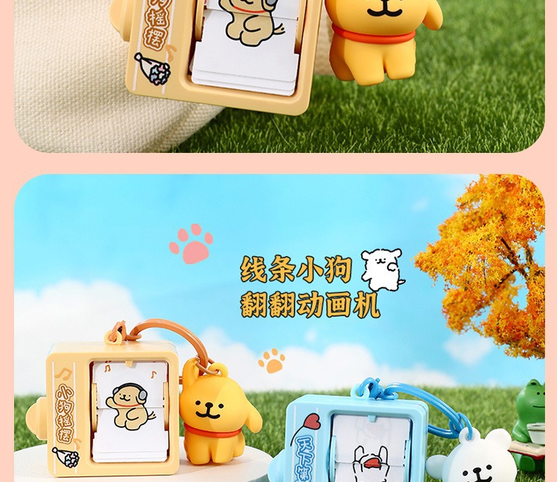 正版卡通线条小狗翻翻动画机钥匙扣情侣包包挂件创意小礼品批发