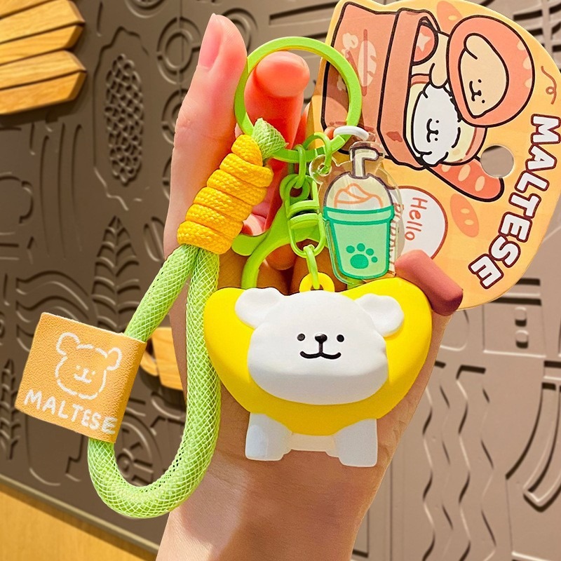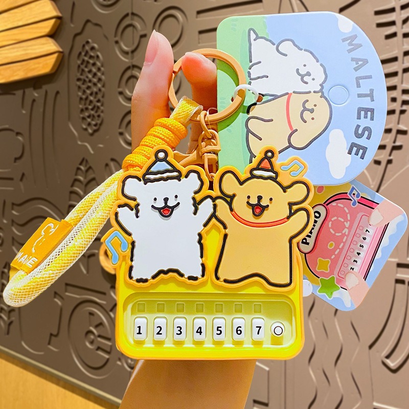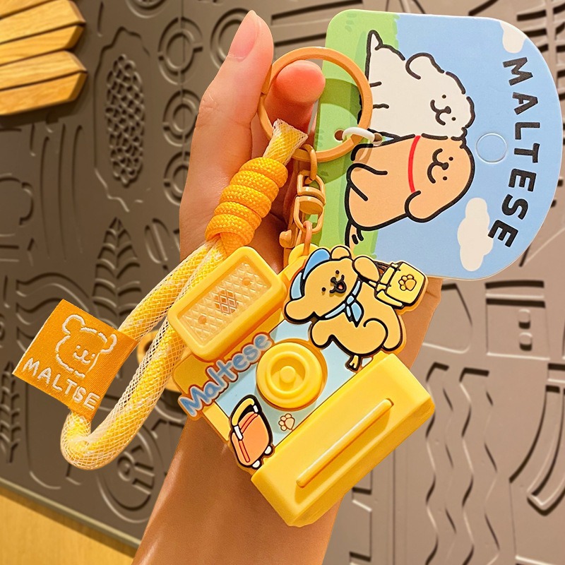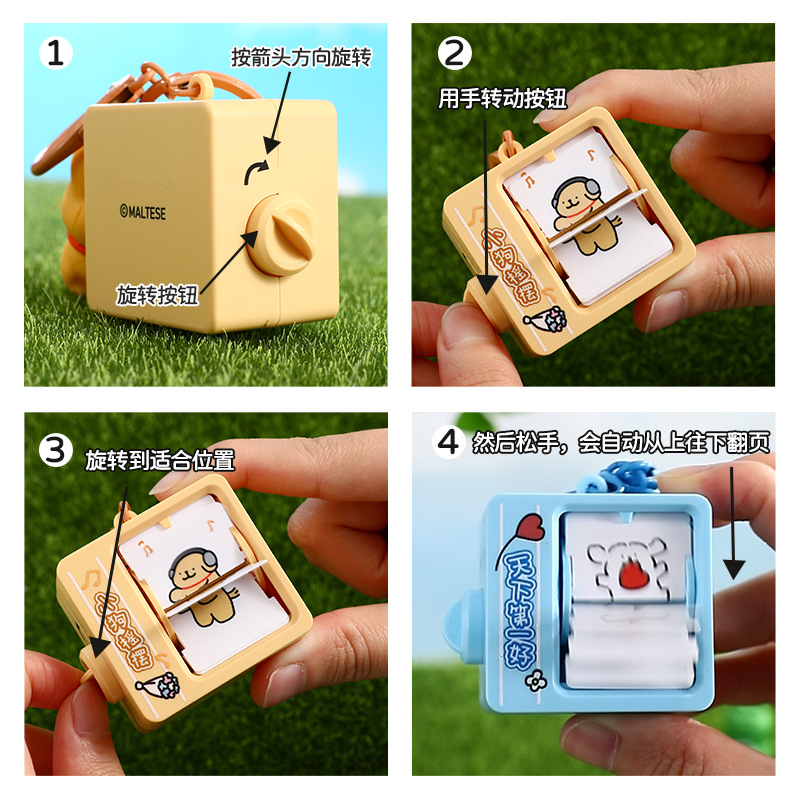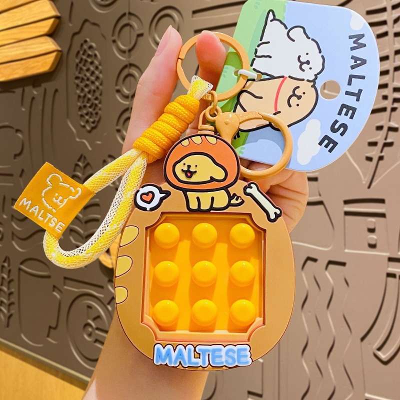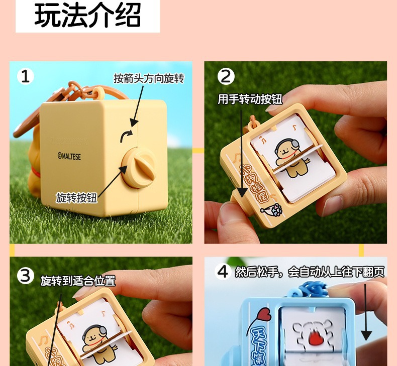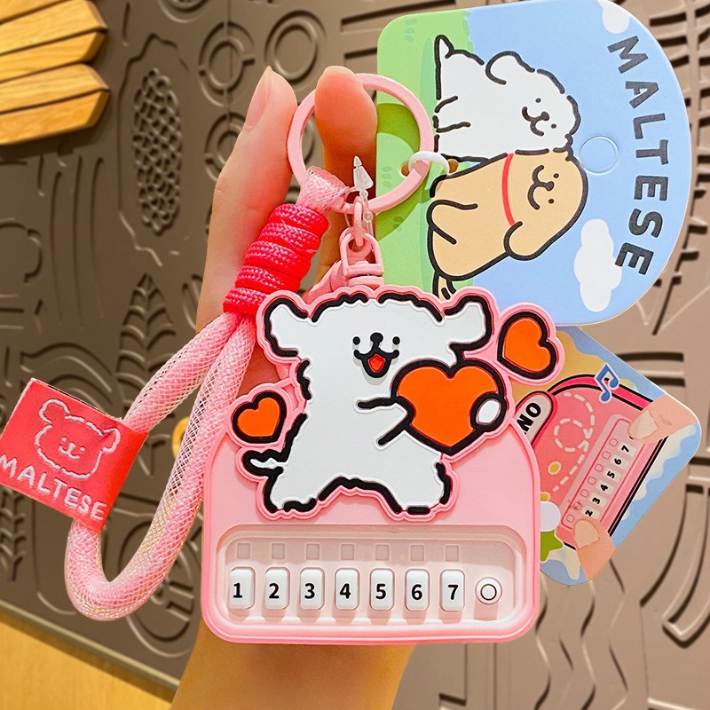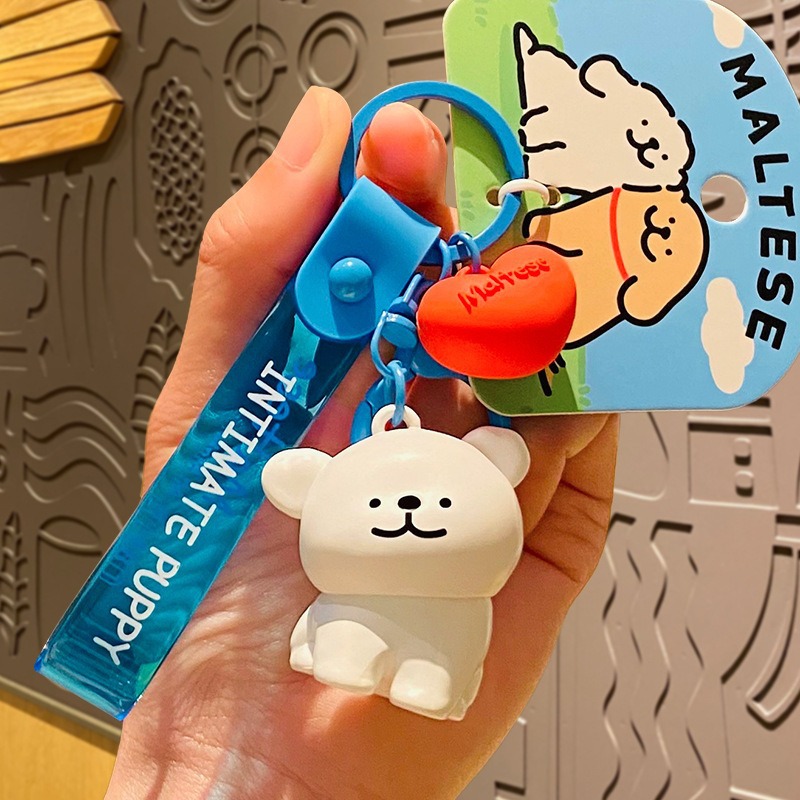 正版卡通线条小狗翻翻动画机钥匙扣情侣包包挂件创意小礼品批发