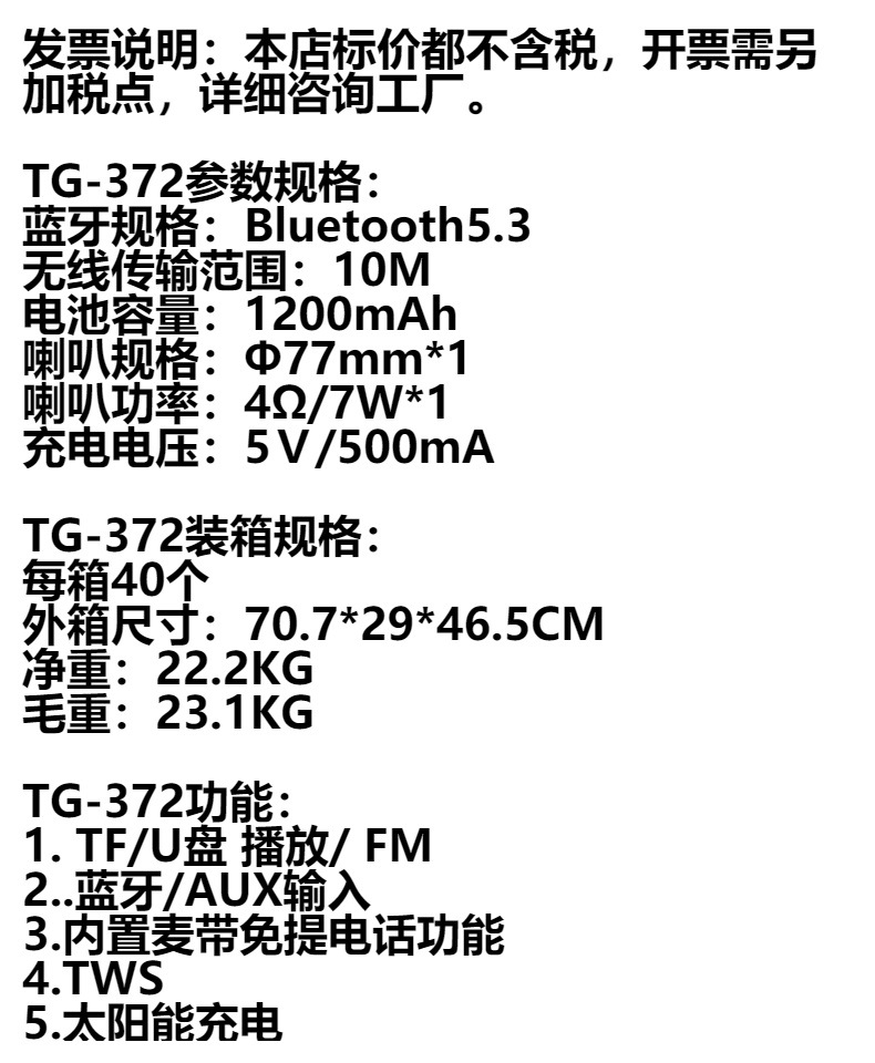 跨境TG372太阳能充电无线蓝牙音箱 户外手提插卡TWS对联创意礼品