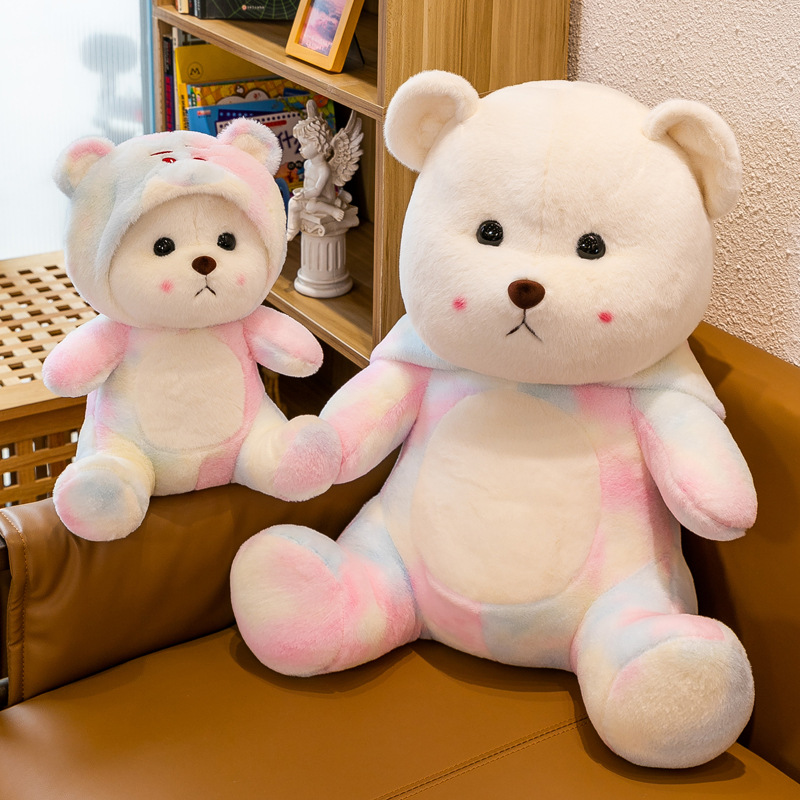 扎染炫彩小熊公仔儿童玩偶生日礼物女生陪睡抱枕布娃娃剪刀机兑换