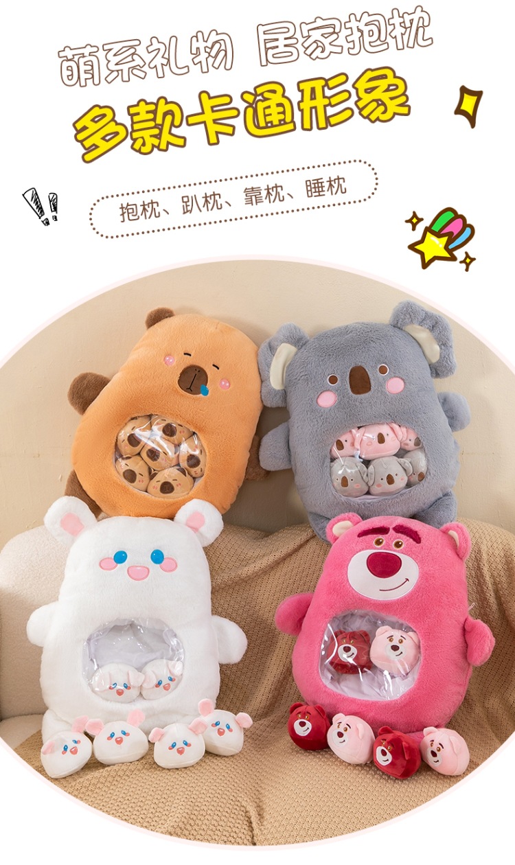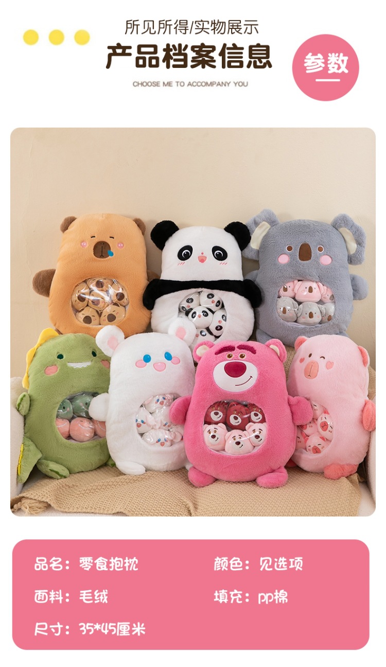 毛绒玩具跨境玩偶批发一袋零食公仔抱枕袋装布娃娃兔子考拉恐龙