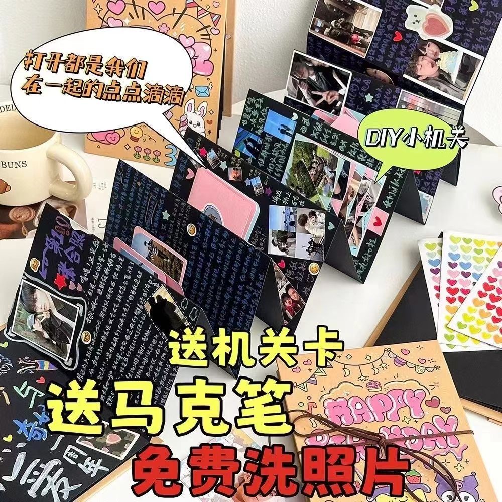 大爆款同款DIY风琴折叠相册本手工粘贴情侣闺蜜生日礼物纪念礼品