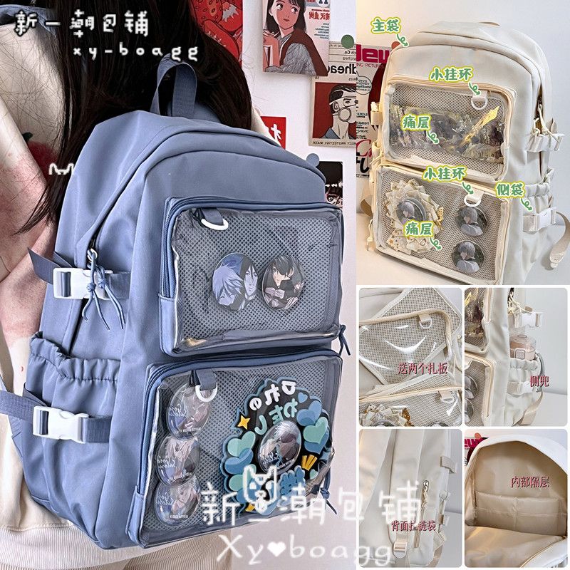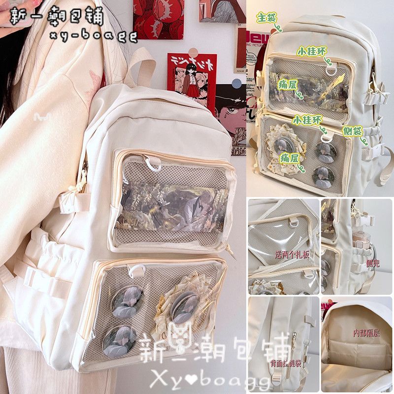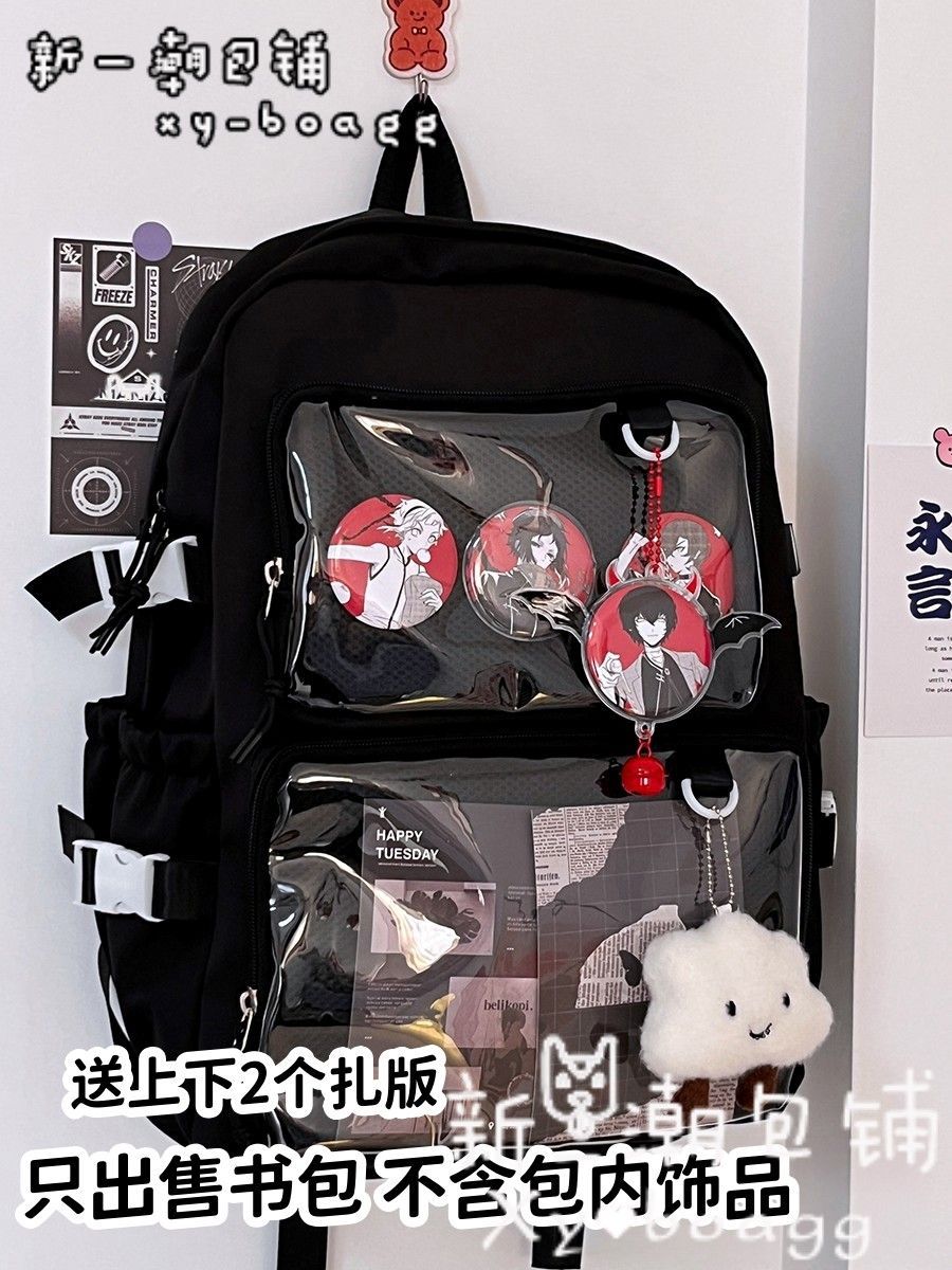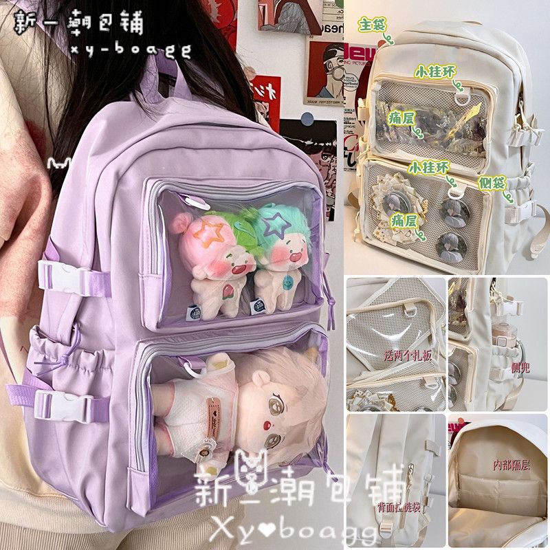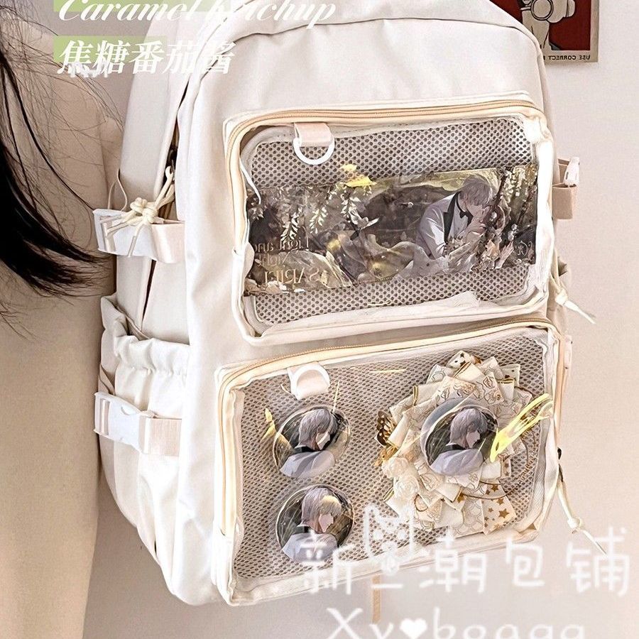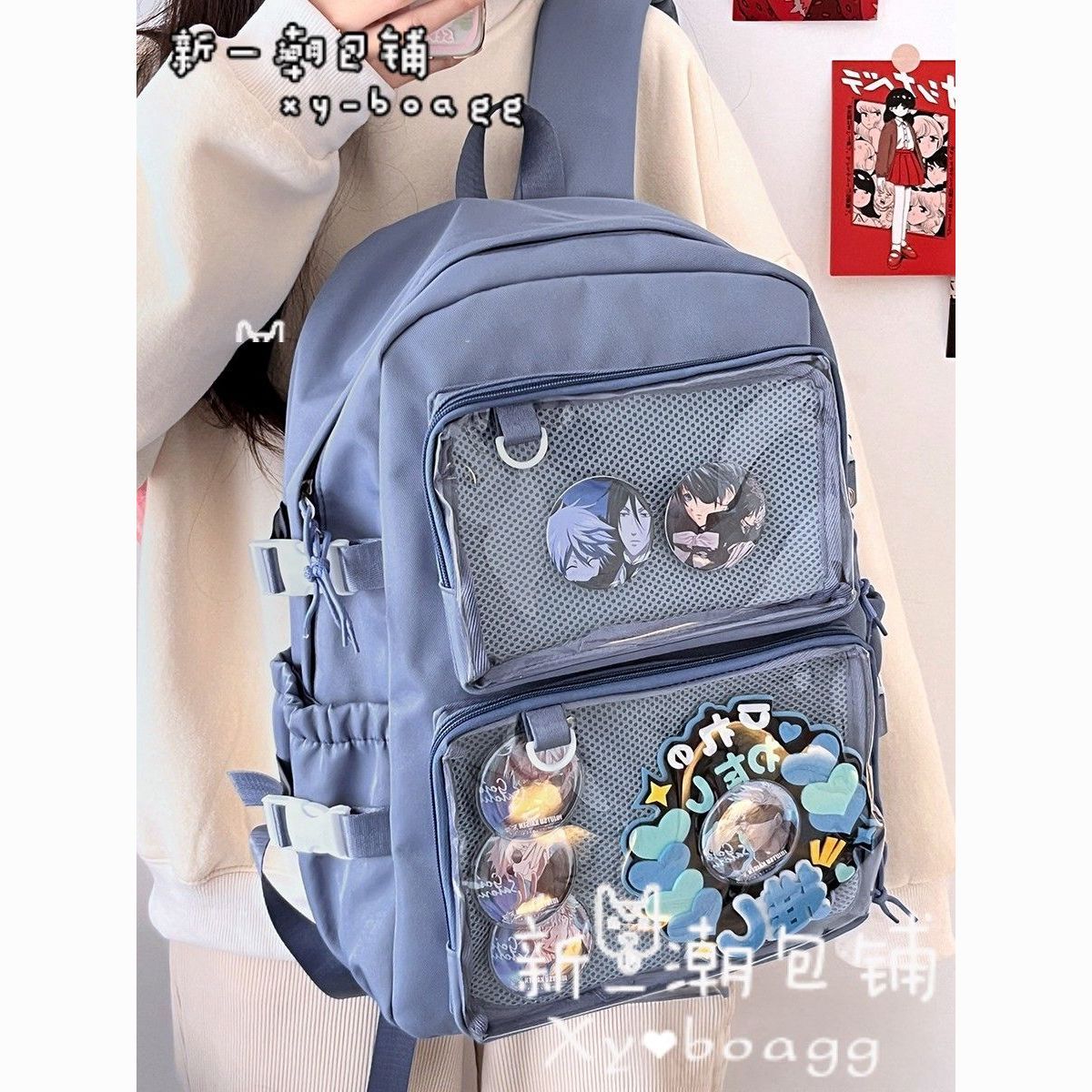 透明大容量痛包双肩学院吧唧学生书包双肩包日常校园背包简约小众