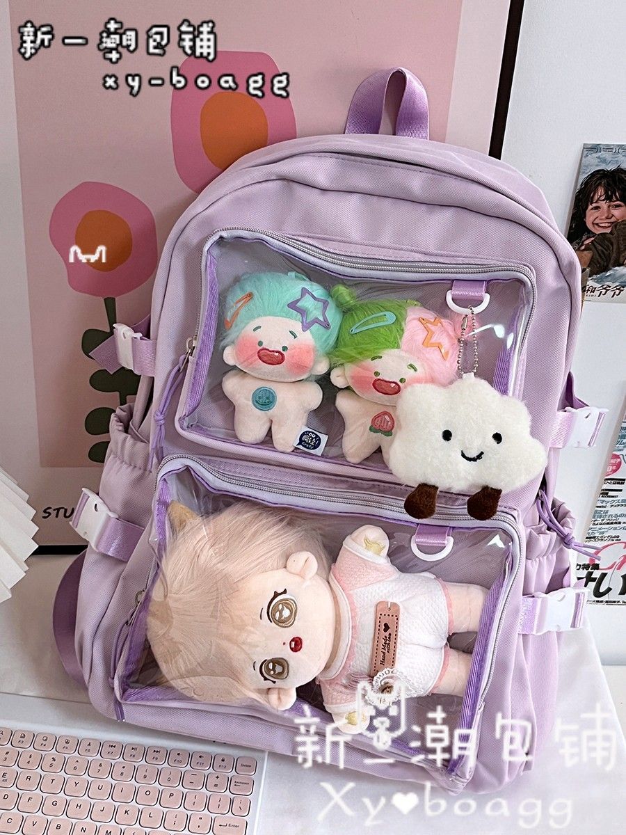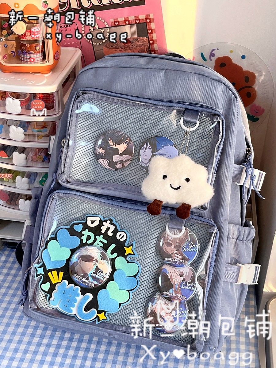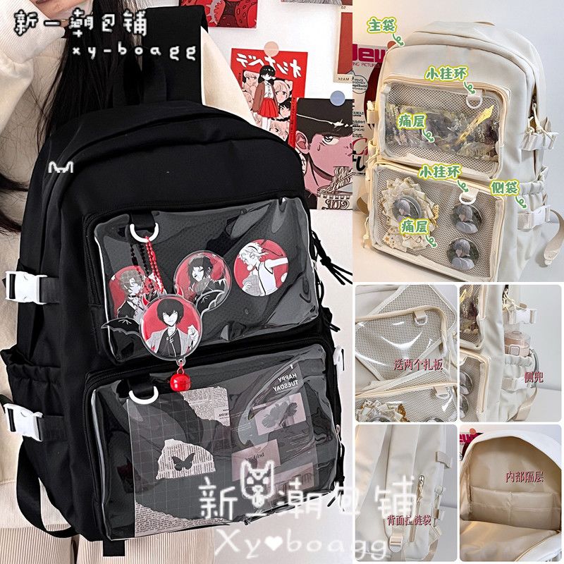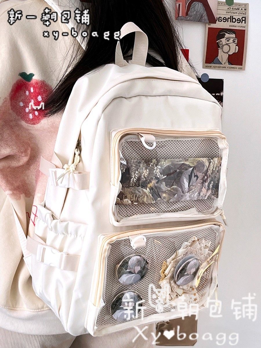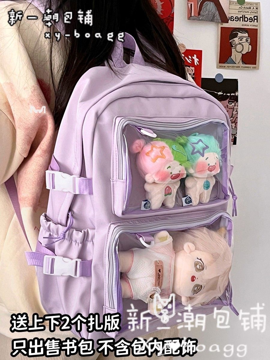透明大容量痛包双肩学院吧唧学生书包双肩包日常校园背包简约小众