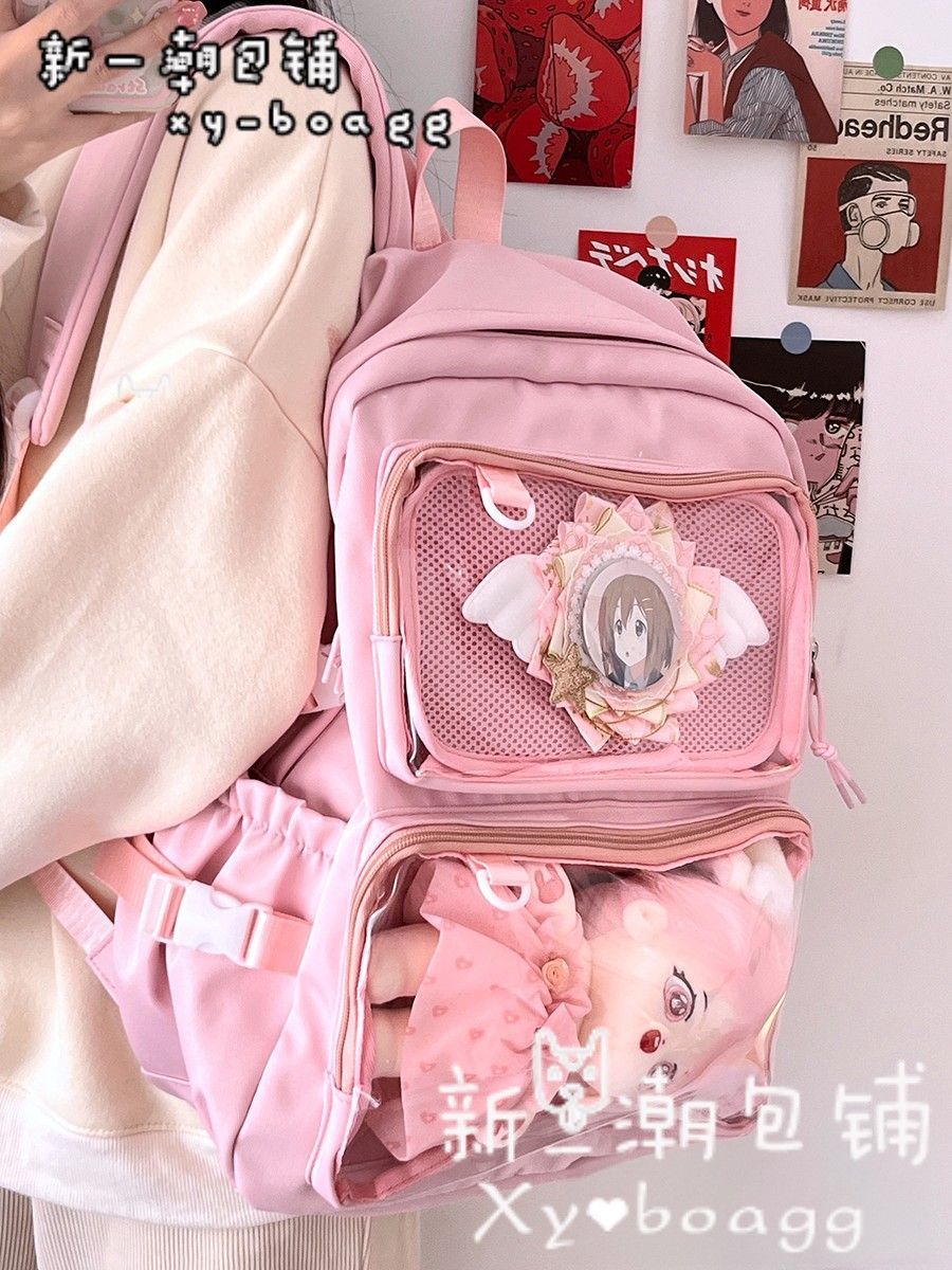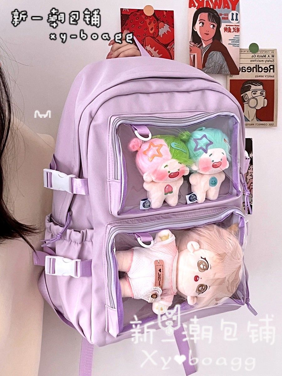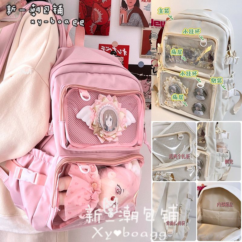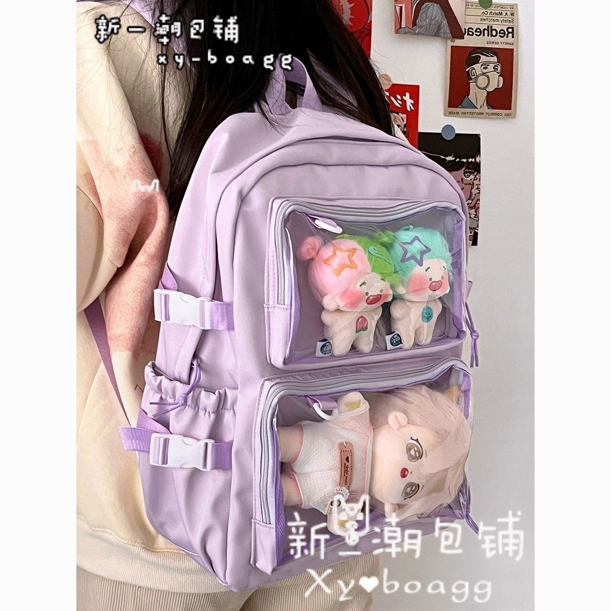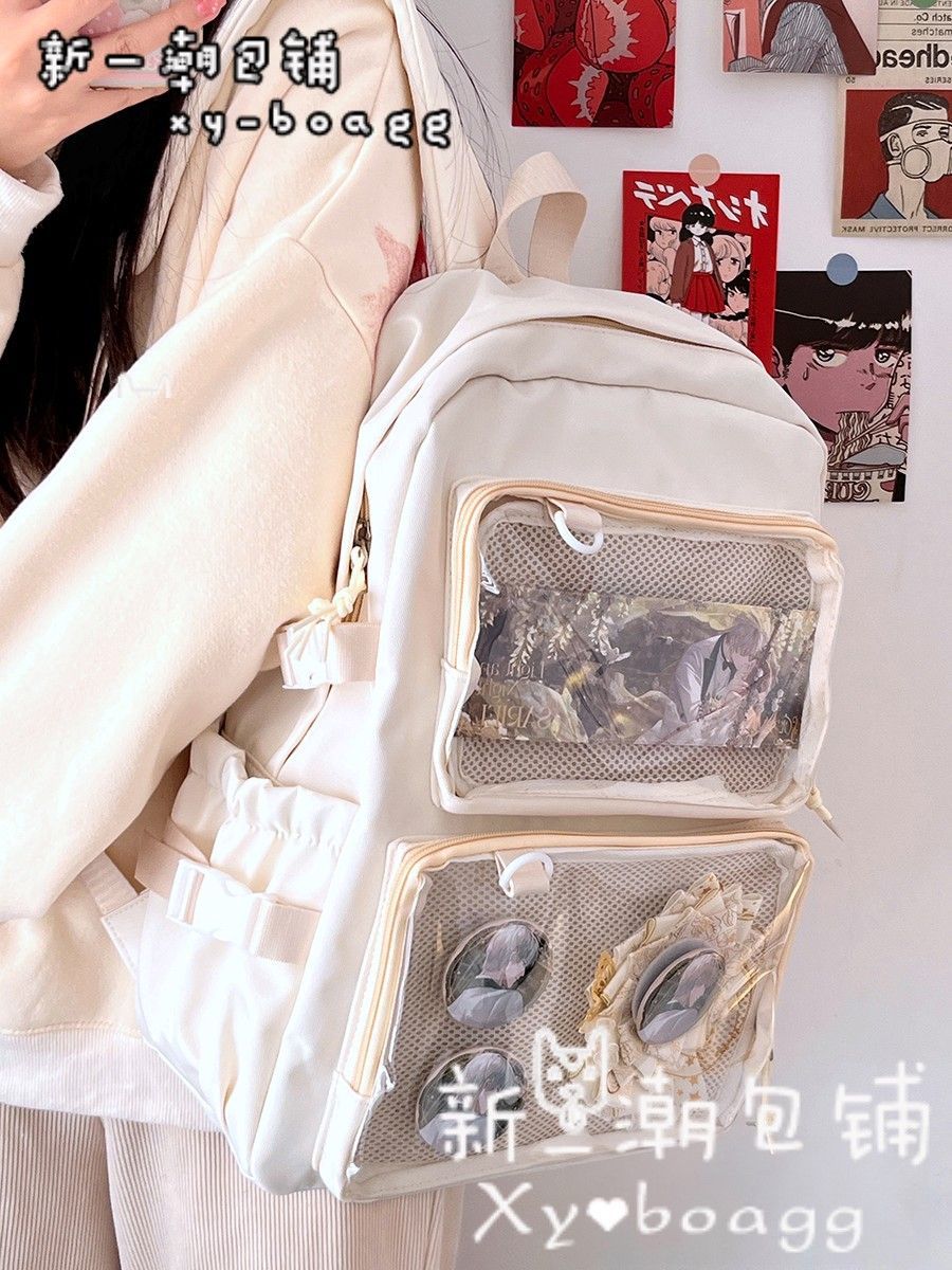 透明大容量痛包双肩学院吧唧学生书包双肩包日常校园背包简约小众