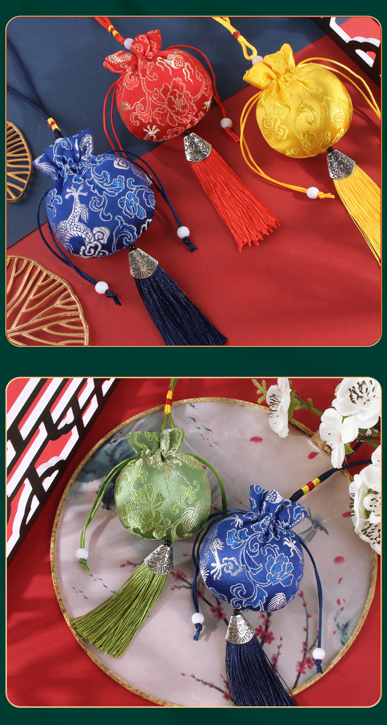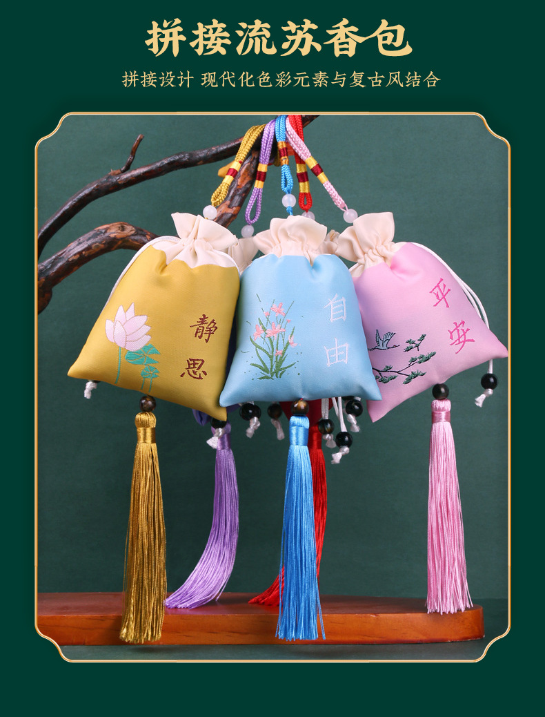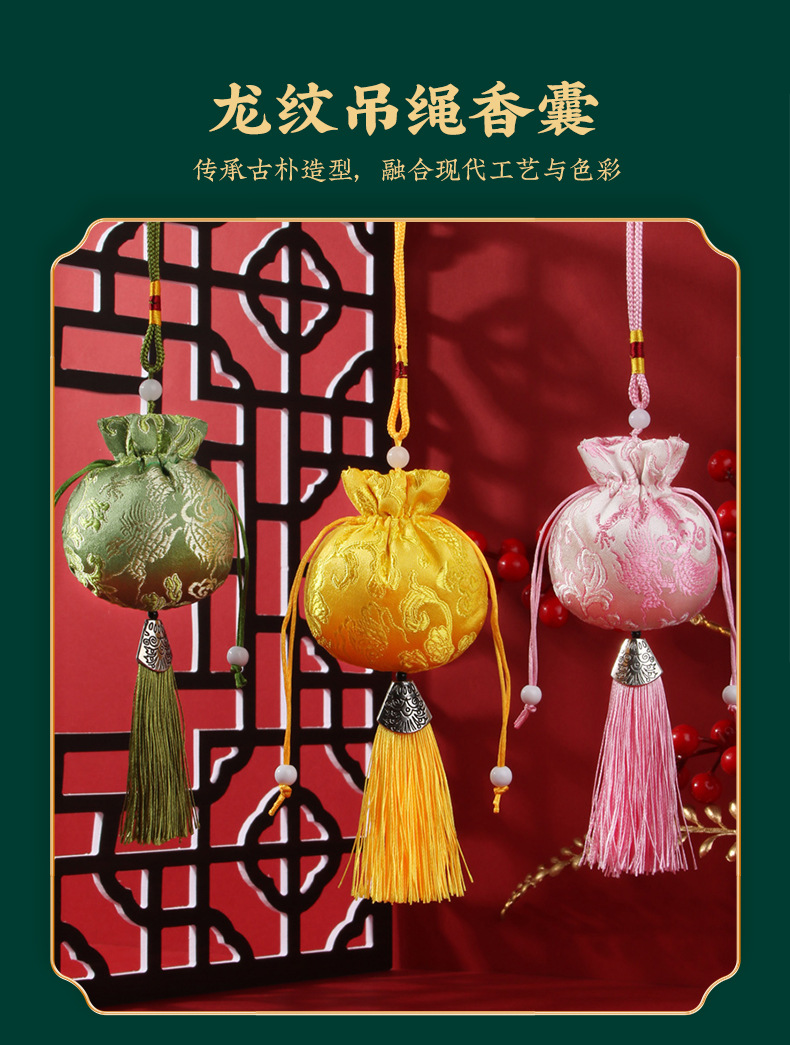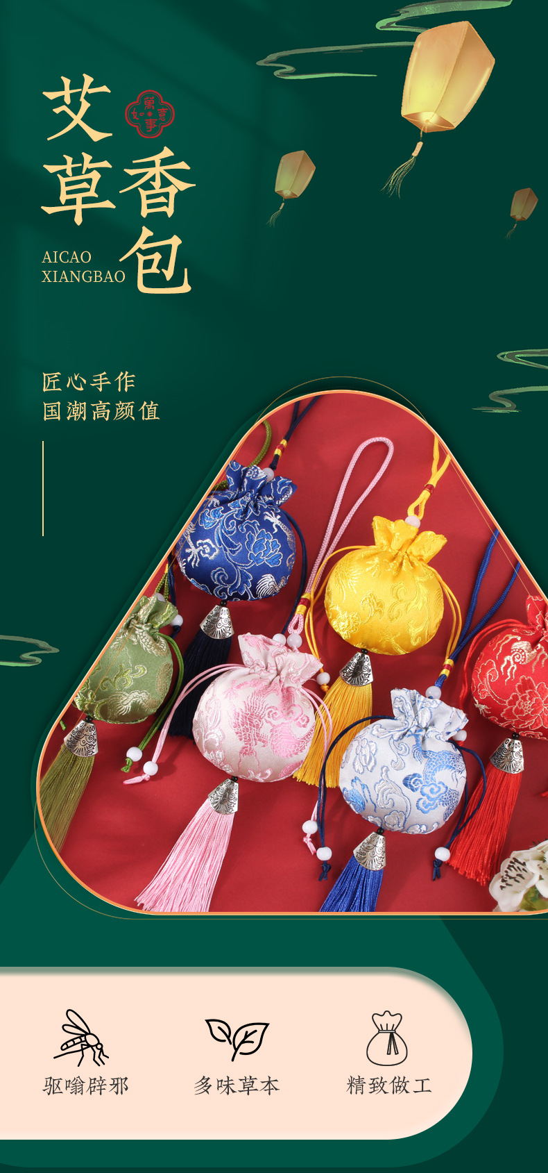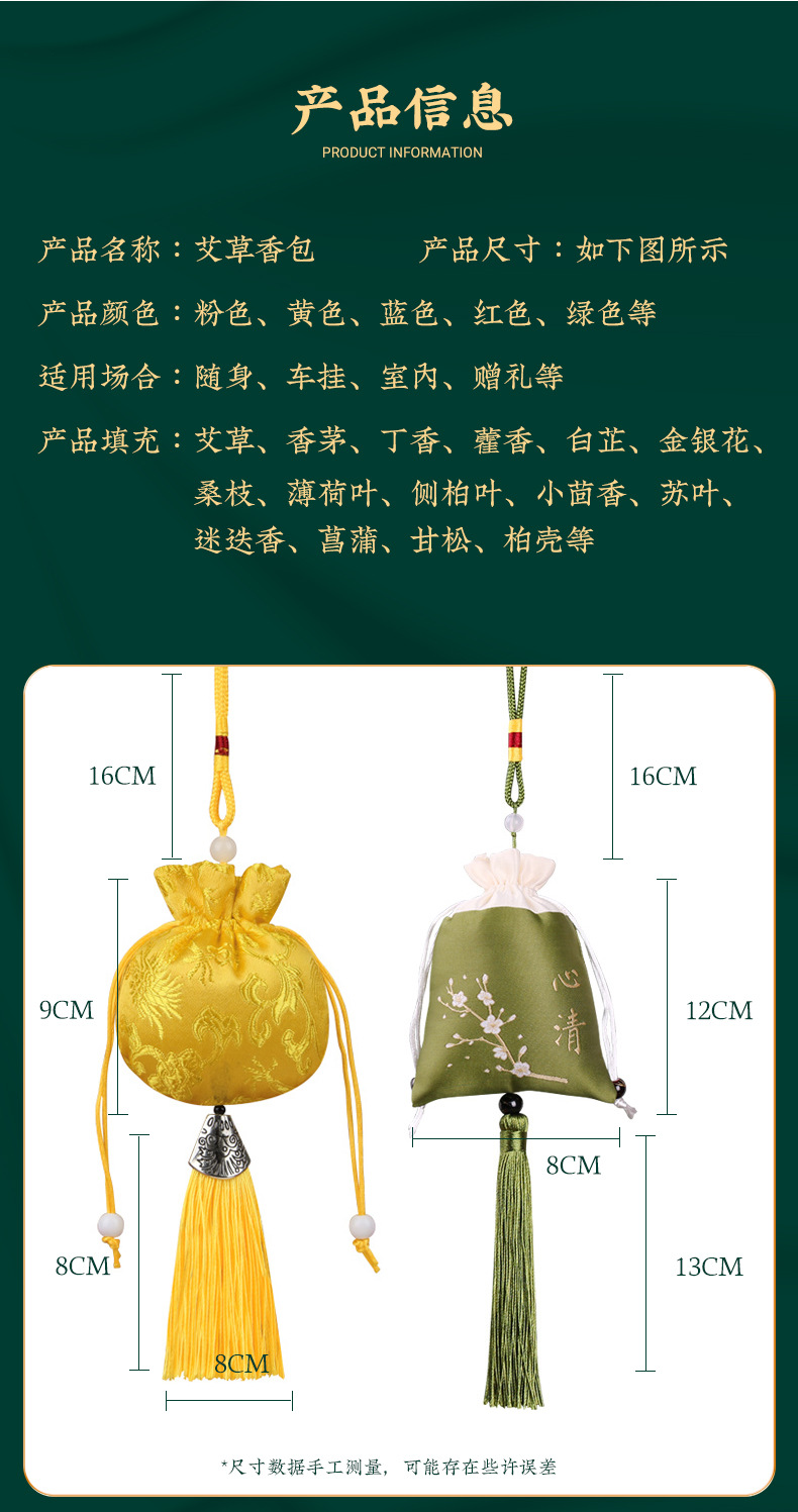 端午节艾草香囊龙纹刺绣流苏香薰伴手礼荷包香袋车载挂件艾叶香包
