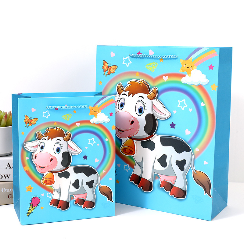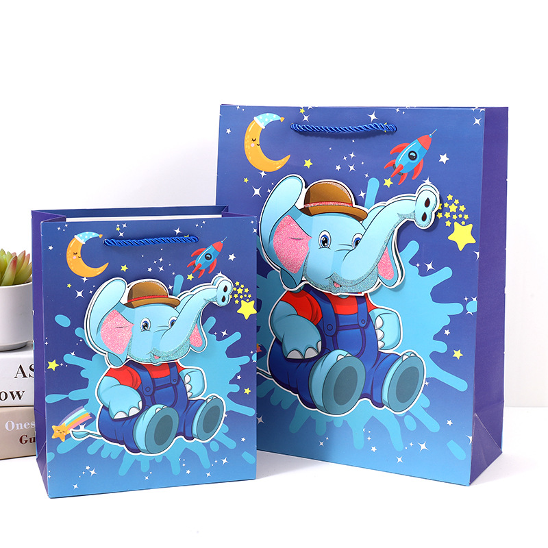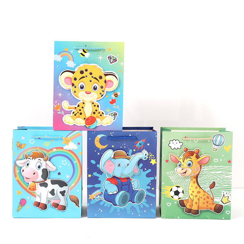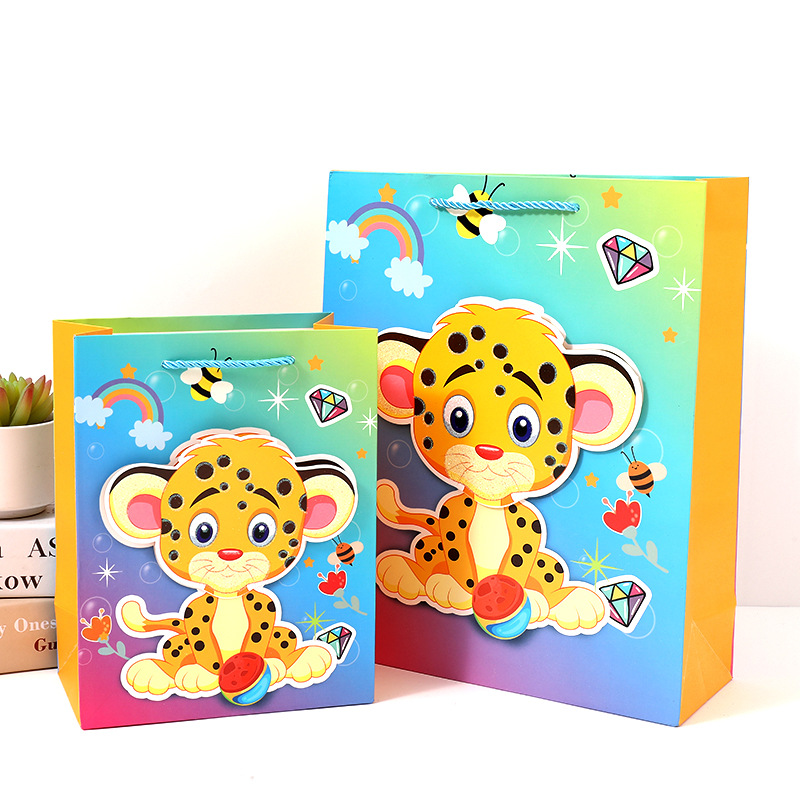 义乌工厂纸袋现货批发 卡通动物礼品袋 服装礼物包装白卡手提袋
