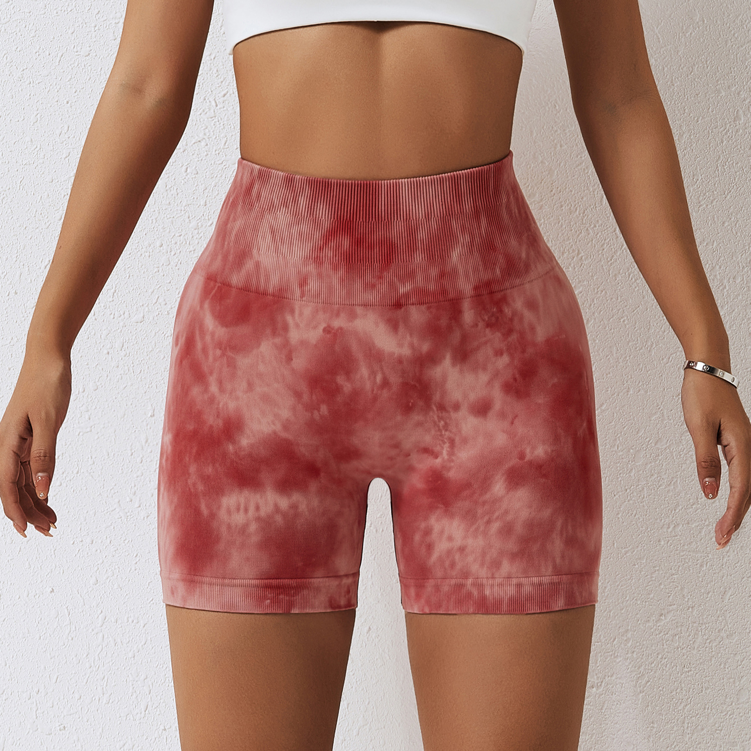 春季欧美扎染无缝瑜伽短裤女运动健身短裤高腰提臀紧身瑜伽裤6924