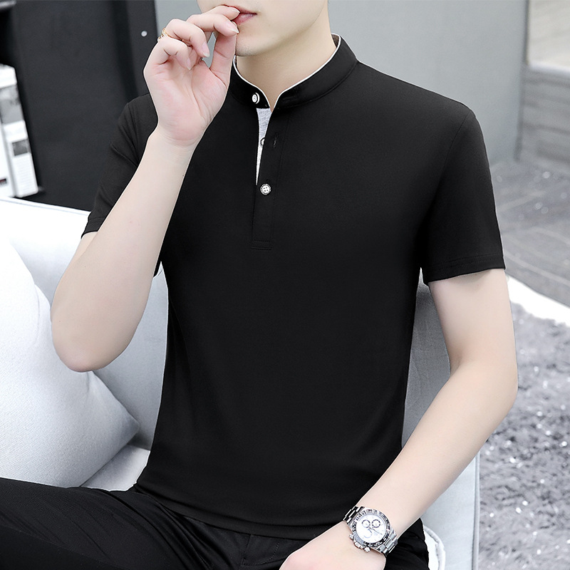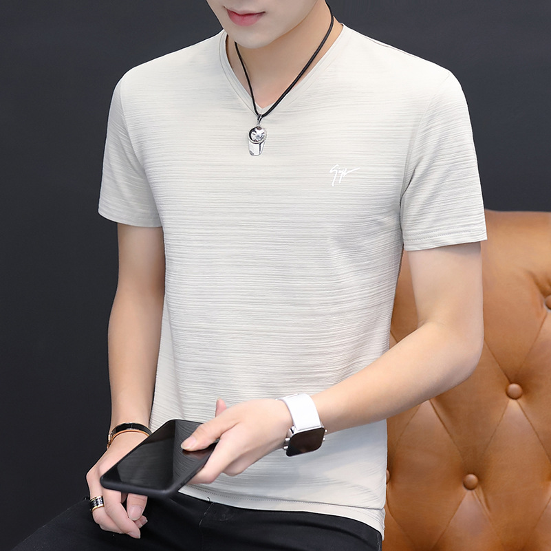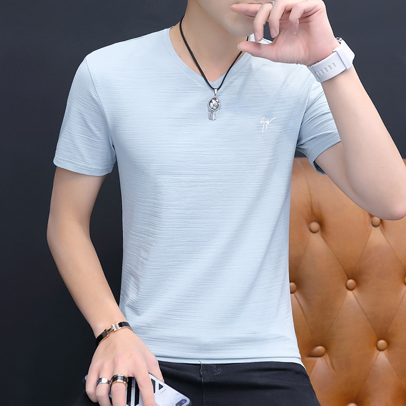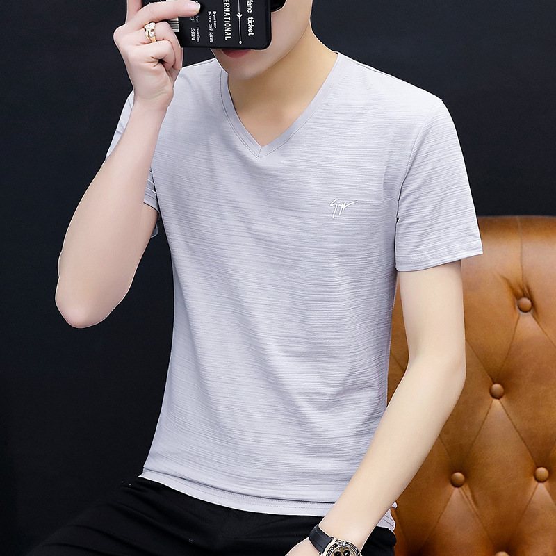 新款棉短袖T恤男装纯色V领休闲半袖男士T恤潮流商务男服装T恤