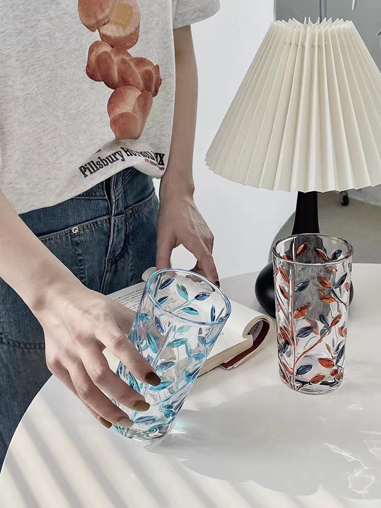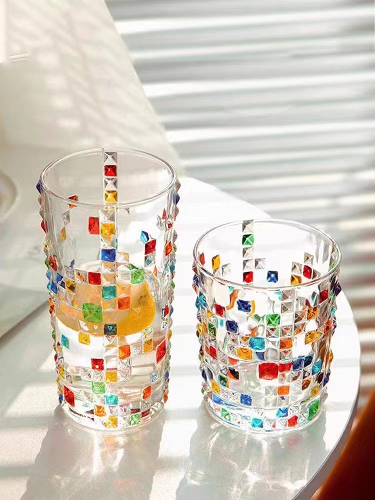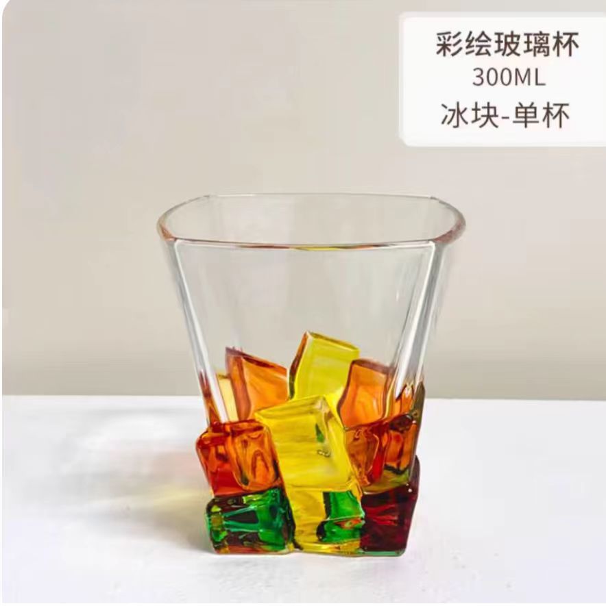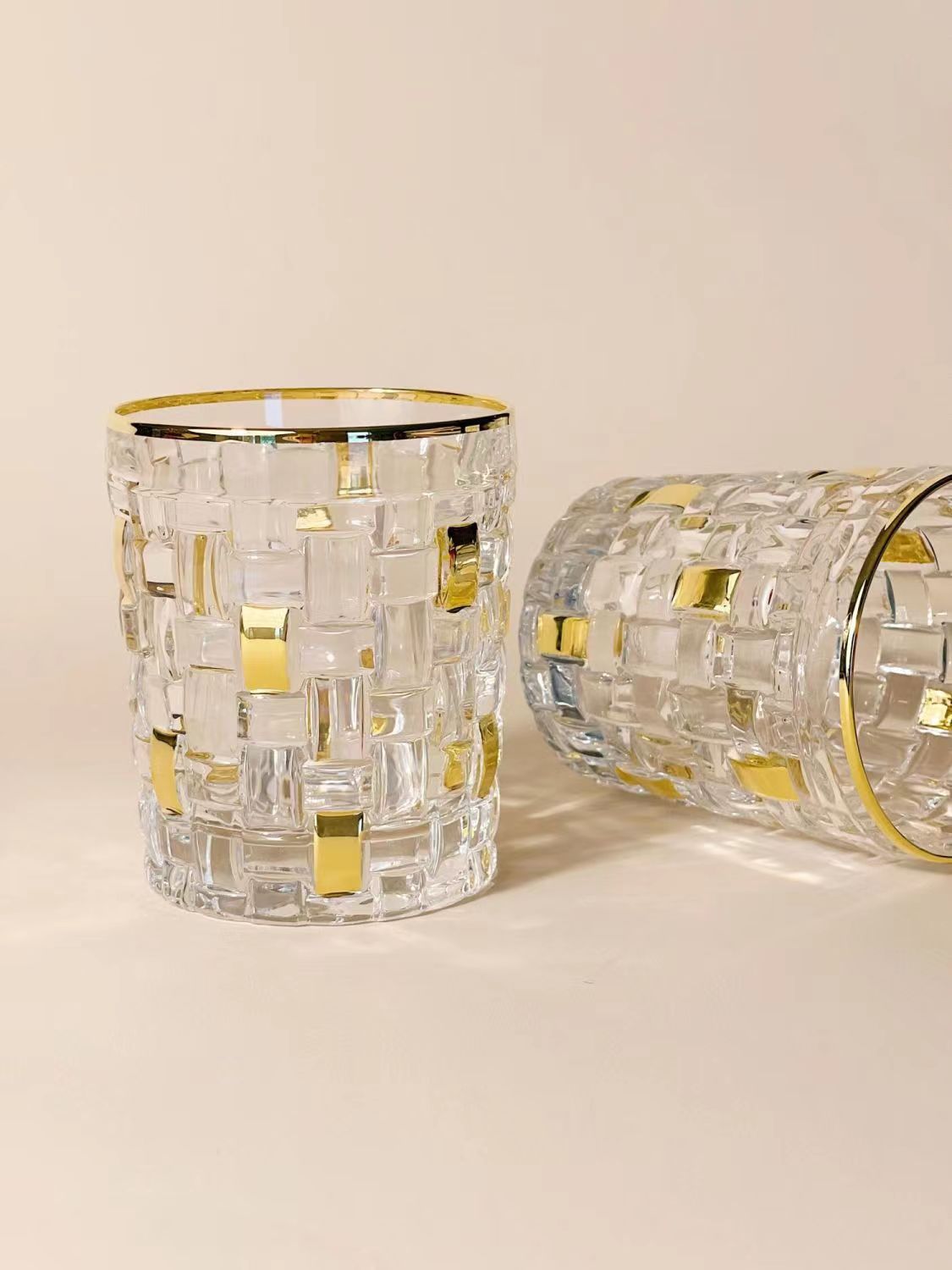 威士忌酒杯水晶玻璃节日礼物设计师同款手工彩绘线条编织水杯高级